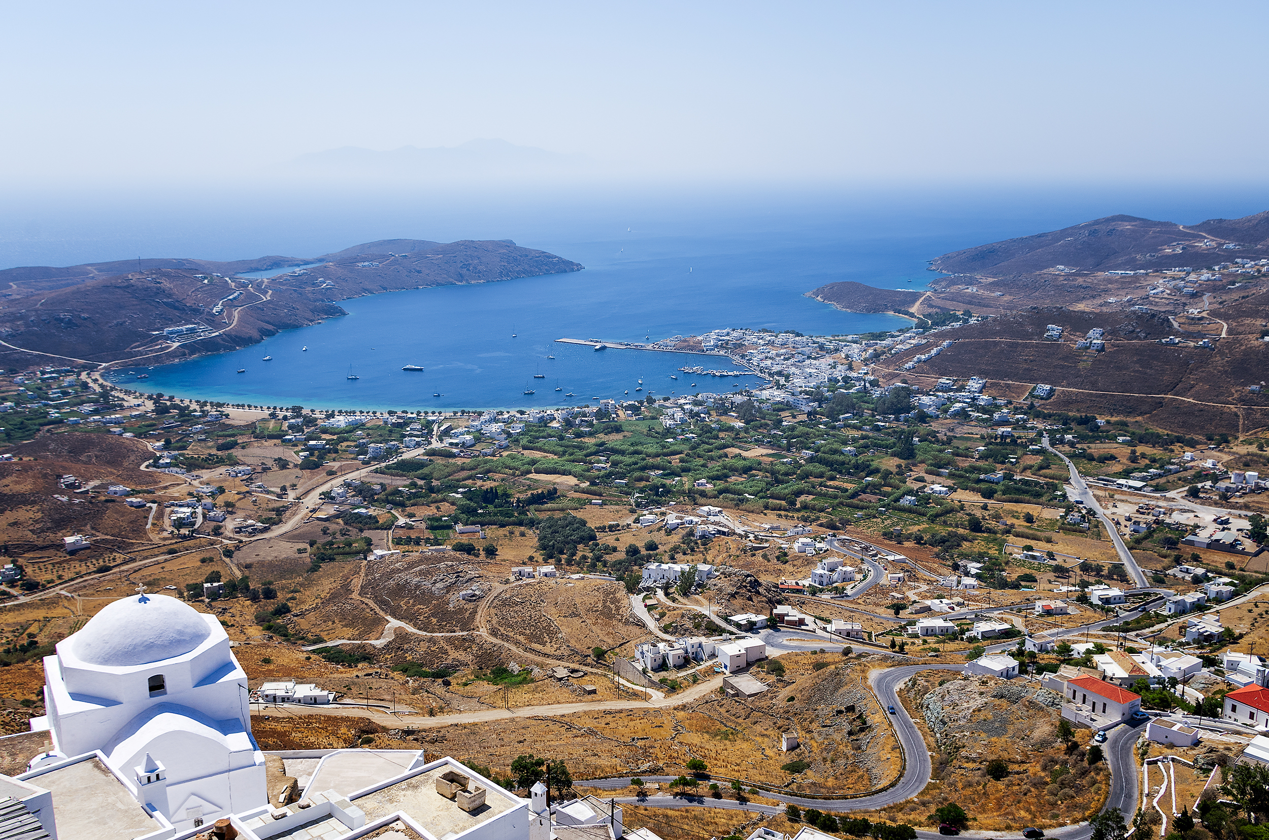 Serifos is a small traditional island with white villages golden beaches and beautiful landscapes .The coastline stretches over 80km with at least 12km of golden sandy beaches and secluded coves. Chora the capital is perched high up on top of a hill that overlooks the harbour of Livadi, the panoramic views from here are wonderful, especially from the fortress-like monastery of Taxiárches. Trek or cycle the terrific trails on the island and admire the charming villages or scuba dive in the old mines or wrecks.