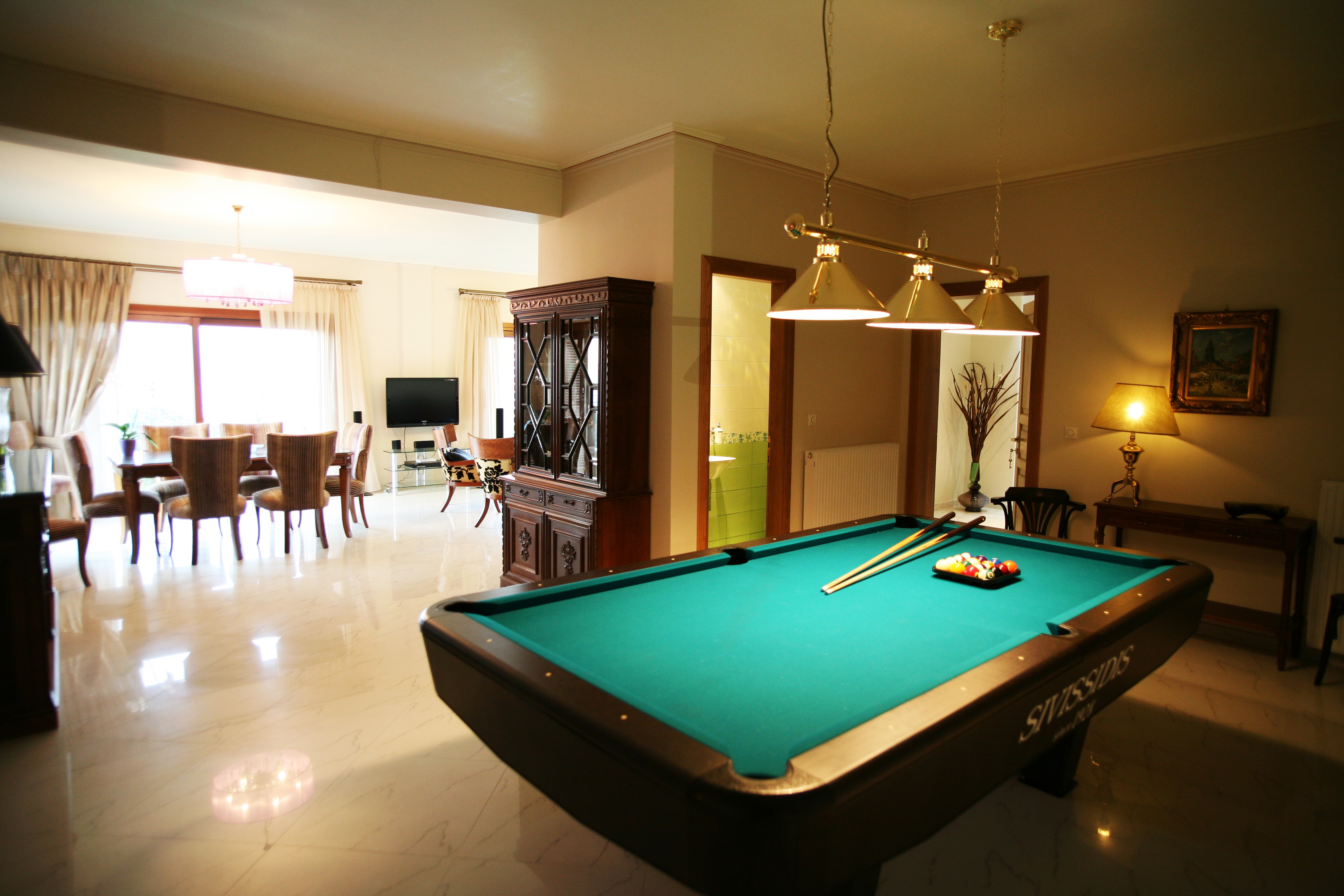 Outside the villa offers a private floodlit tennis court, remote controlled security gates (perfect for children), stunning pool area with heatable Jacuzzi and separate childrens pool. The hammam area offers a unique luxury. The Gym area includes treadmill, exercise bike, total body workout machine weights and ma), and massage shower.