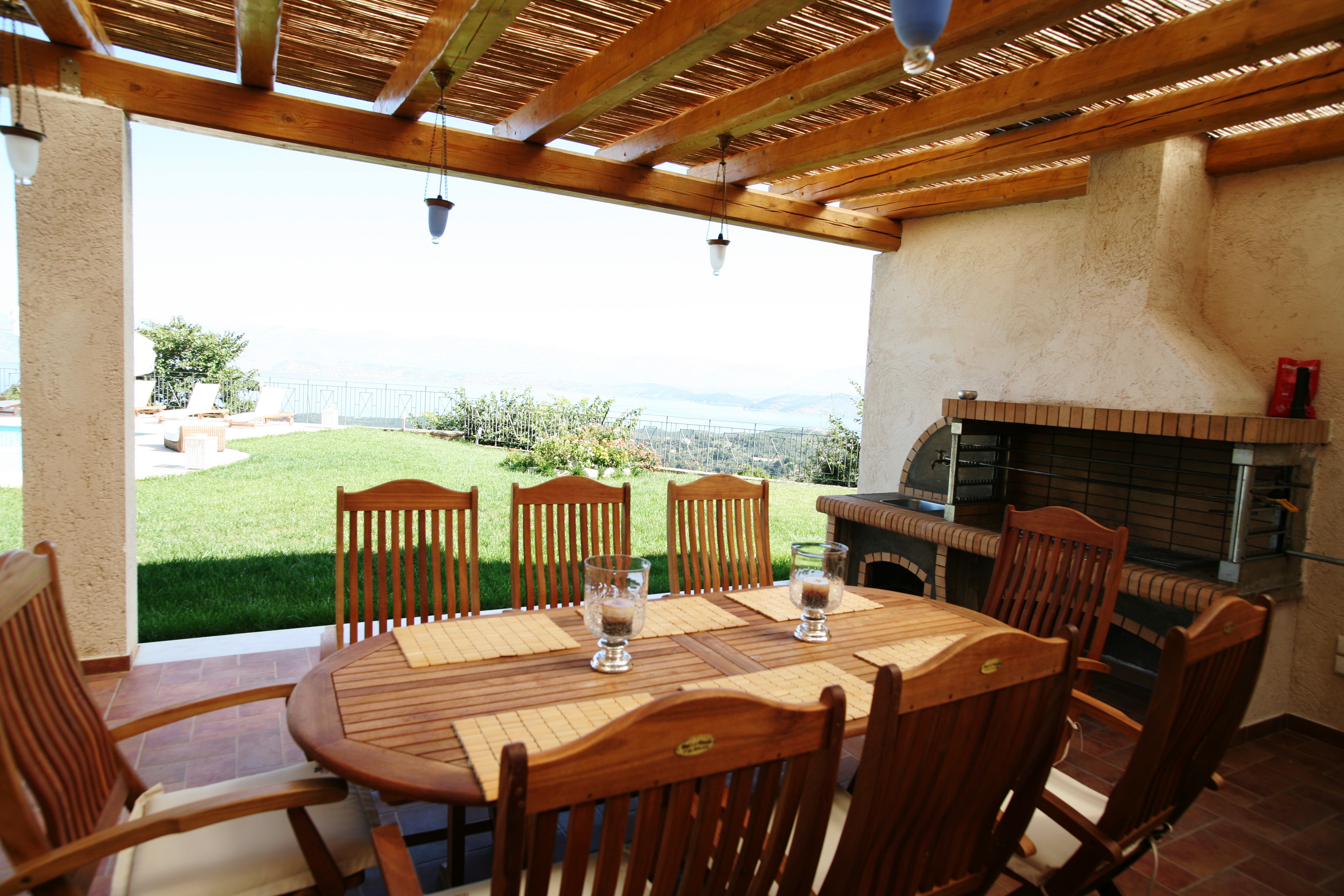 Corfu airport is 40km from the property, the closest beach is Avlaki around 5km distant which also offers windsurfing and dinghy sailing (tuition also available). Horseriding is also offered in Avlaki village. The closest village is Kremmithas 3km from the villa, although the closest village with any shops is Sinies 4km distant. The resort of Kassiopi with its bars, restaurants and tavernas is 6km.