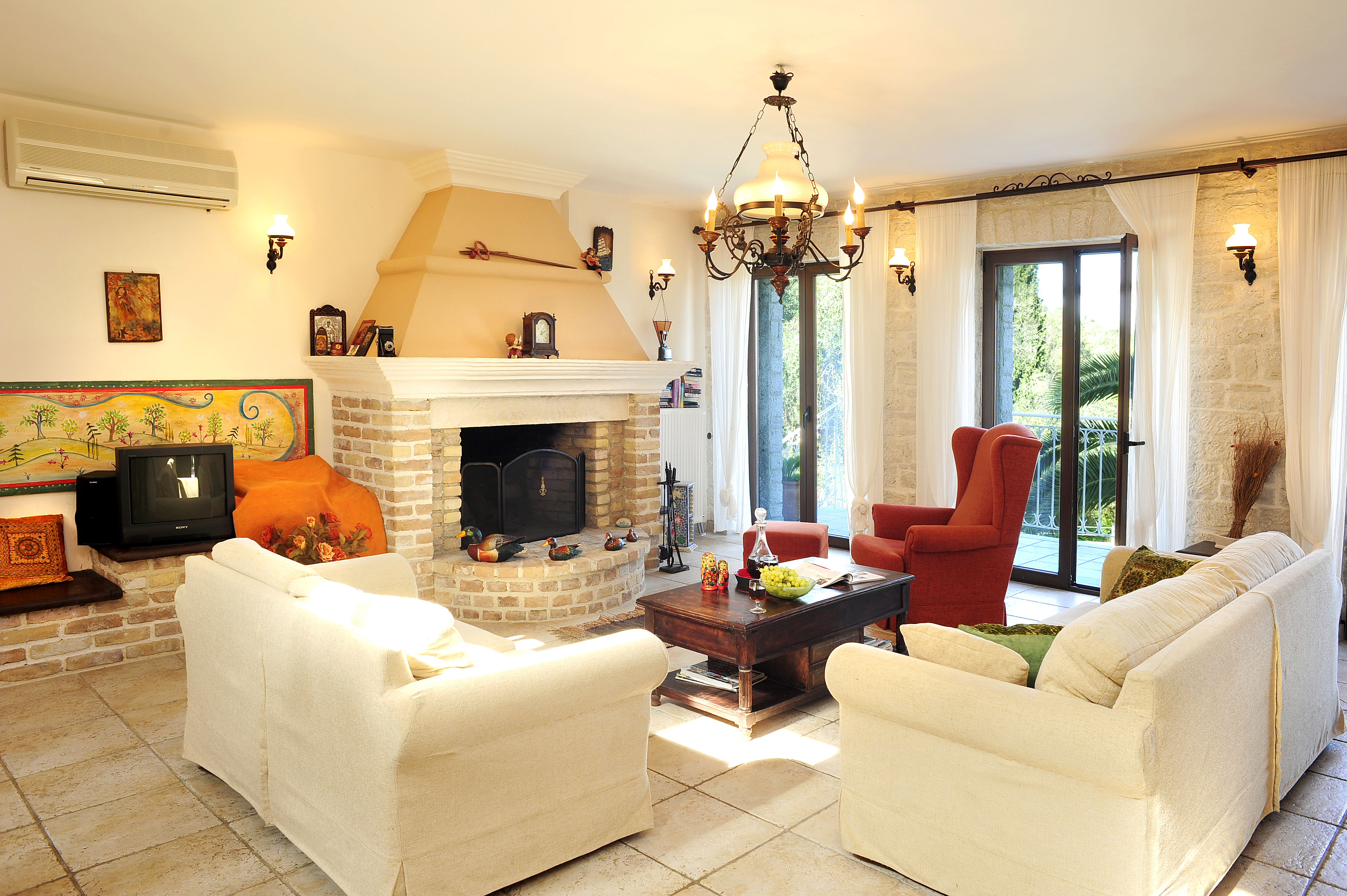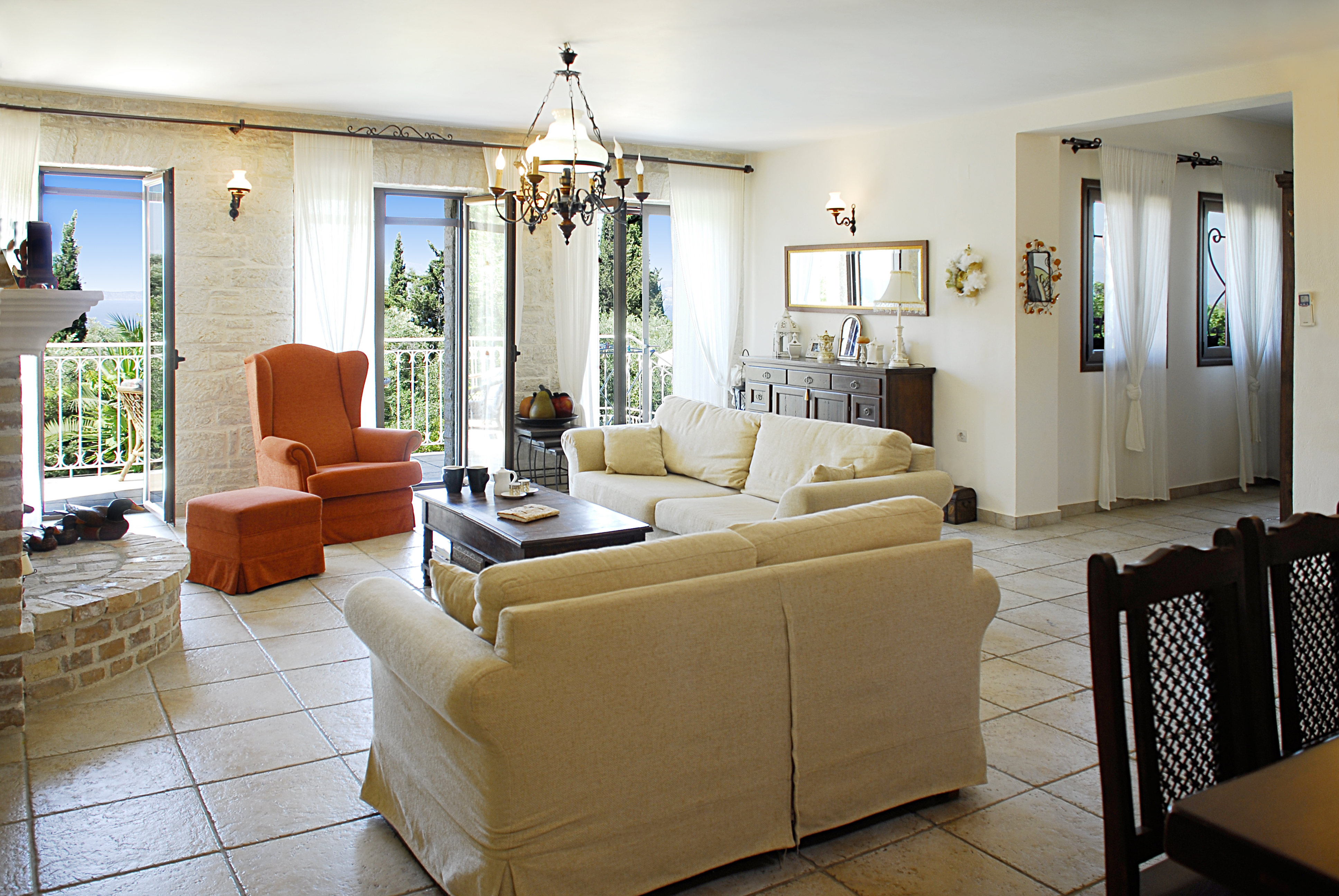 Beach: 1,7 klms from nearest beach but also a few minutes drive ( 10 to 15 minutes) from either Avlaki or San Stefano Bay offering pebbled beaches on the north East coast or from the sandy beaches of Acharavi in the north