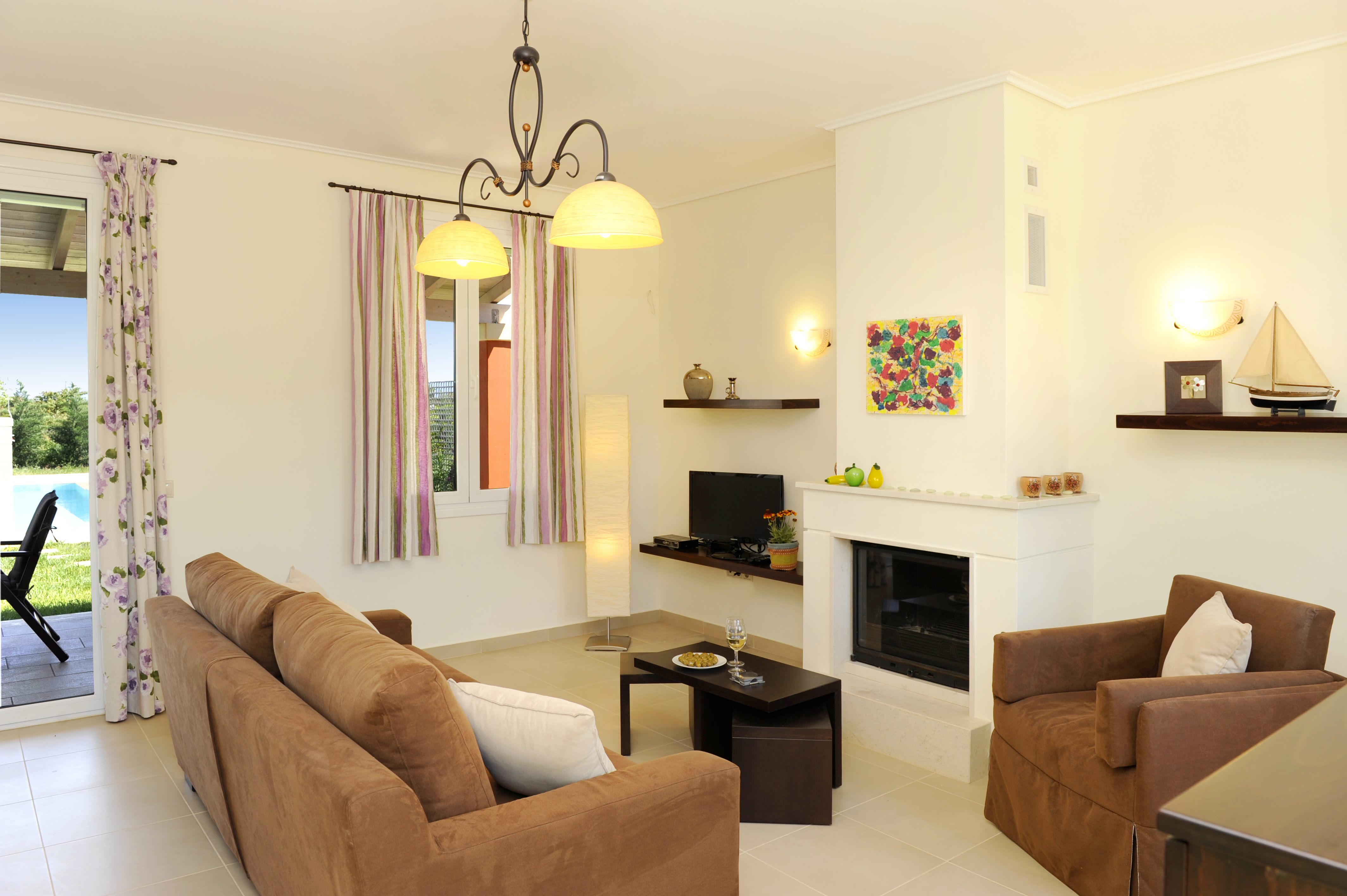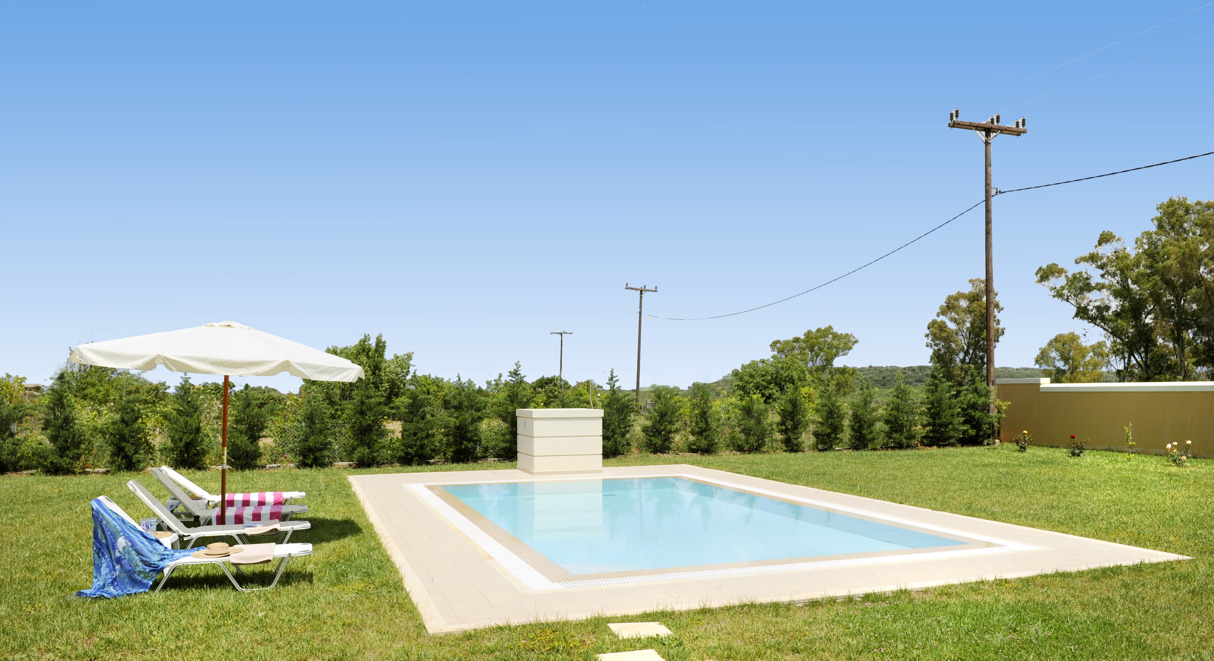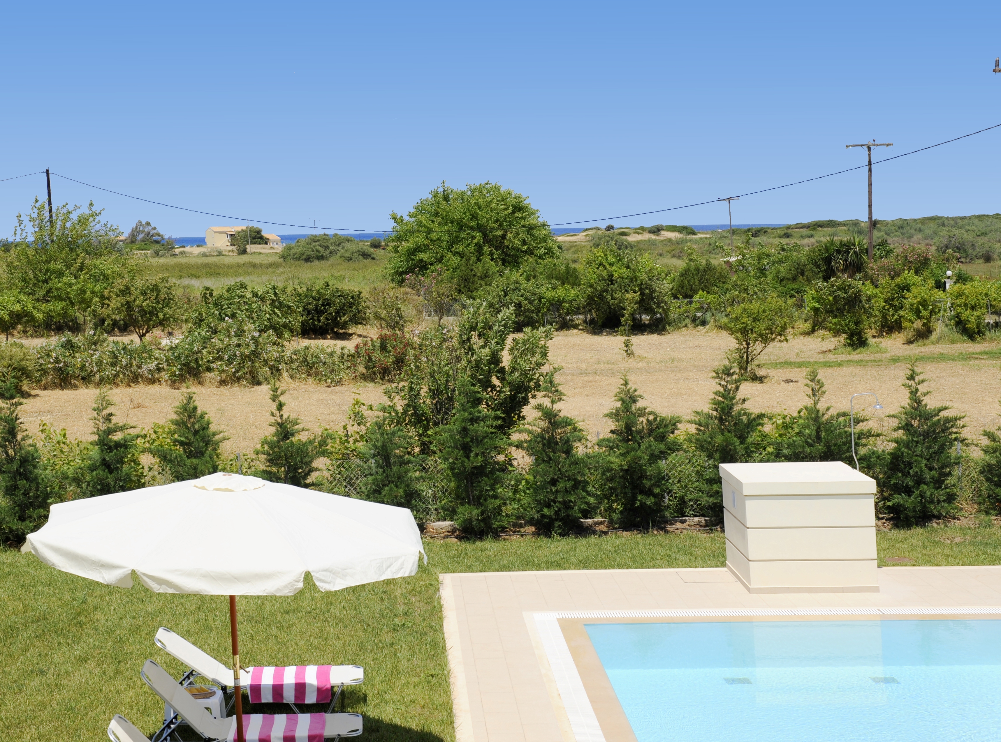 The cosy interior of the villa offers all the comfort of a modern minimalist house whilst the exterior with lawned areas around the pool fills visitors with a feeling of serenity. The nearby beach offers the sort of atmosphere of nostalgic lazy days on the beach, fresh fish from the taverna for lunch and the stunning sunsets over the Ionian.