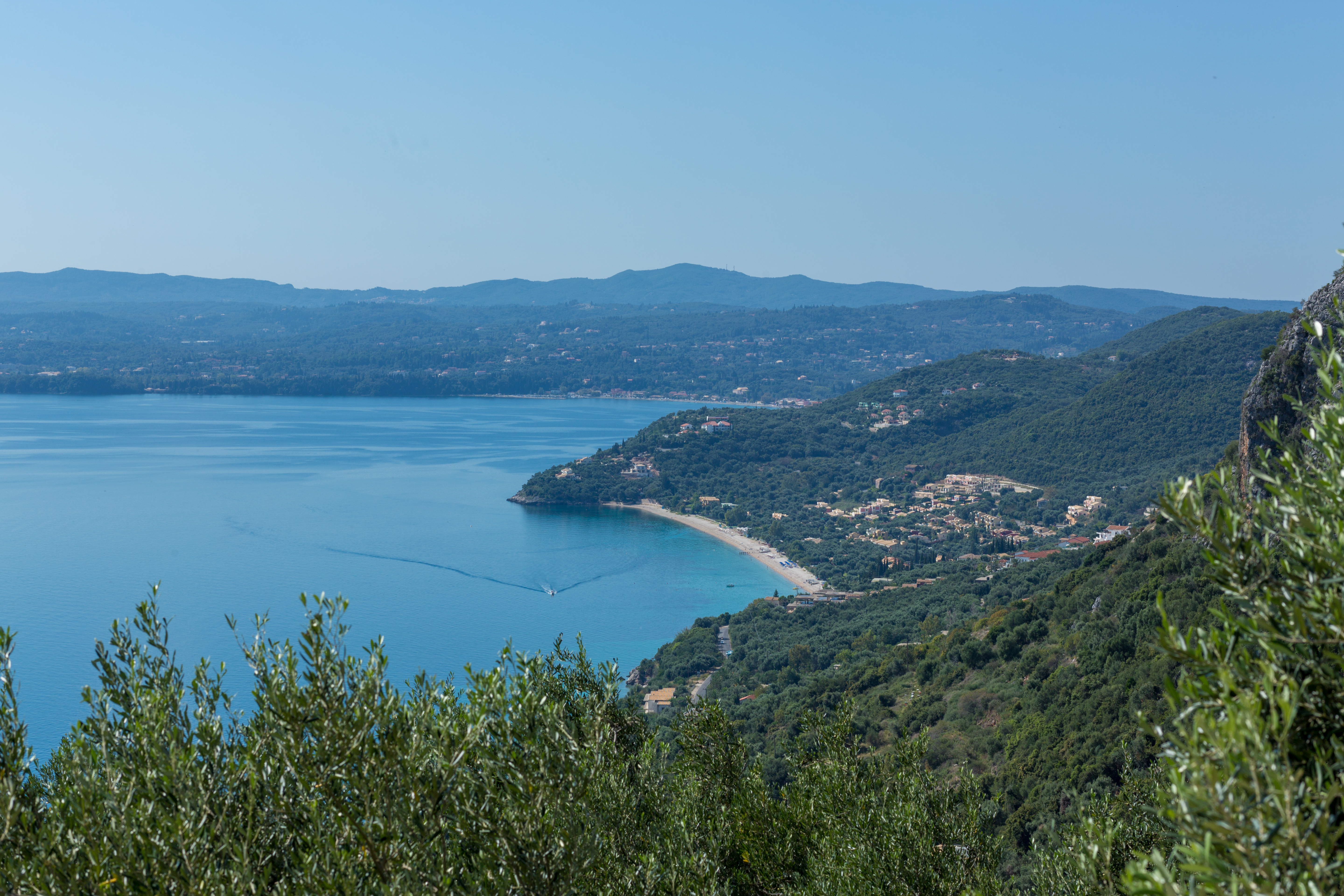 The views from the hillsides in the area are simply awe inspiring. Panoramic vistas stretch across olive groves to the Ionian Sea, and the mountains of Albania beyond. Hidden amongst the rocks on the slopes of Mount Pantokrator on the north-east coast of Corfu and surrounded by olive groves and forests, the beautiful village of Sinies offers fabulous picture postcard views.