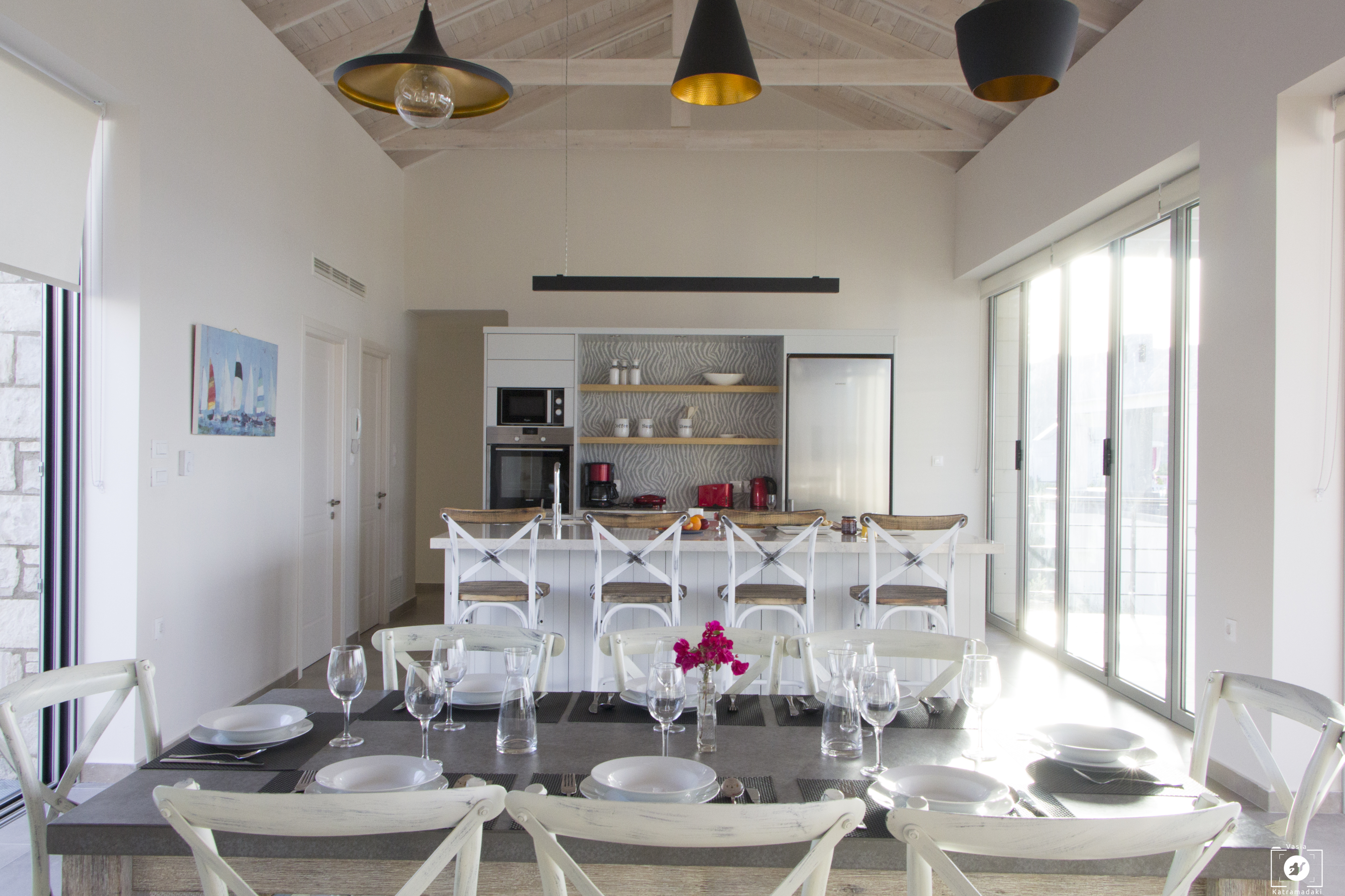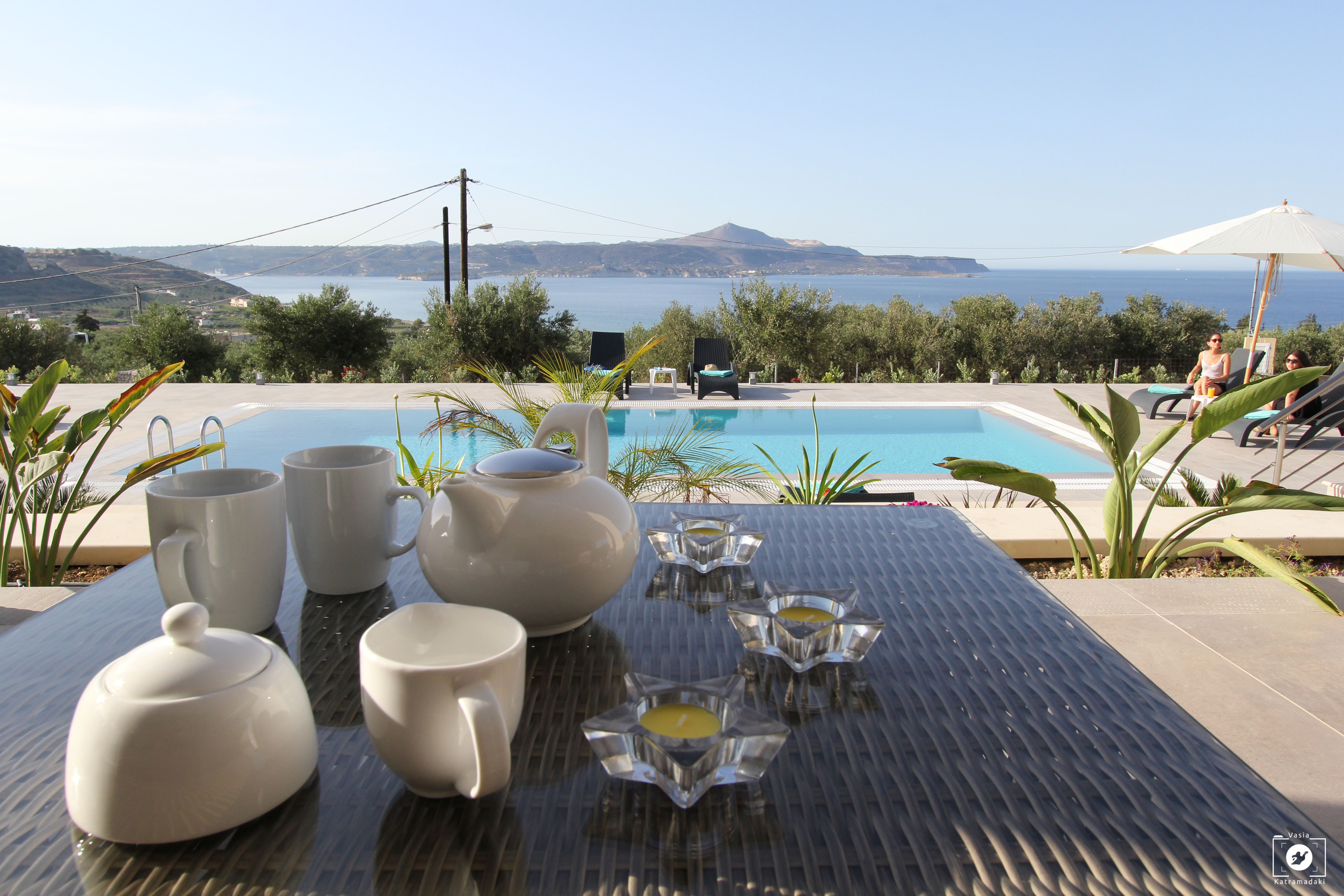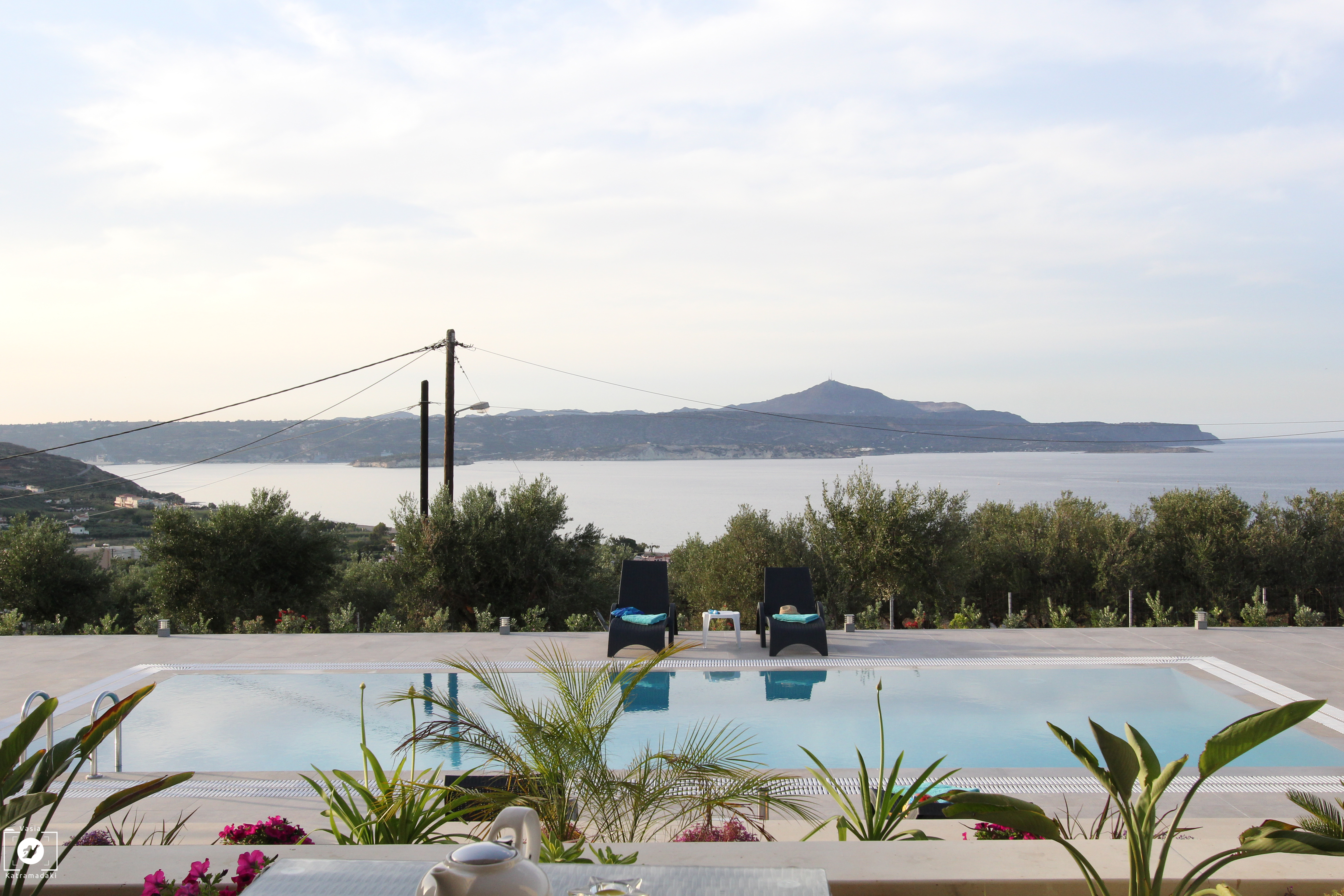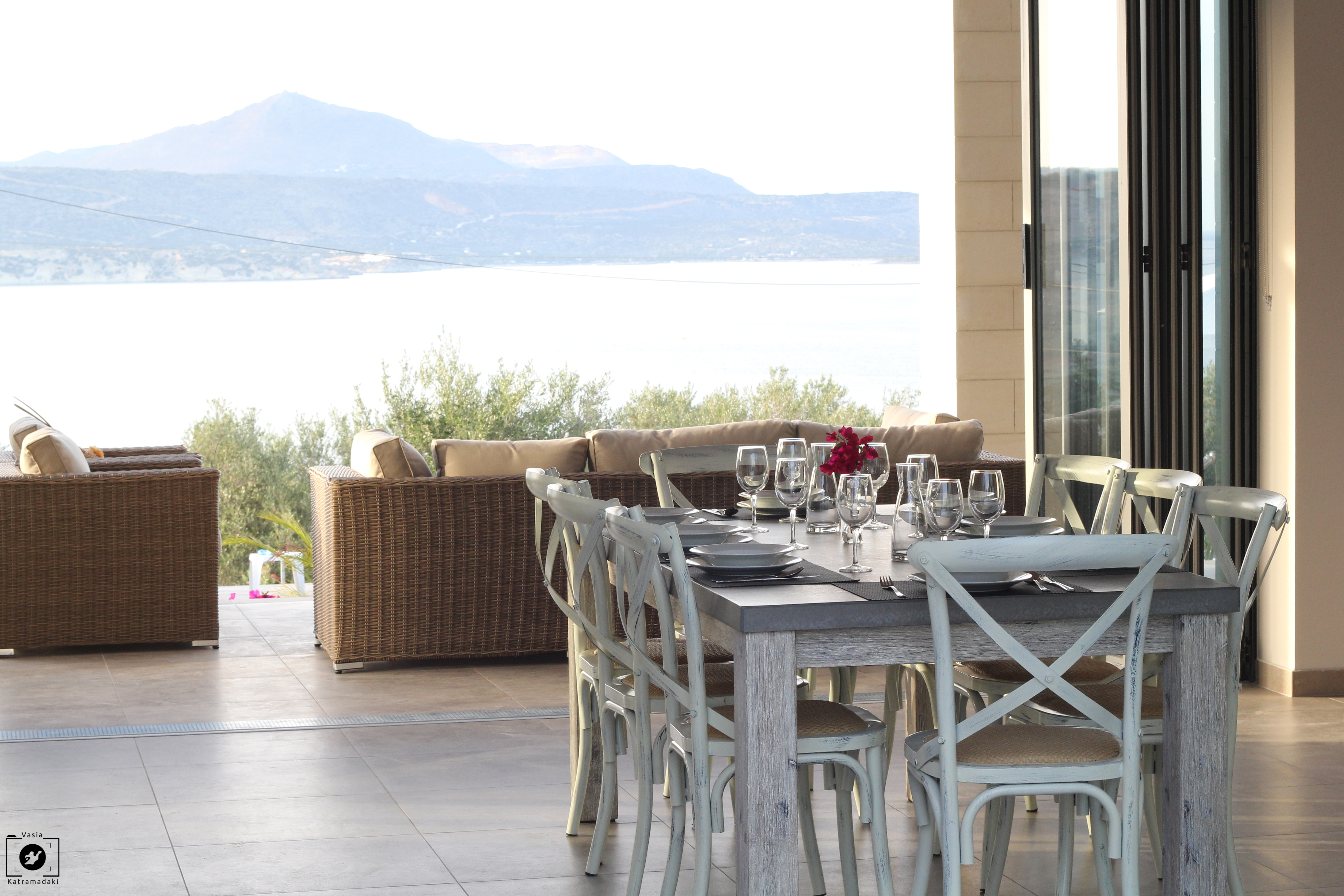 The highlight however is the stunning views of Kalyves lush olive groves; stunning mountain scenery and the Aegean sea directly in front of the property. Needless to say that the sea views from here are simply breathtaking.