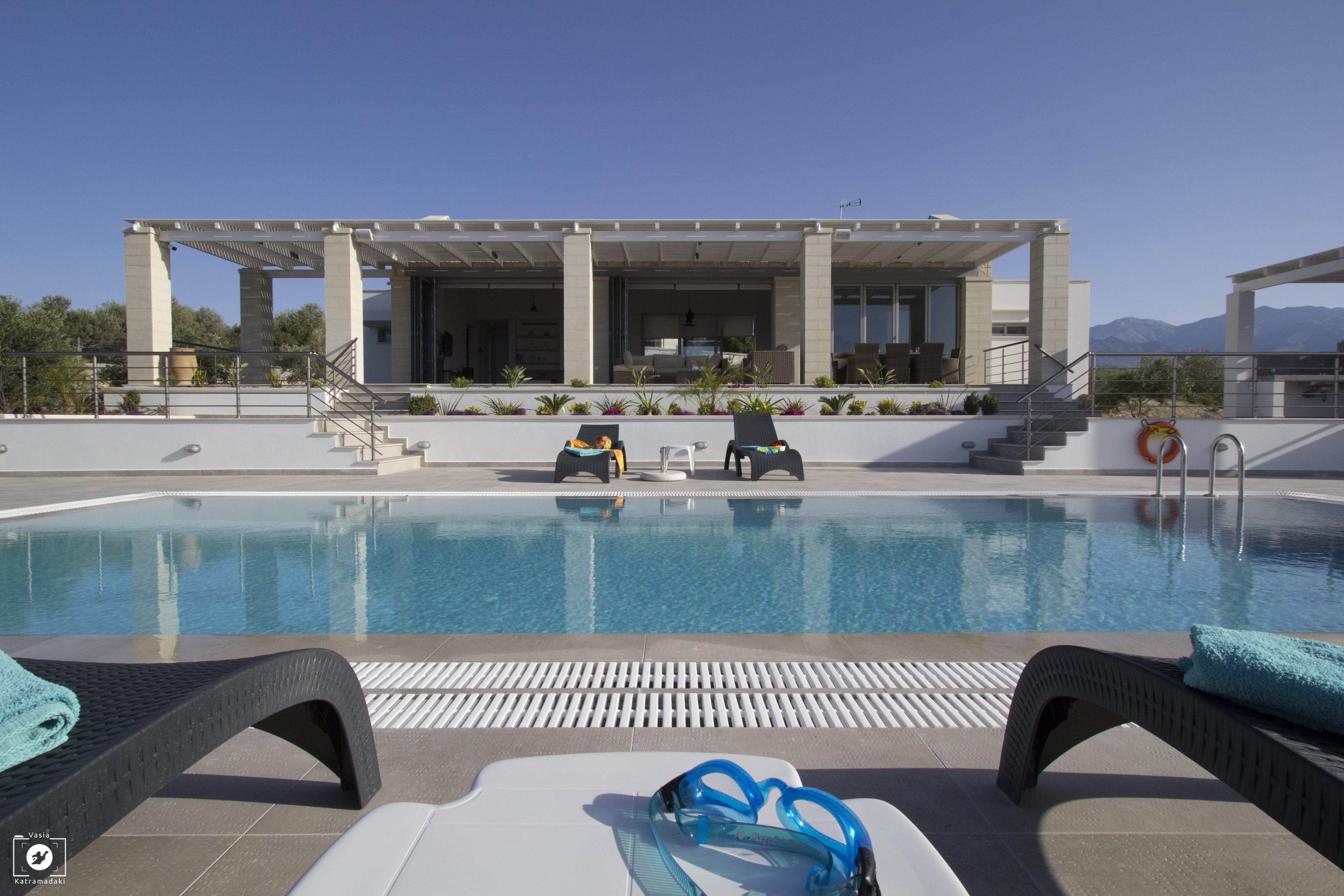 Set among rolling olive groves and yet only 2 minutes away from the nearest beach, this elegantly designed villa with breathtaking views of the Aegean Sea towards Souda Bay, and magnificent panoramic views of the mountains and surrounding area is perfectly positioned for those seeking the ultimate Mediterranean experience.