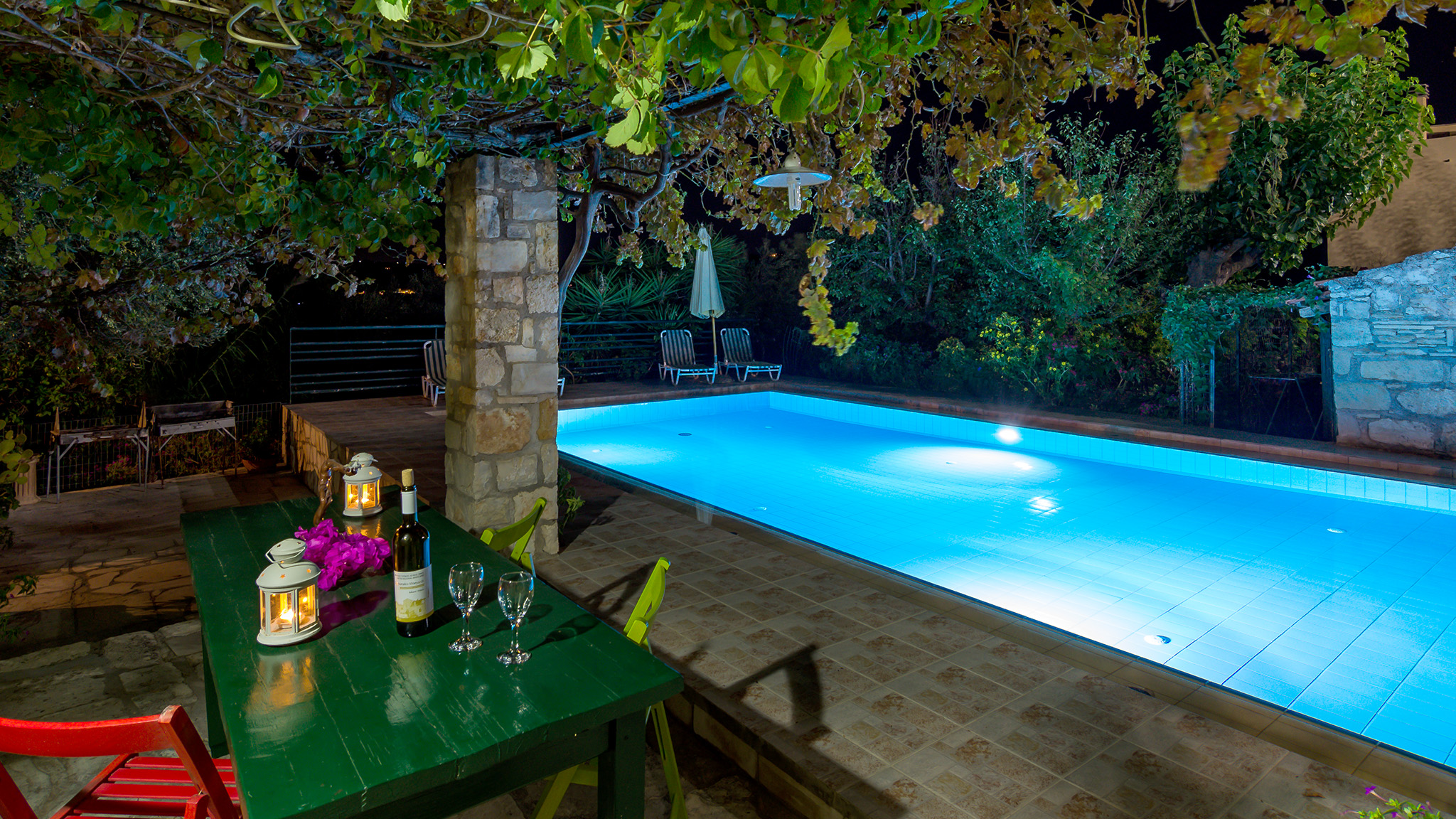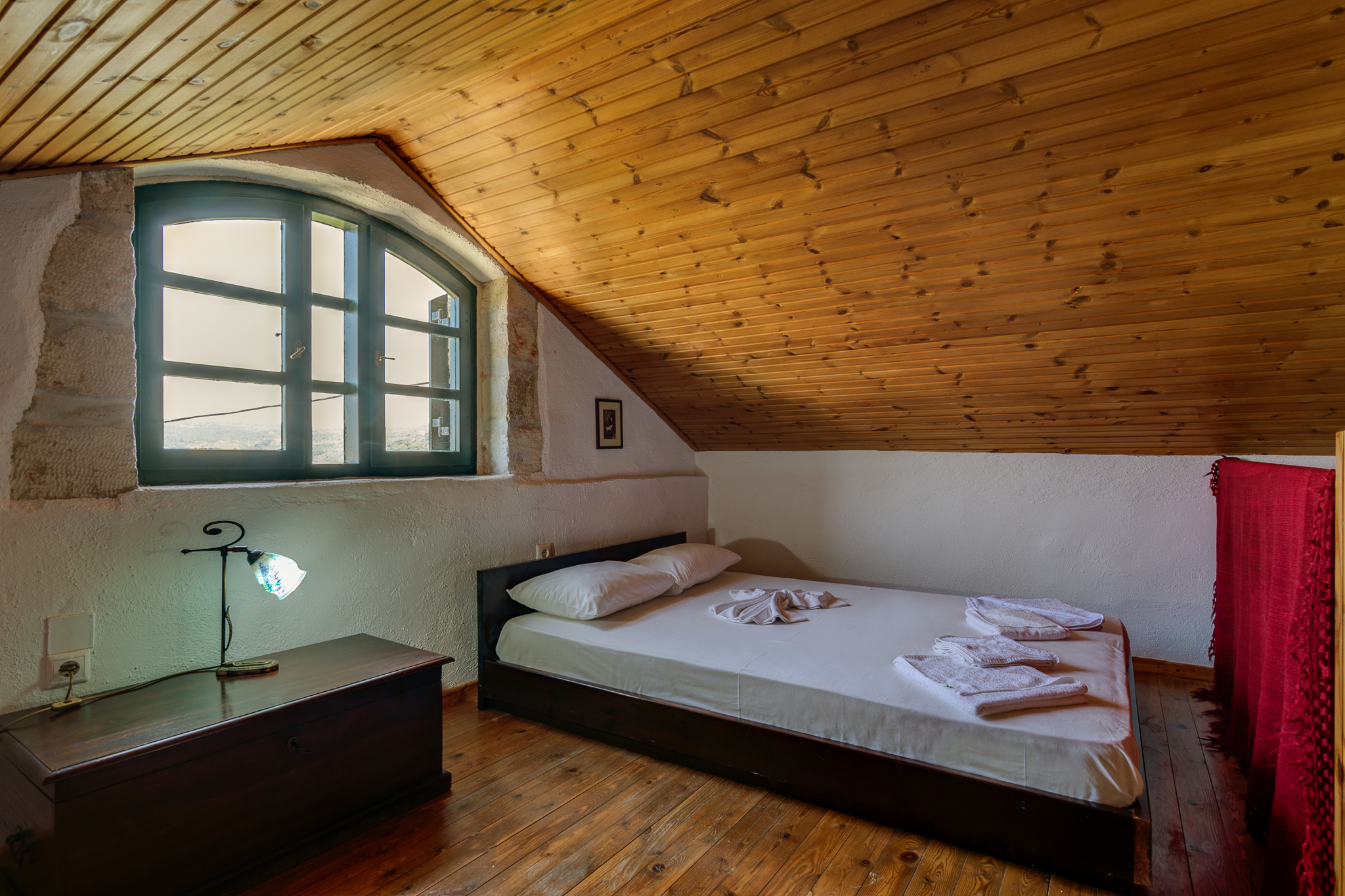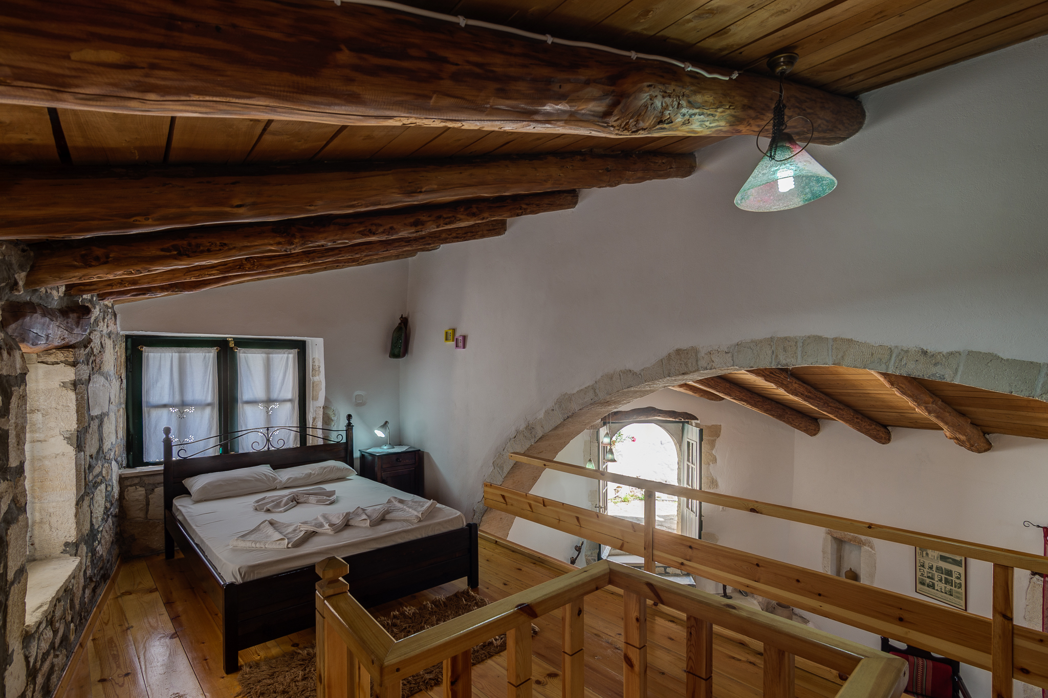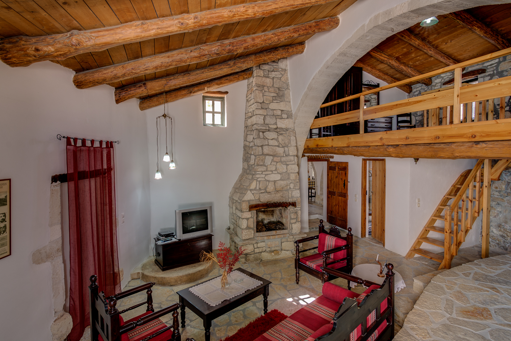 The two Millstone Houses used to be in the 18th century an olive press. Located in the traditional village of Douliana 2km from Vamos, they have a beautiful garden, communal barbecue area and large shared swimming pool. The rooms have high ceilings and the walls are decorated with the old millstones of the olive press.