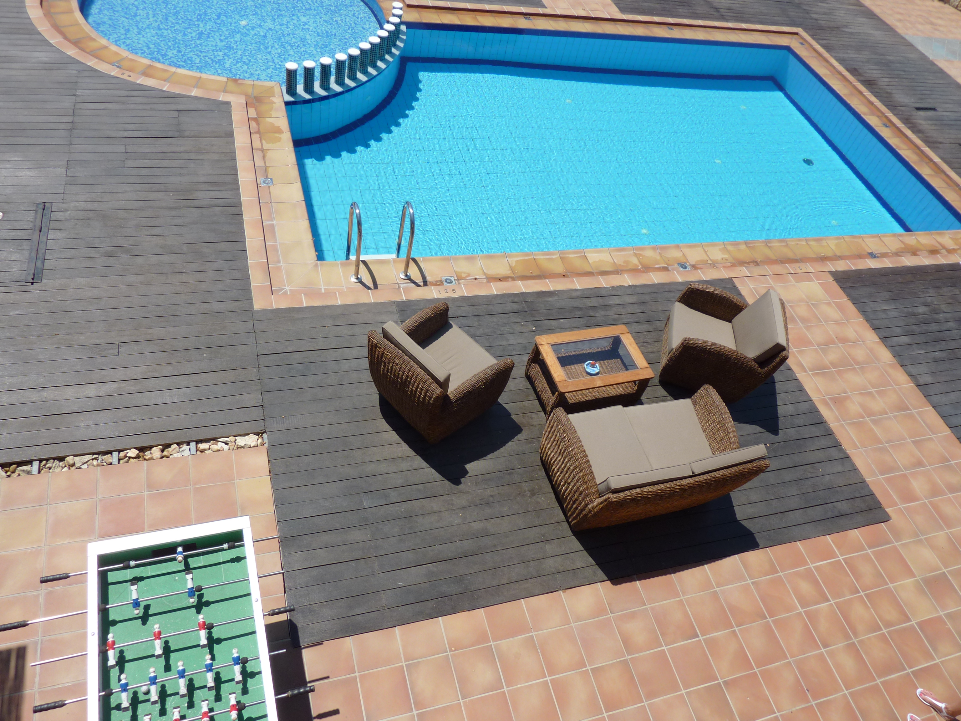 Two covered terraces extend the length of the property overlooking the pool.