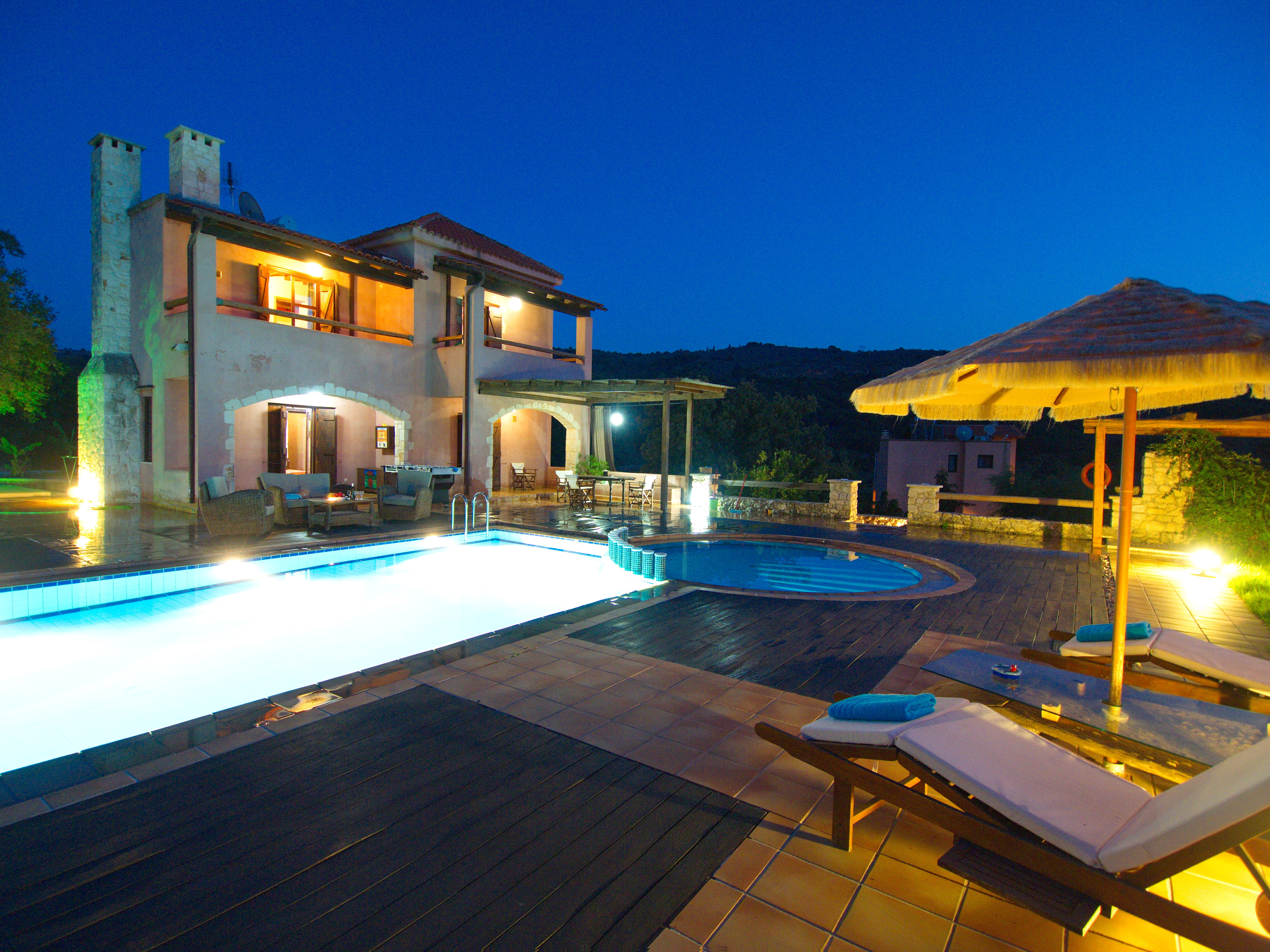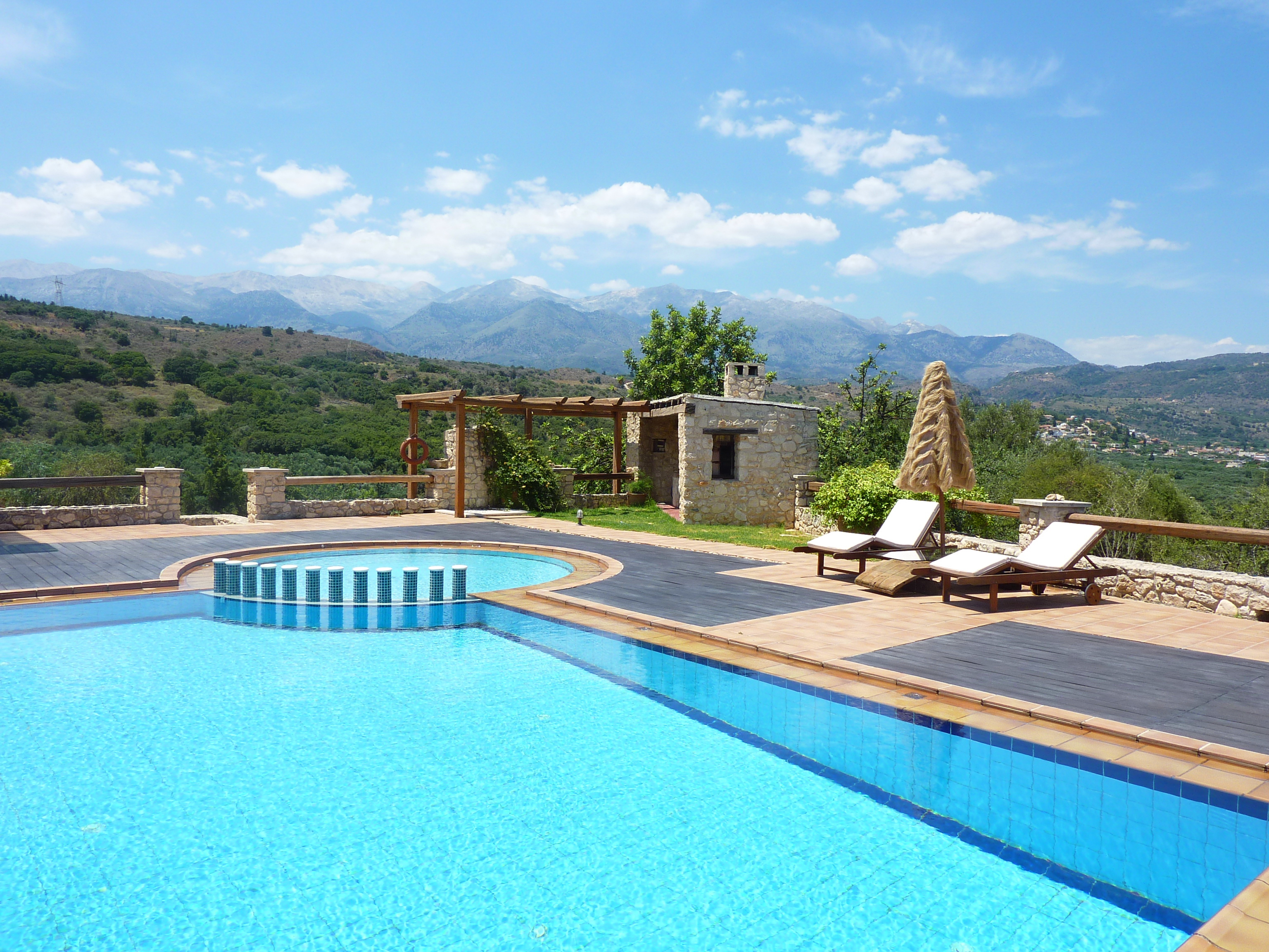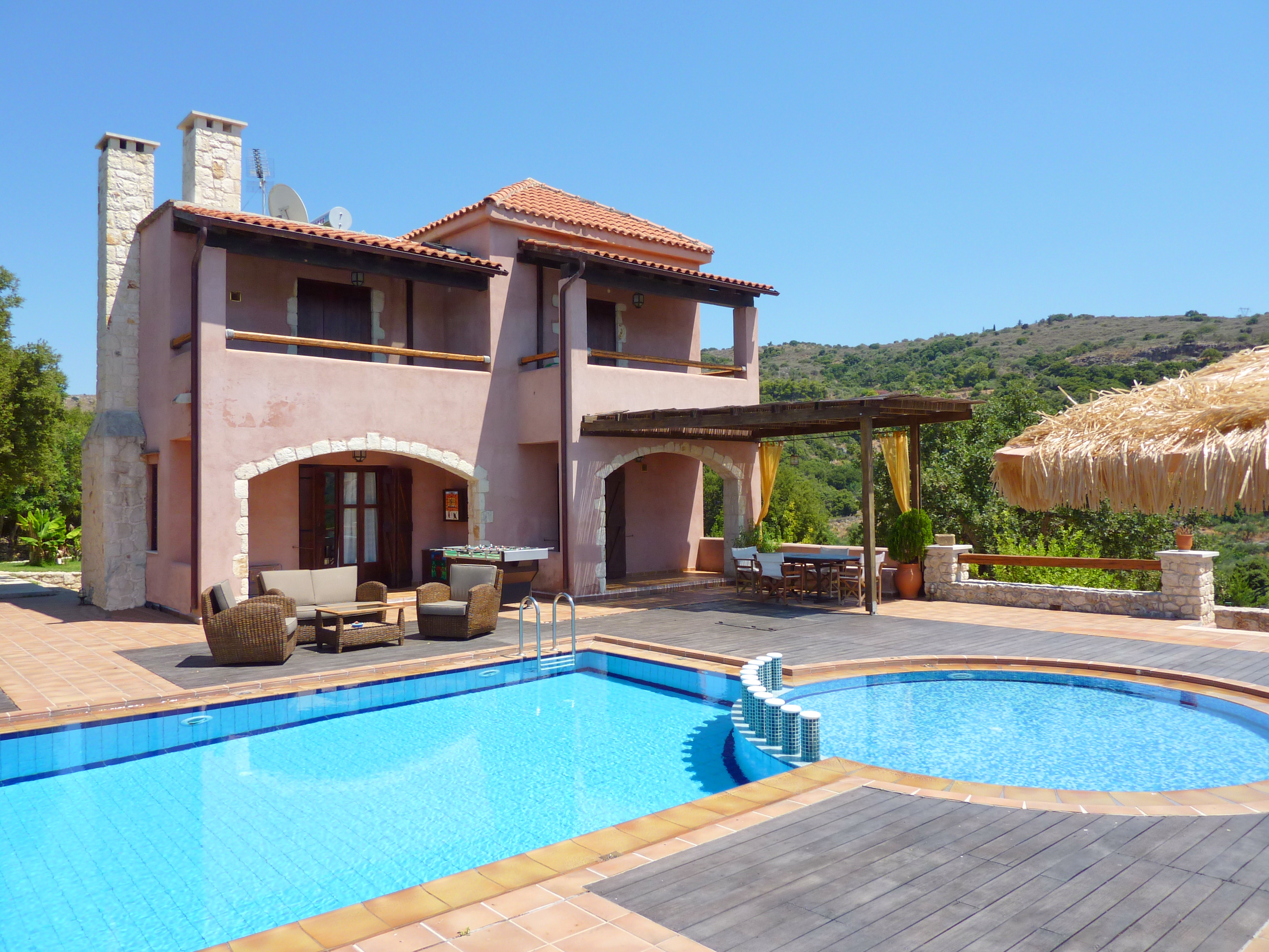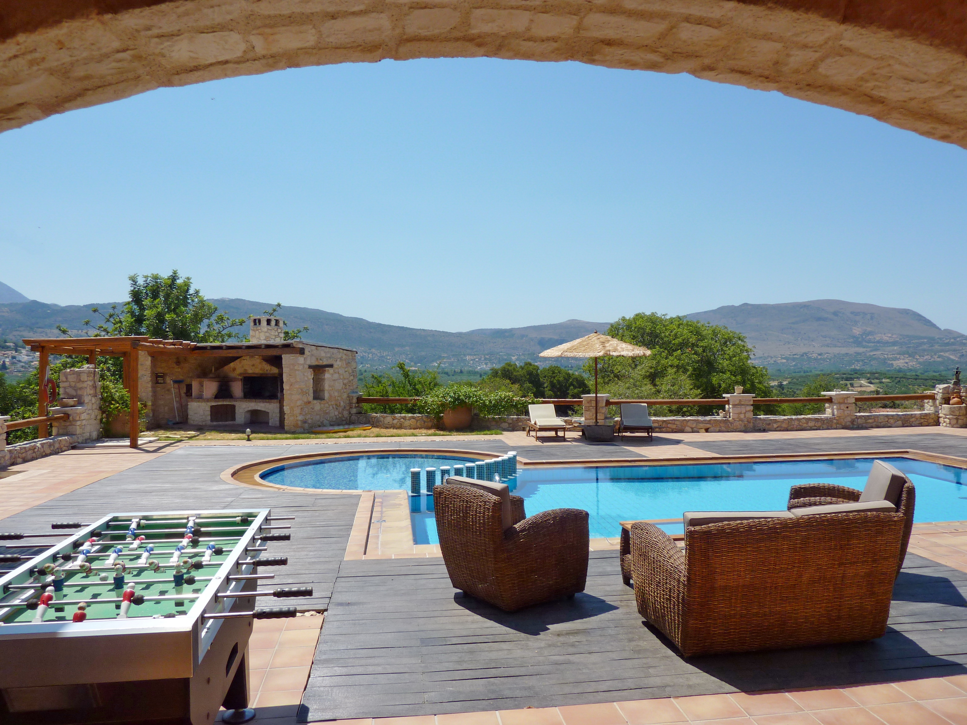 Around the swimming pool (with its adjoining children's pool) there is a smart alfresco dining area and barbecue complete with ‘Cretan oven’ and small fridge for drinks.