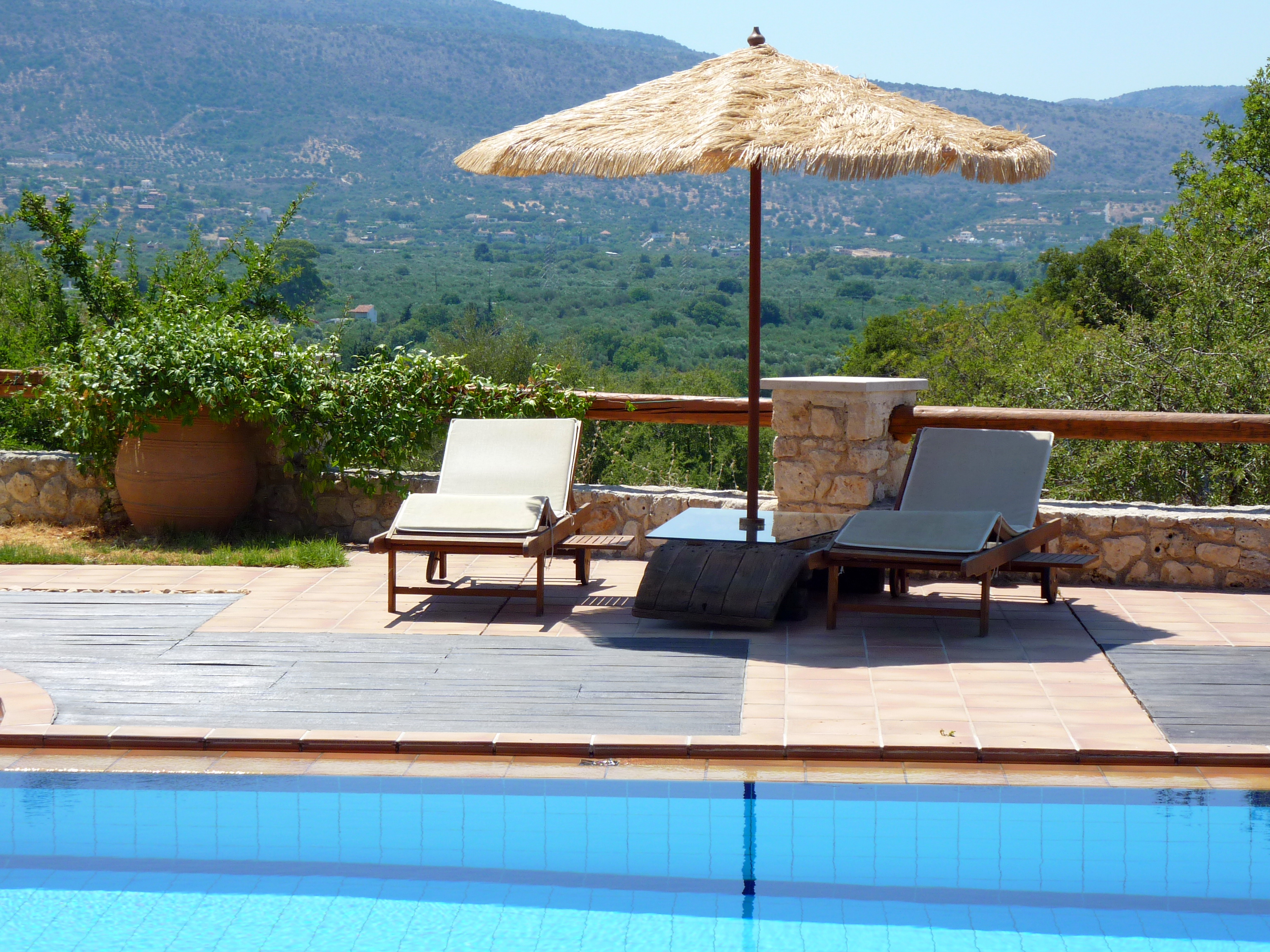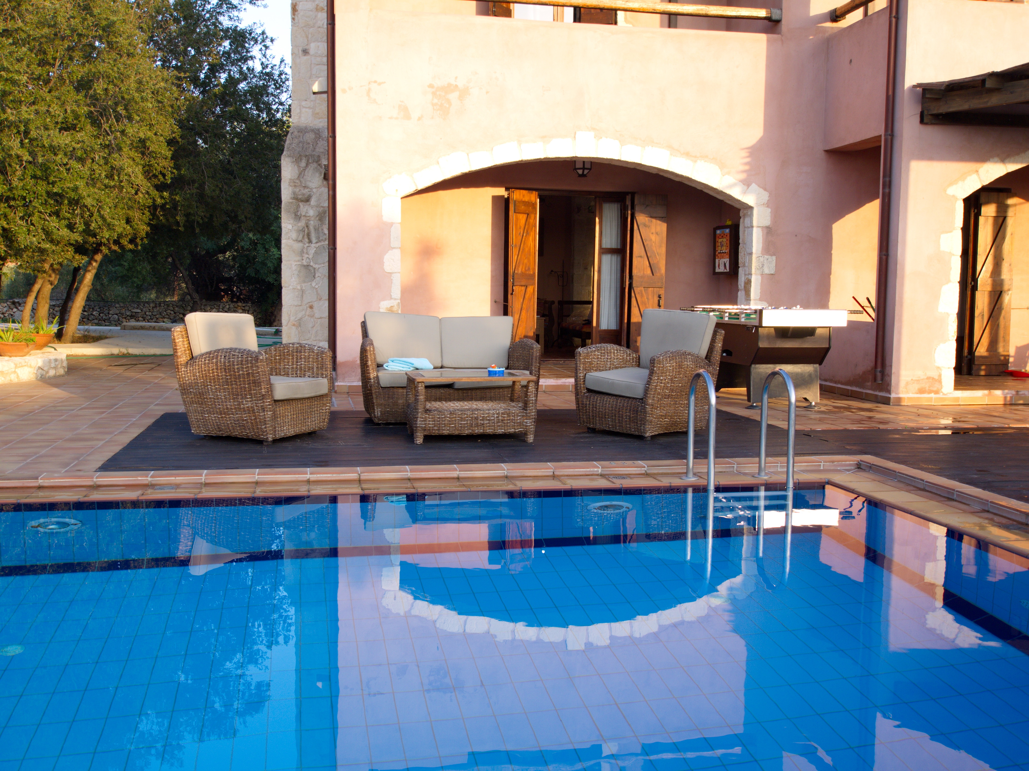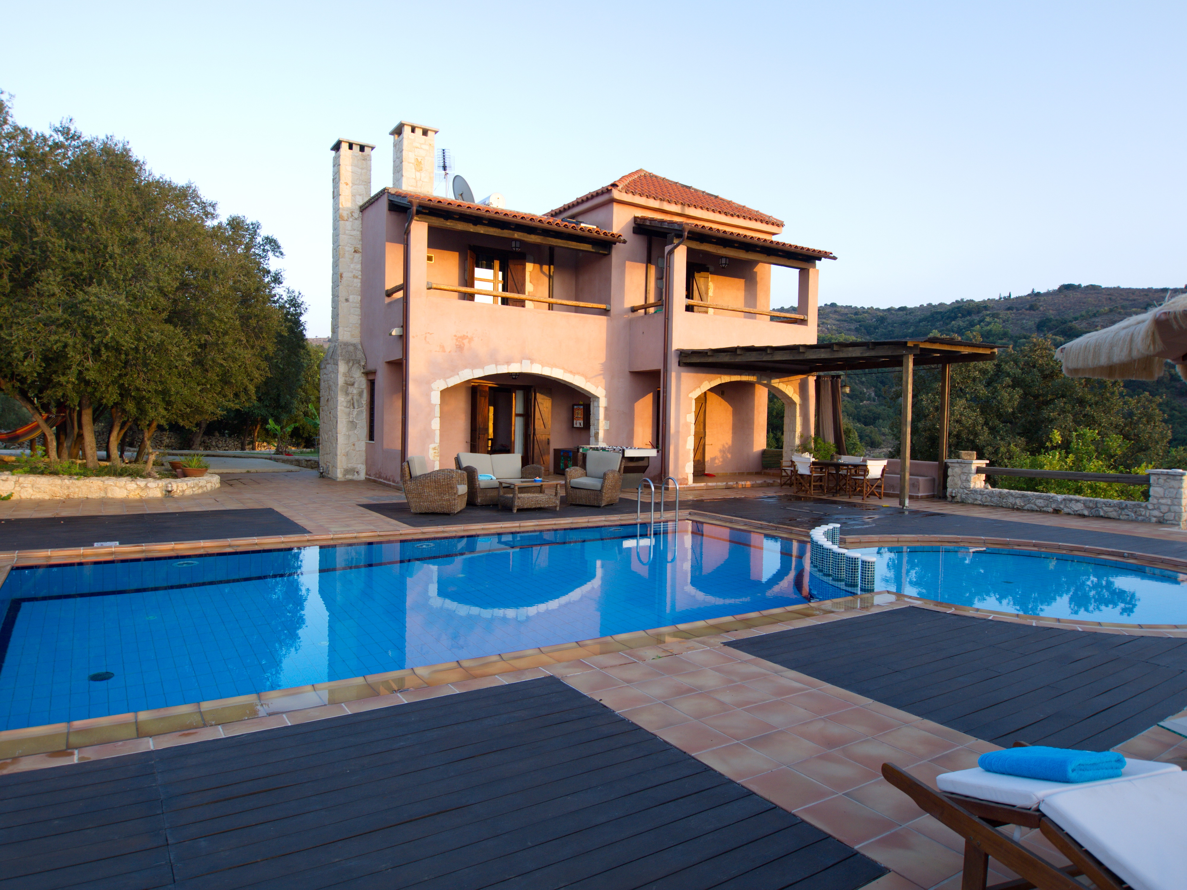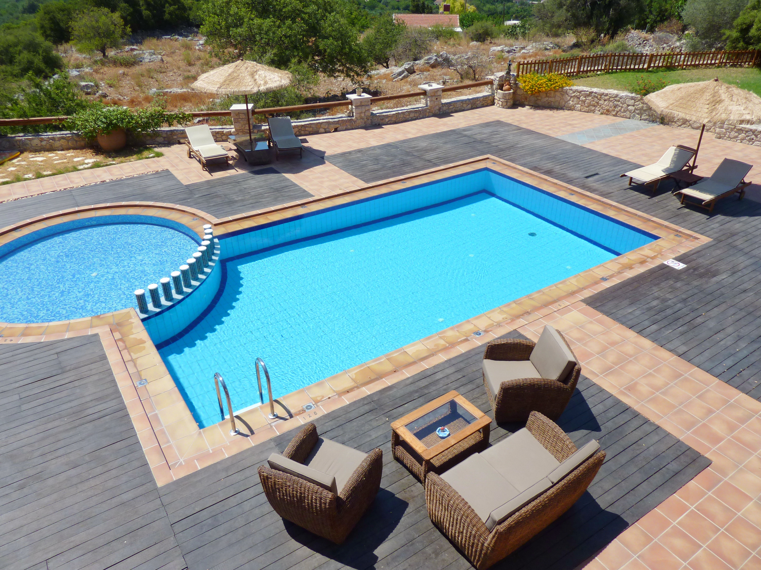 Around the swimming pool (with its adjoining children's pool) there is a smart alfresco dining area and barbecue complete with ‘Cretan oven’ and small fridge for drinks.