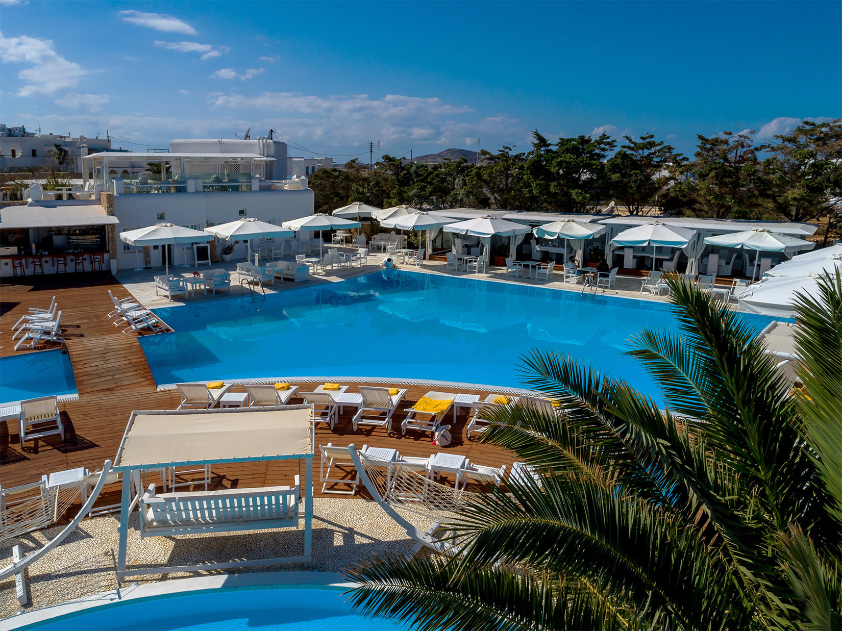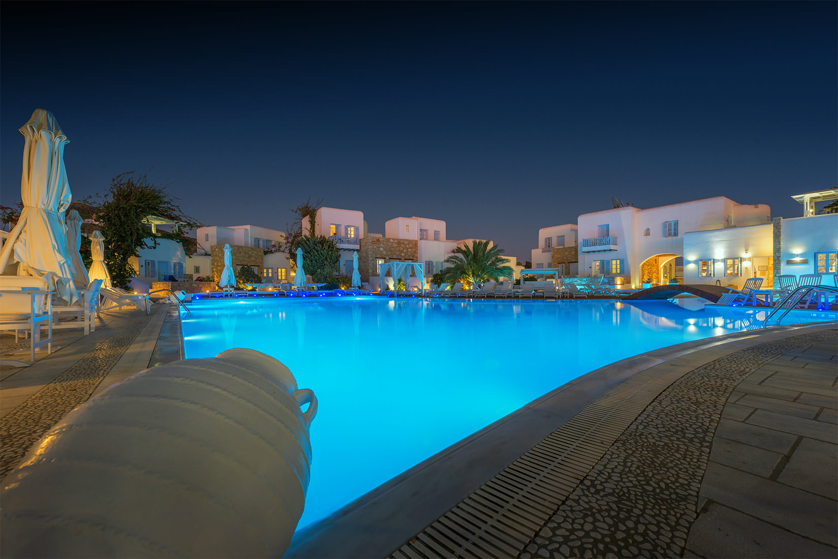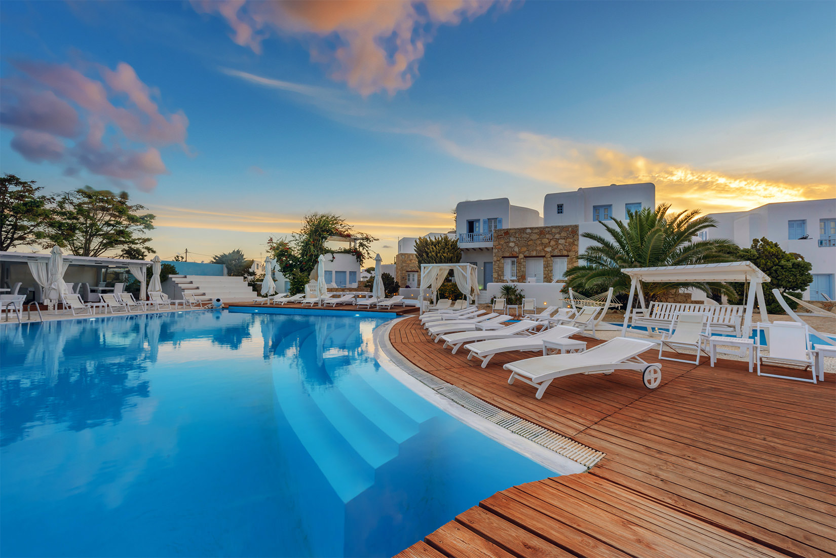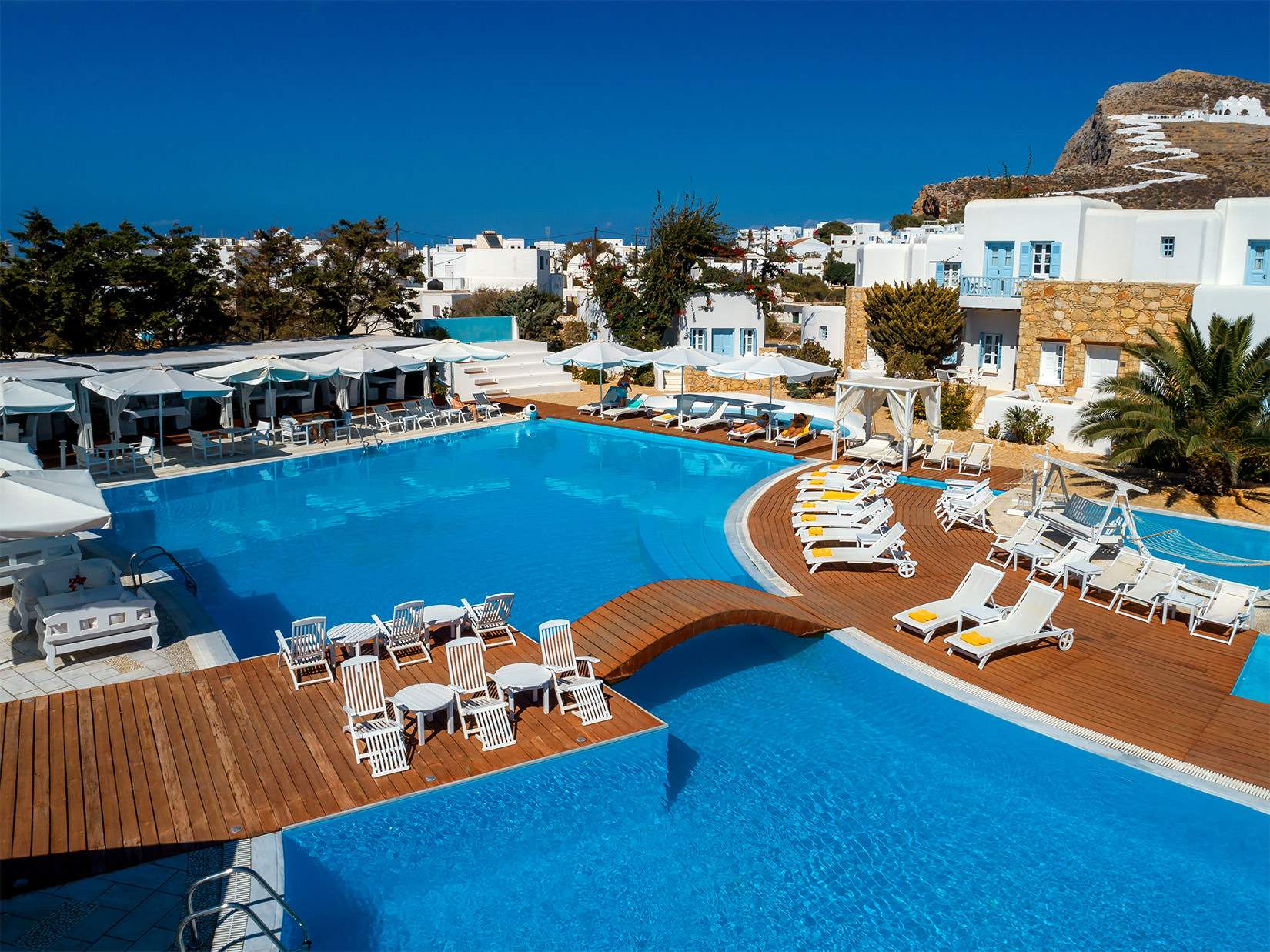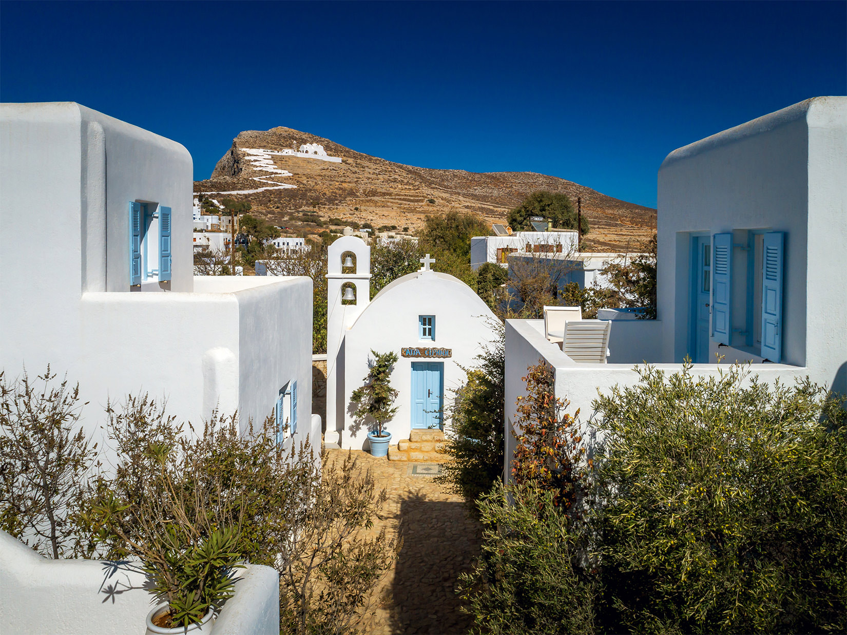Chora Resort Hotel and Spa is located in the main village – Chora- just 3km from the port at Karavostasis. There are just 24 rooms and suites spread throughout the lush gardens which contain subtropical trees and plants, and are a blaze of colour. Each is decorated in a unique way with chic and elegant Cycladic style interiors and provides a host of luxurious amenites.