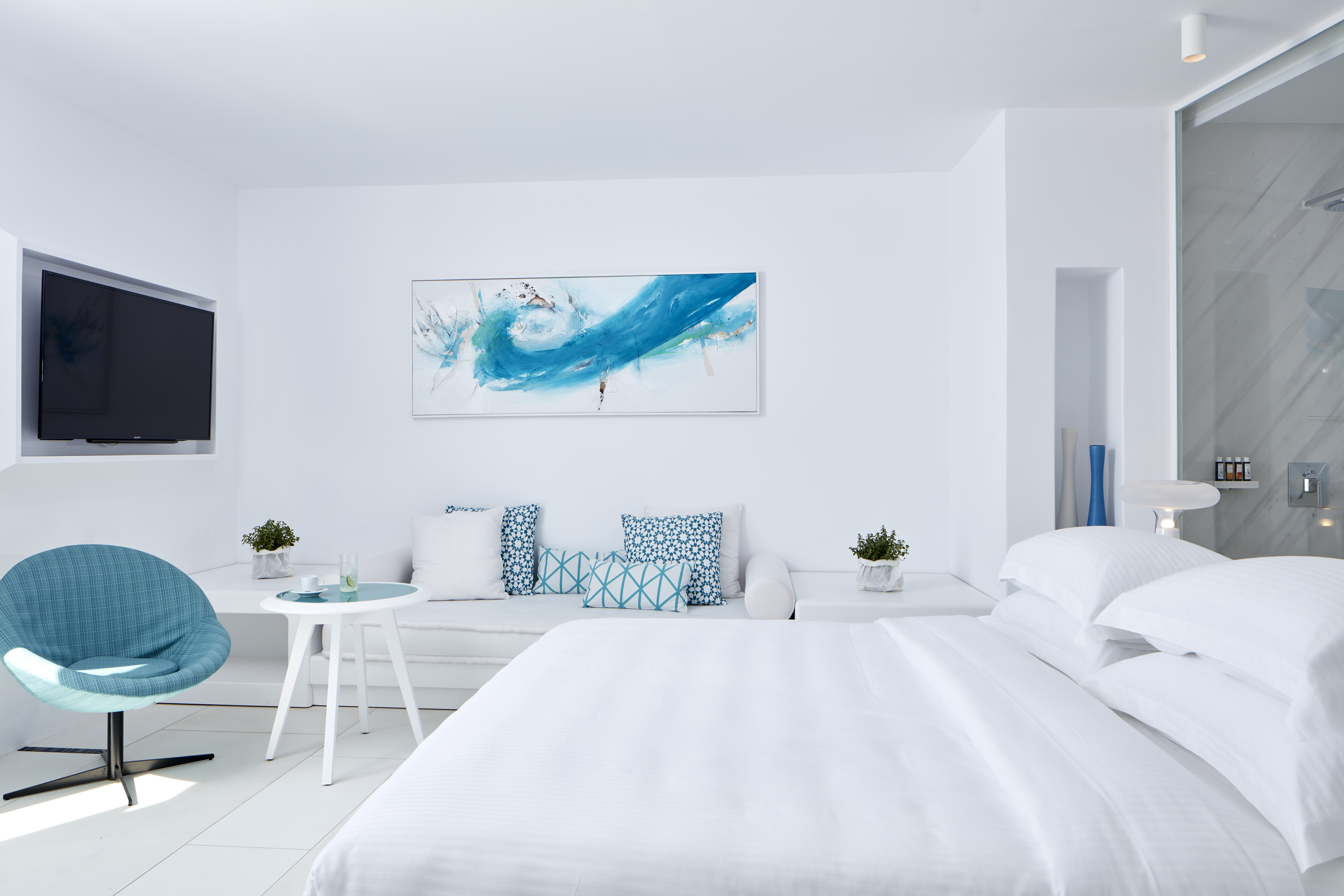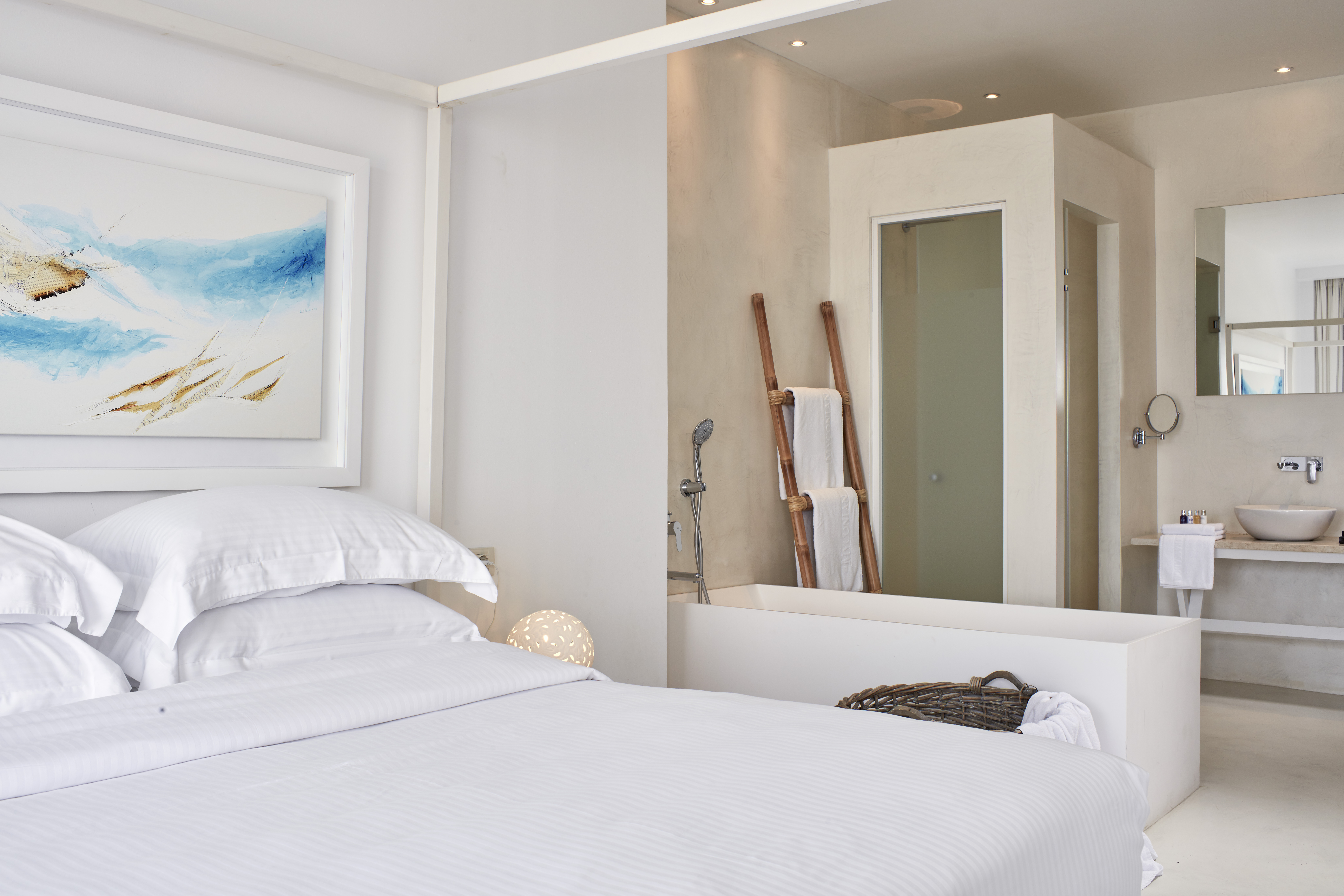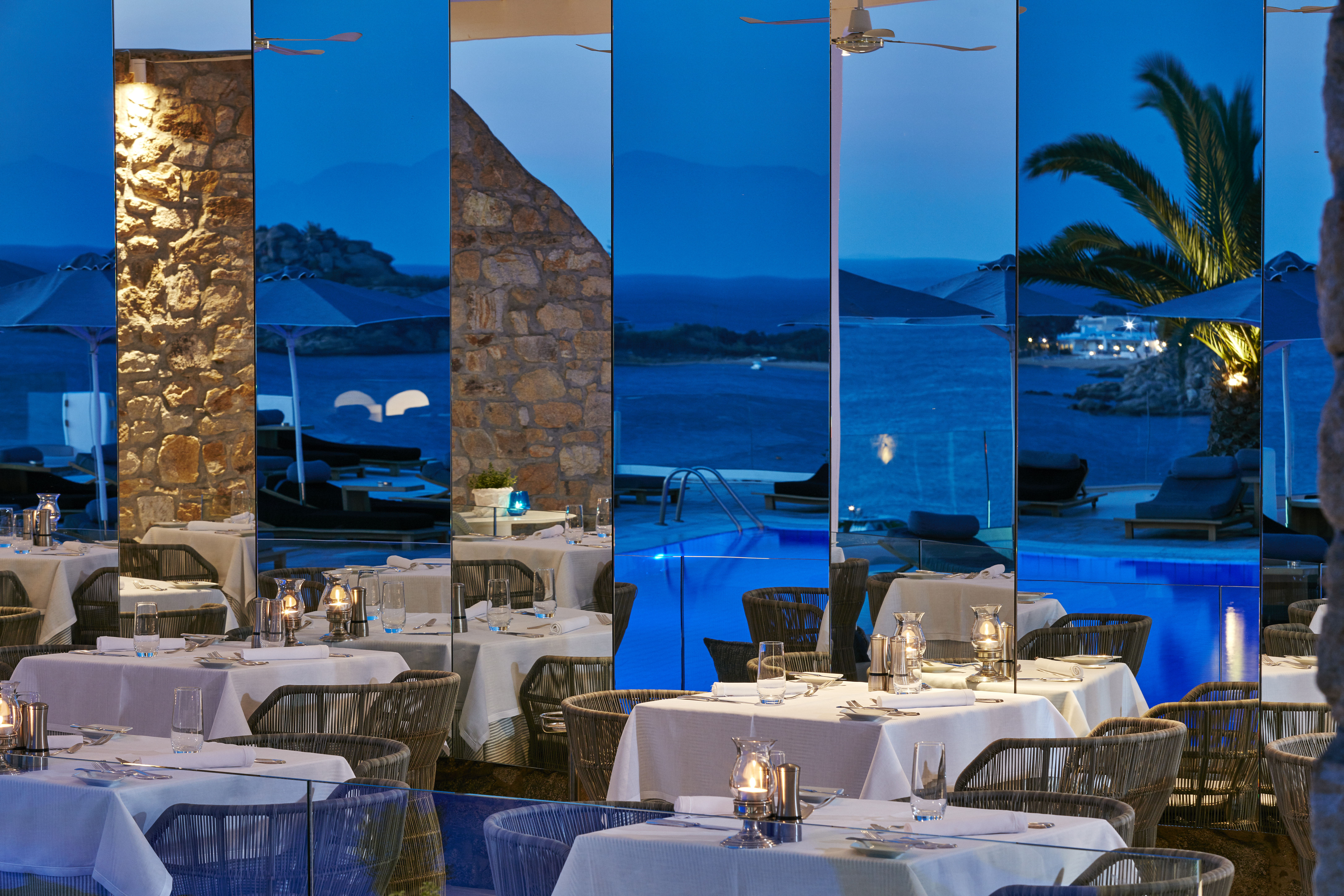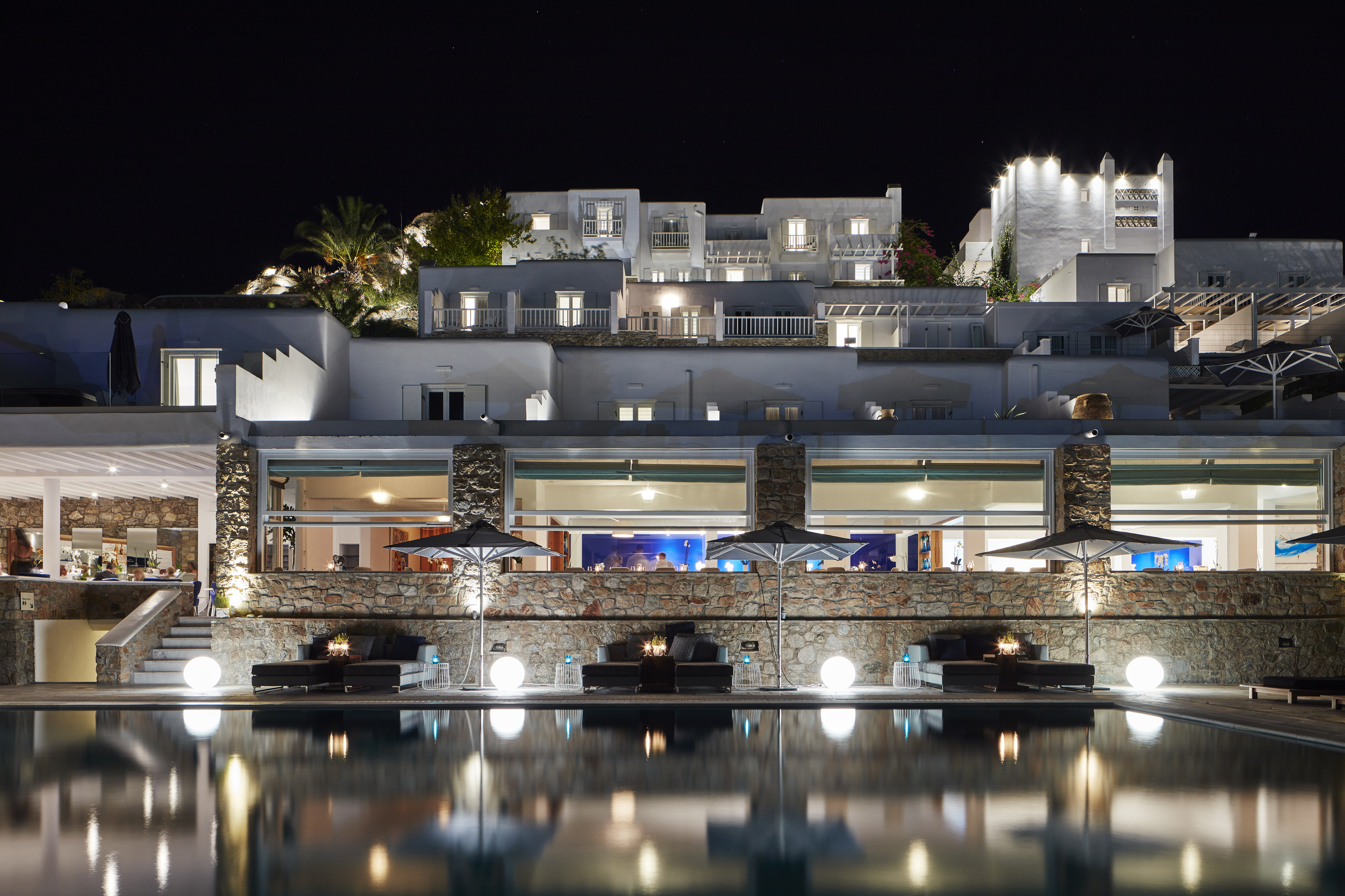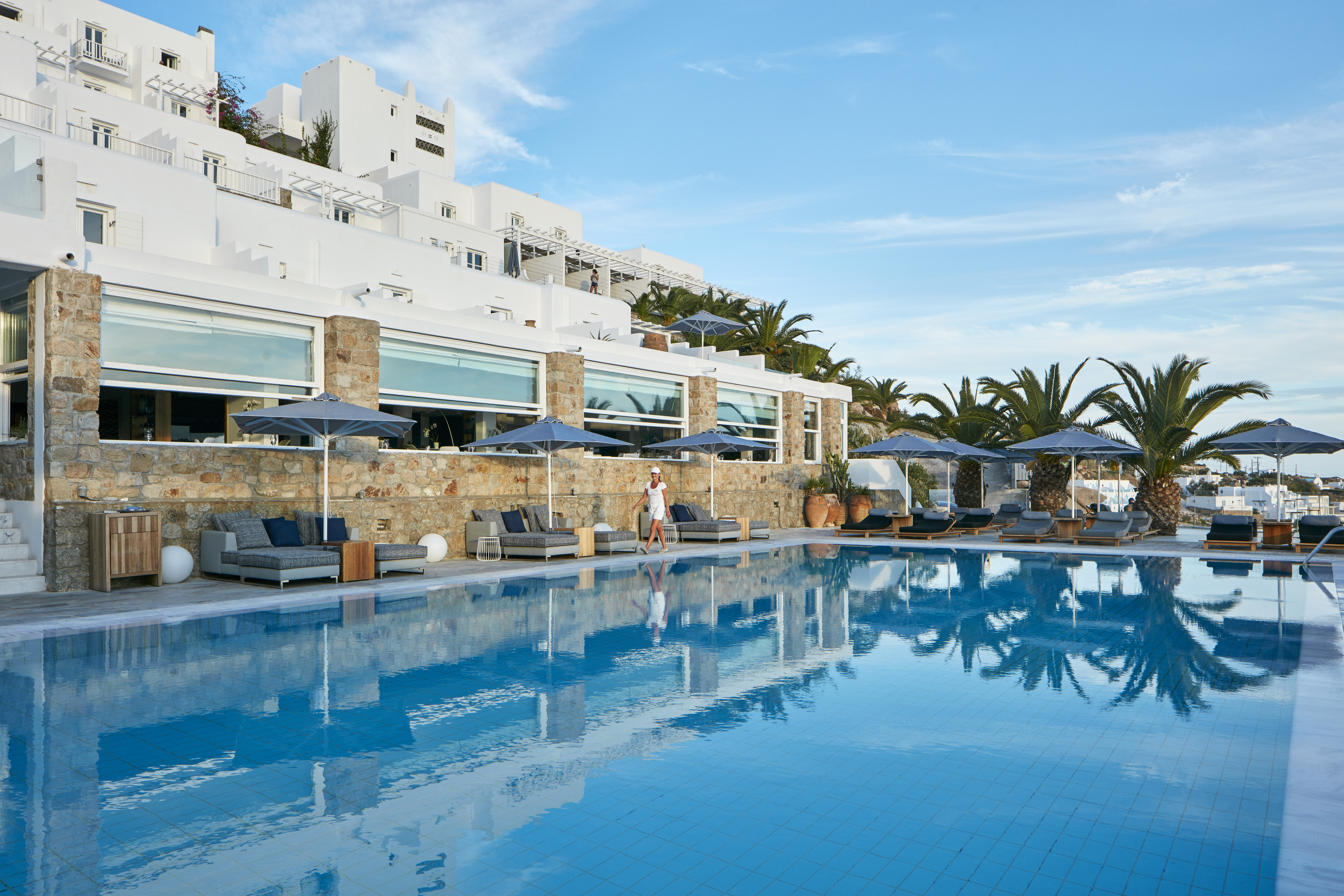 Overlooking golden Platis Yialos beach, the Myconian Ambassador combines traditional Cycladic architecture with all modern amenities. After a long day on the beach or a hard work out in the gym, guests wishing to indulge themselves can sample a range of treatments in the sumptuous Thalasso spa centre, followed by fine dining in the elegant restaurant, overlooking the pool and the deep blue Aegean.