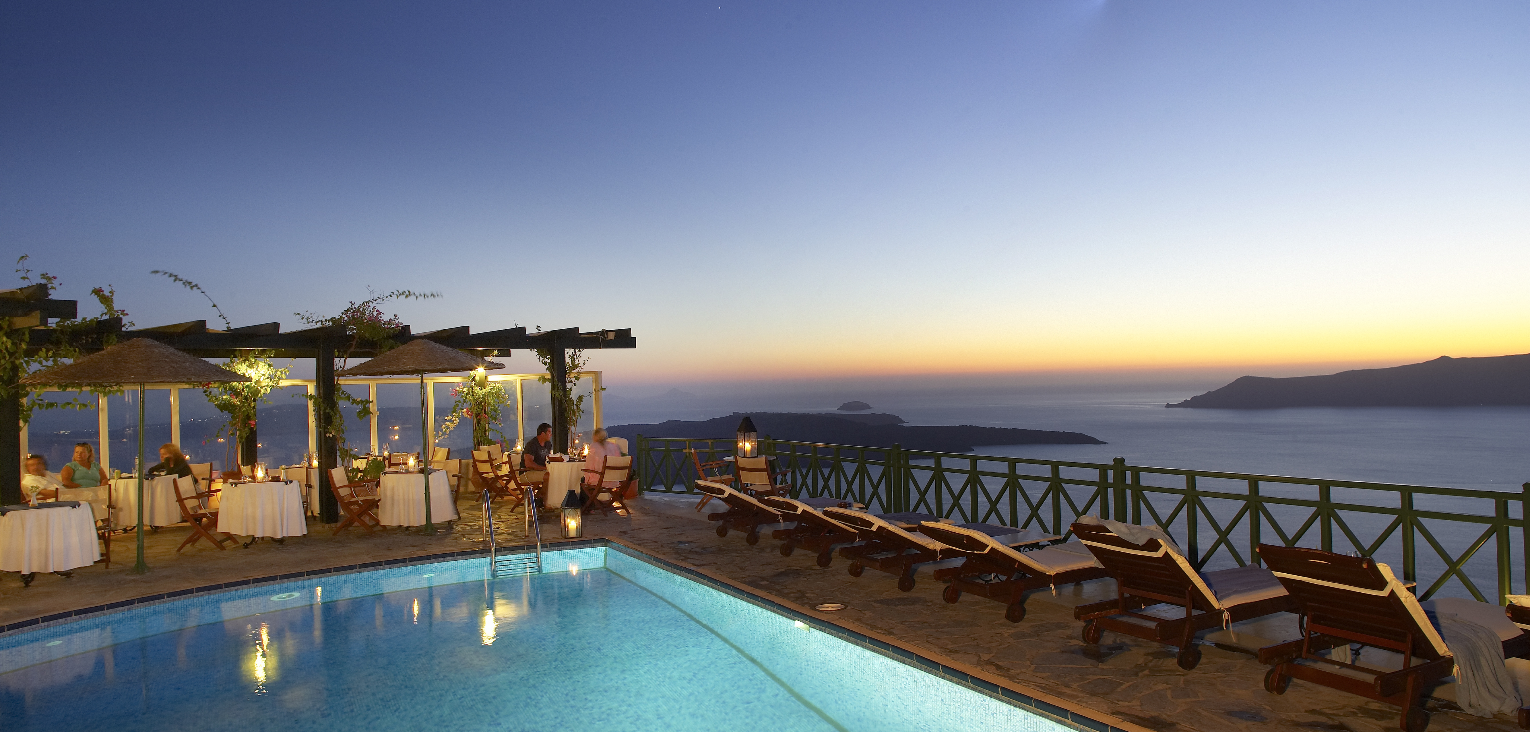 Imagine a quiet setting, a beautiful view, and a traditional settlement cascading down the Santorini caldera .. and all this just a few minutes away from the bustling island capital, Fira. Dana Villas offers luxurious suites and an open air swimming pool on the dramatic Santorini caldera.