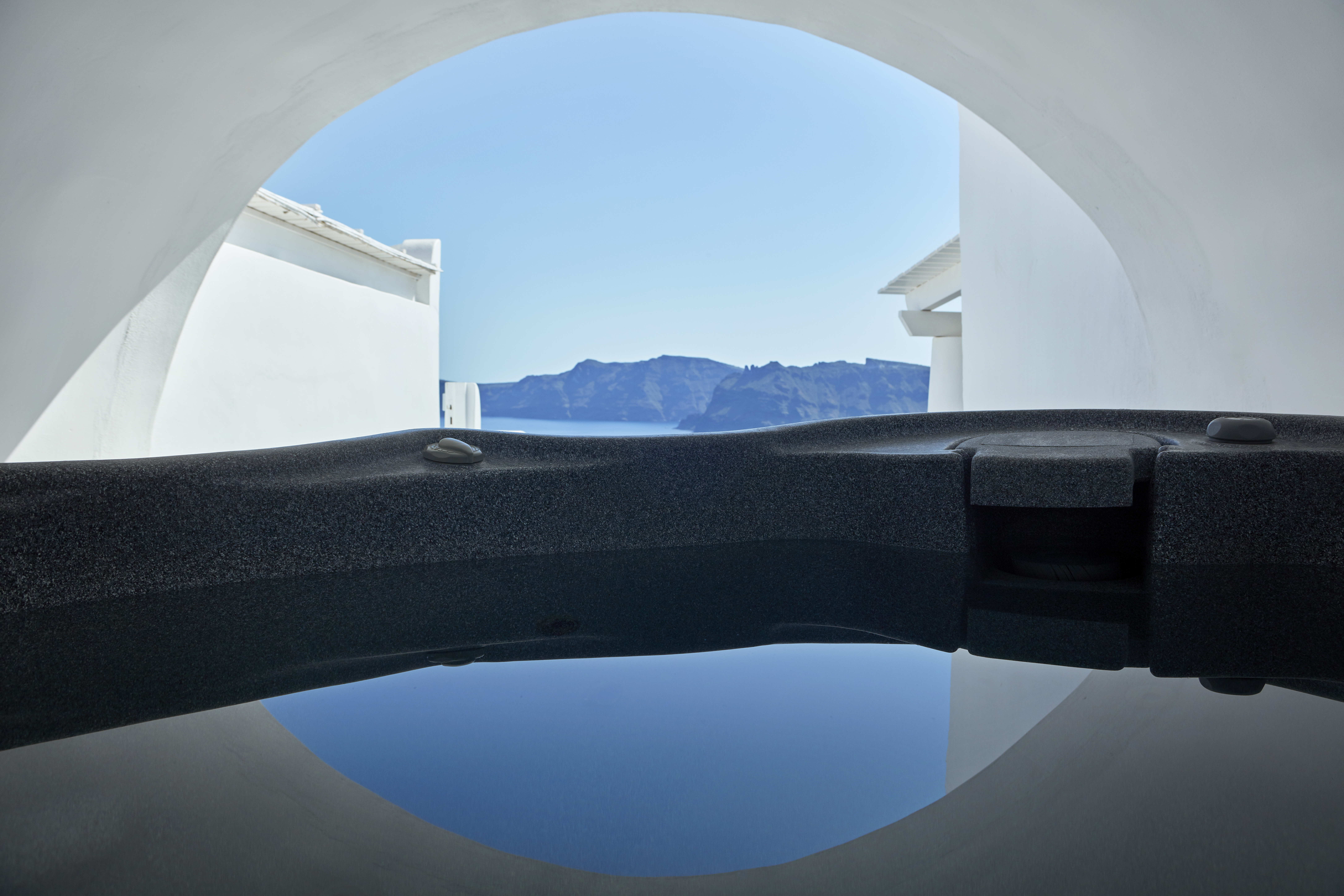 The ultimate in luxury is offered by the Kamikazes Suite – the expansive and luxurious living area featuring a fireplace opens out on to a panoramic terrace complete with outdoor Jacuzzi offering unrivalled views over the Caldera. The bathroom and adjoining dressing area are quite simply spectacular.
