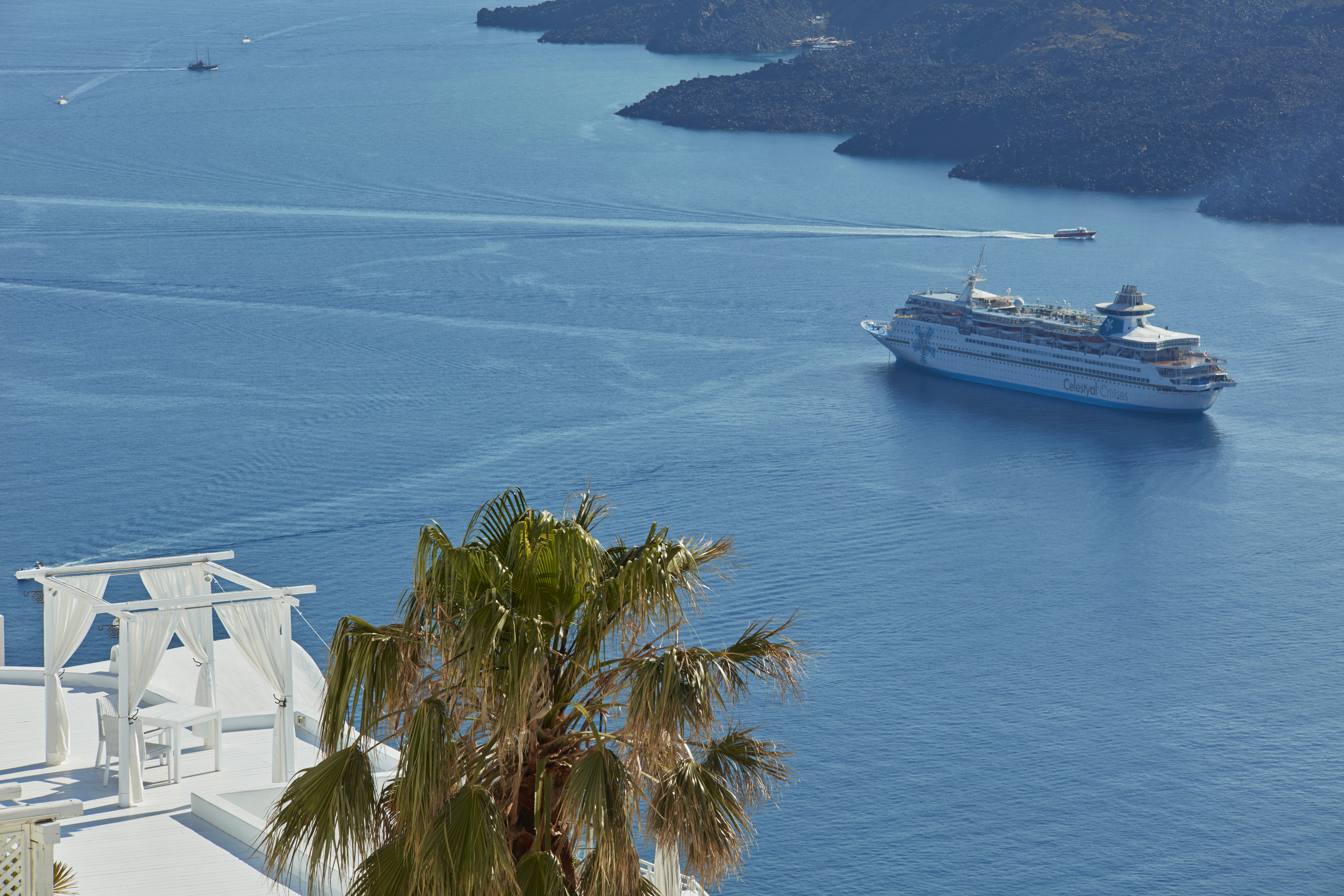 Superbly located and miraculously hovering almost 300m above the ocean and carved into the Cliffside, is the unique Sunrocks Hotel. This couples only property has some of the most stunning caldera views possible. Overlooking the caldera basin, discrete elegance and unsurpassed luxury characterize the genuine experience of hospitality. Sumptuous aesthetics abound – reflecting the luxurious but low key lifestyle where complete peace and tranquility combine with comfort and convenience.