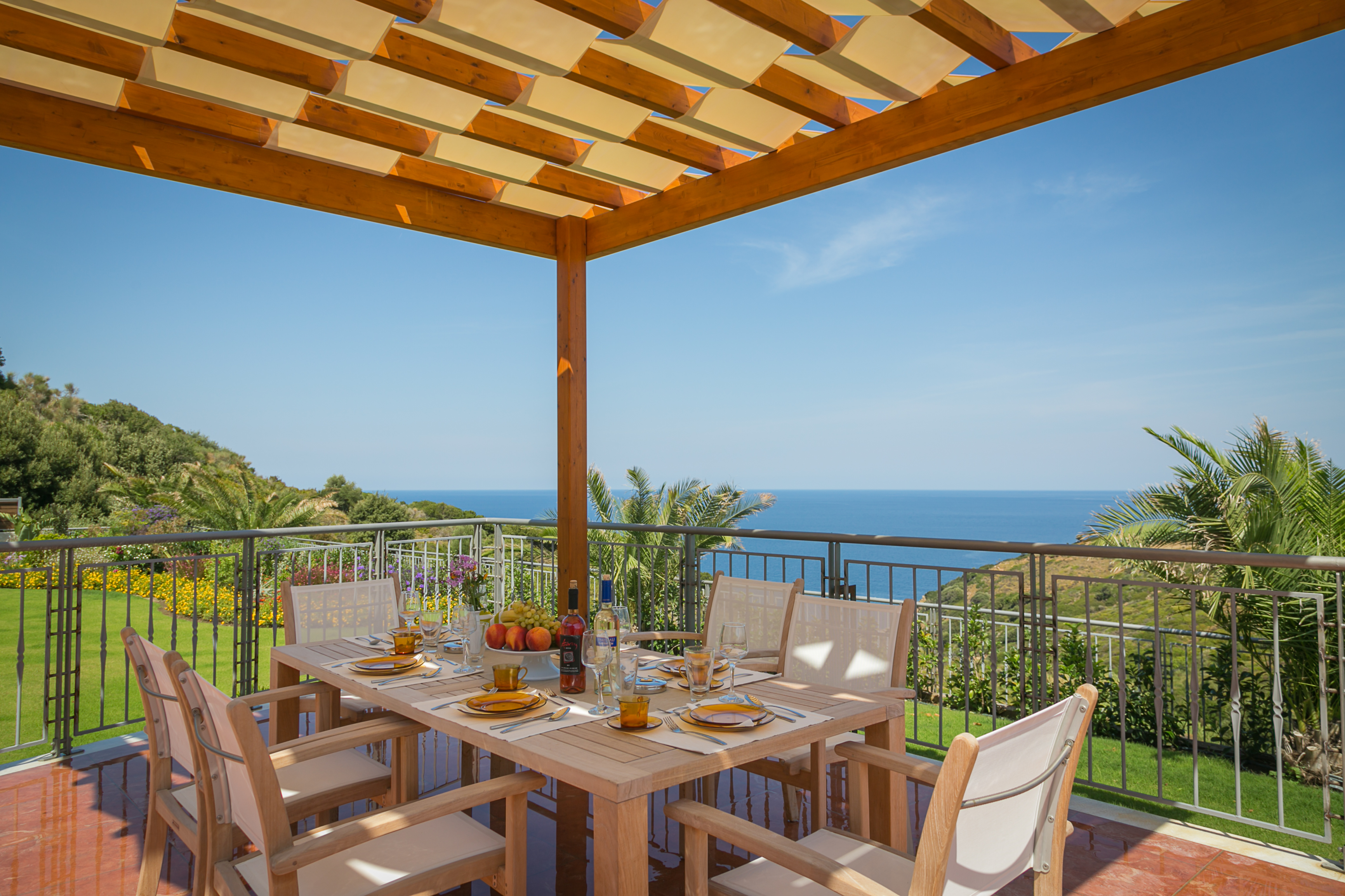 Toaster, oven, coffee maker, juicer, dishwasher, table-top grill, fridge, sun loungers & umbrellas, beach towels, flotation devices, satellite TV,washer/dryer, air conditioning / heating, safe, alarm system, hairdryer, toiletries, telephone, baby equipment, spacious veranda, outdoor dining area