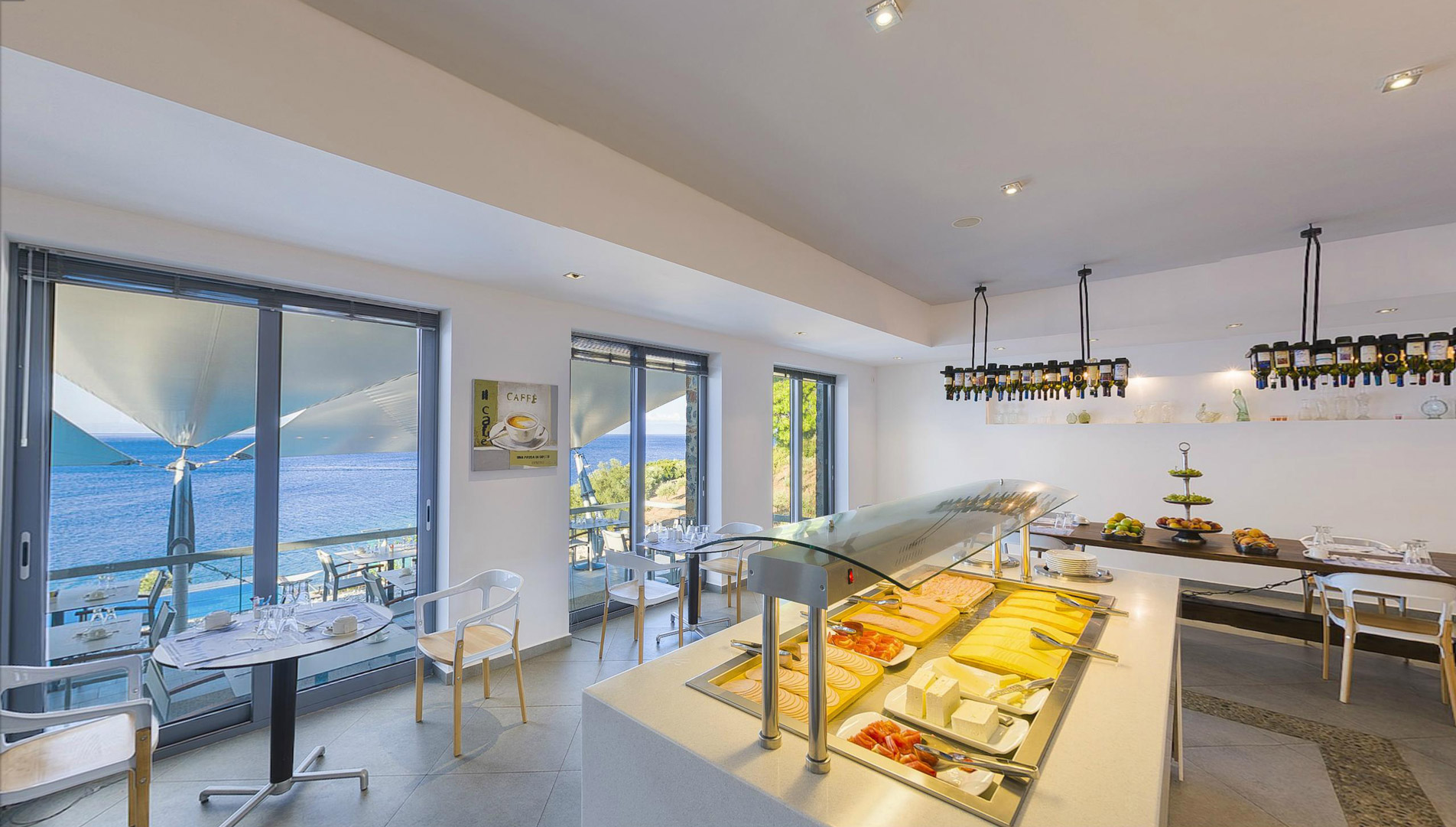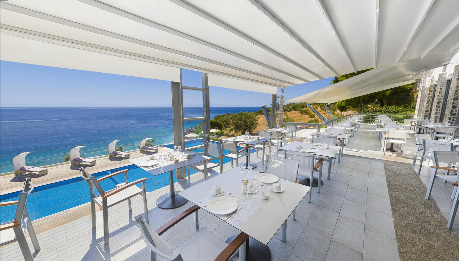 The world class Adrina Grill & Buffet Restaurant with its unique view of the open sea and the glorious pool