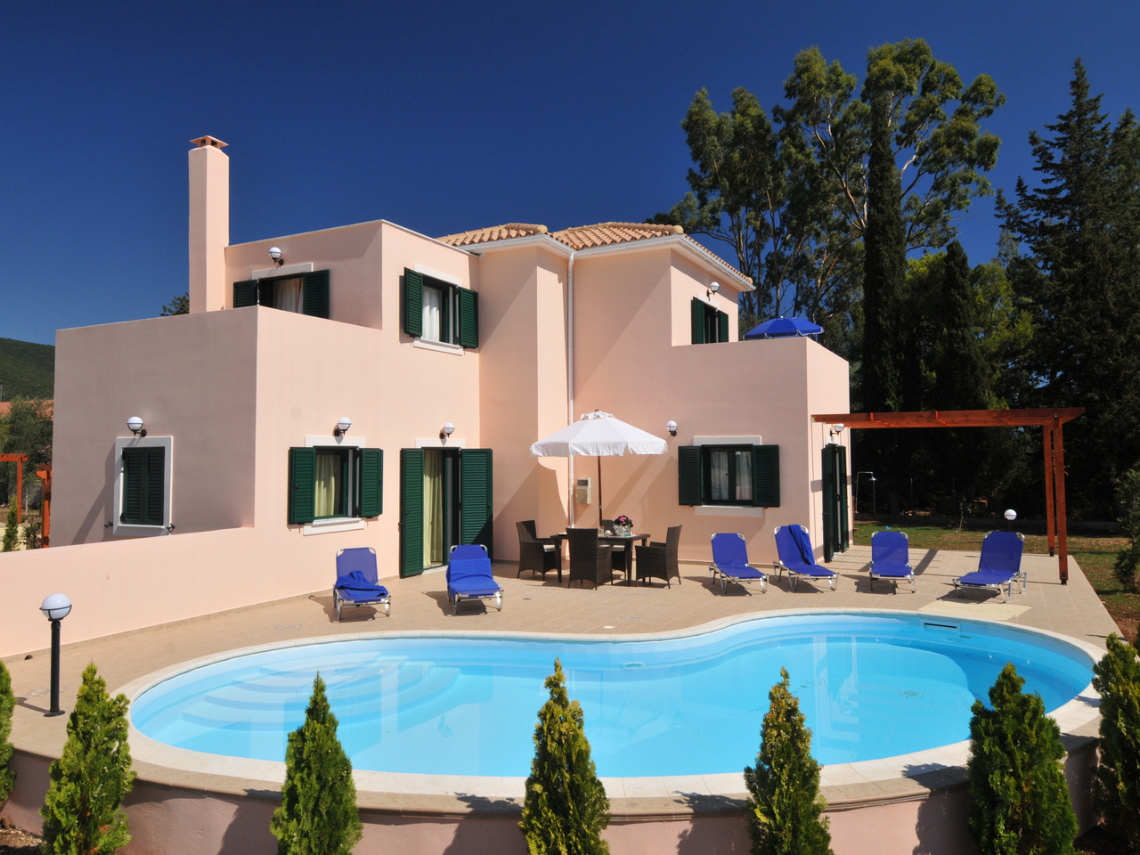 Externally each private pool is surrounded by an extensive patio area with sun loungers and a lovely additional furnished dining area for all those al fresco meals, a BBQ and external shower is also provided.
