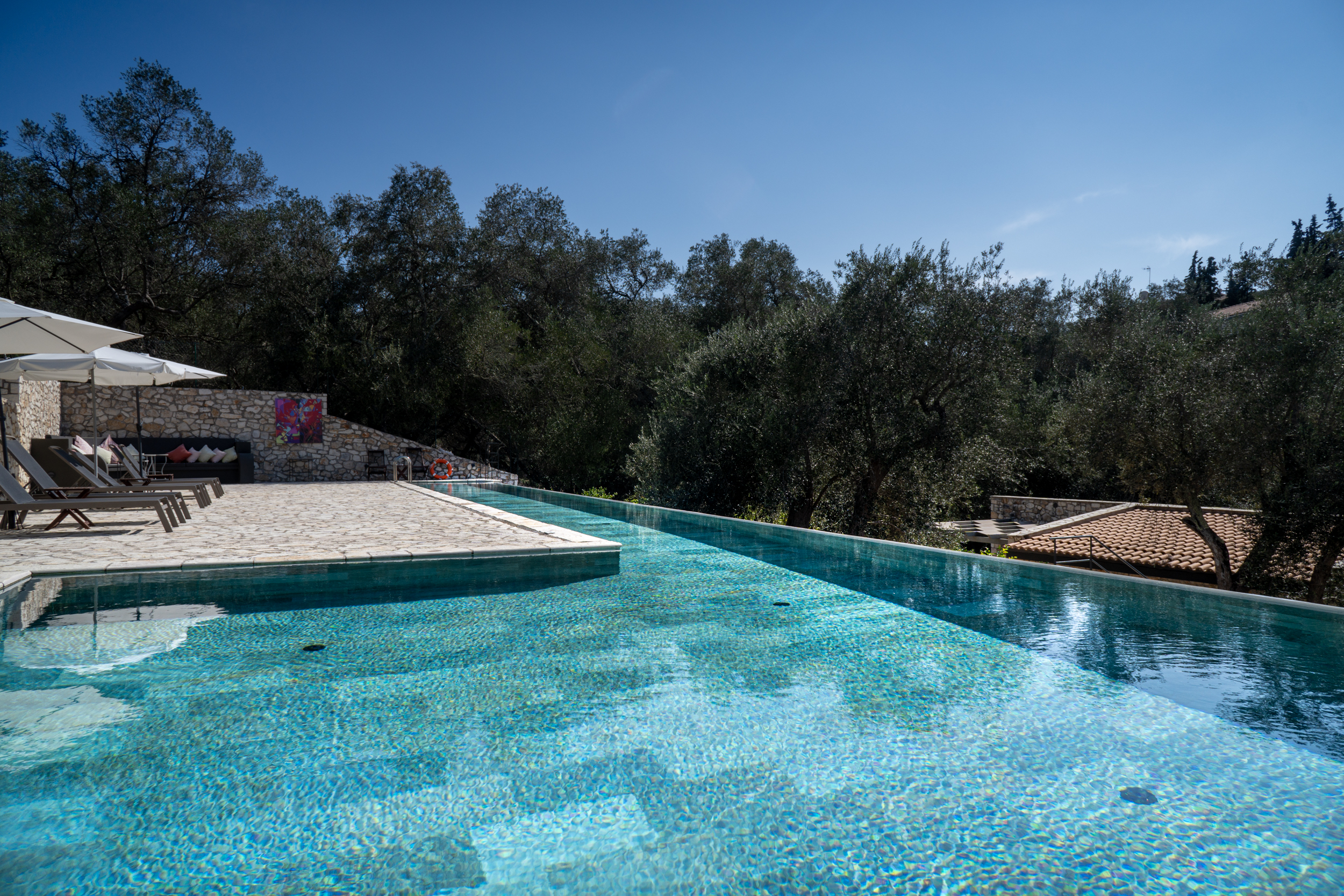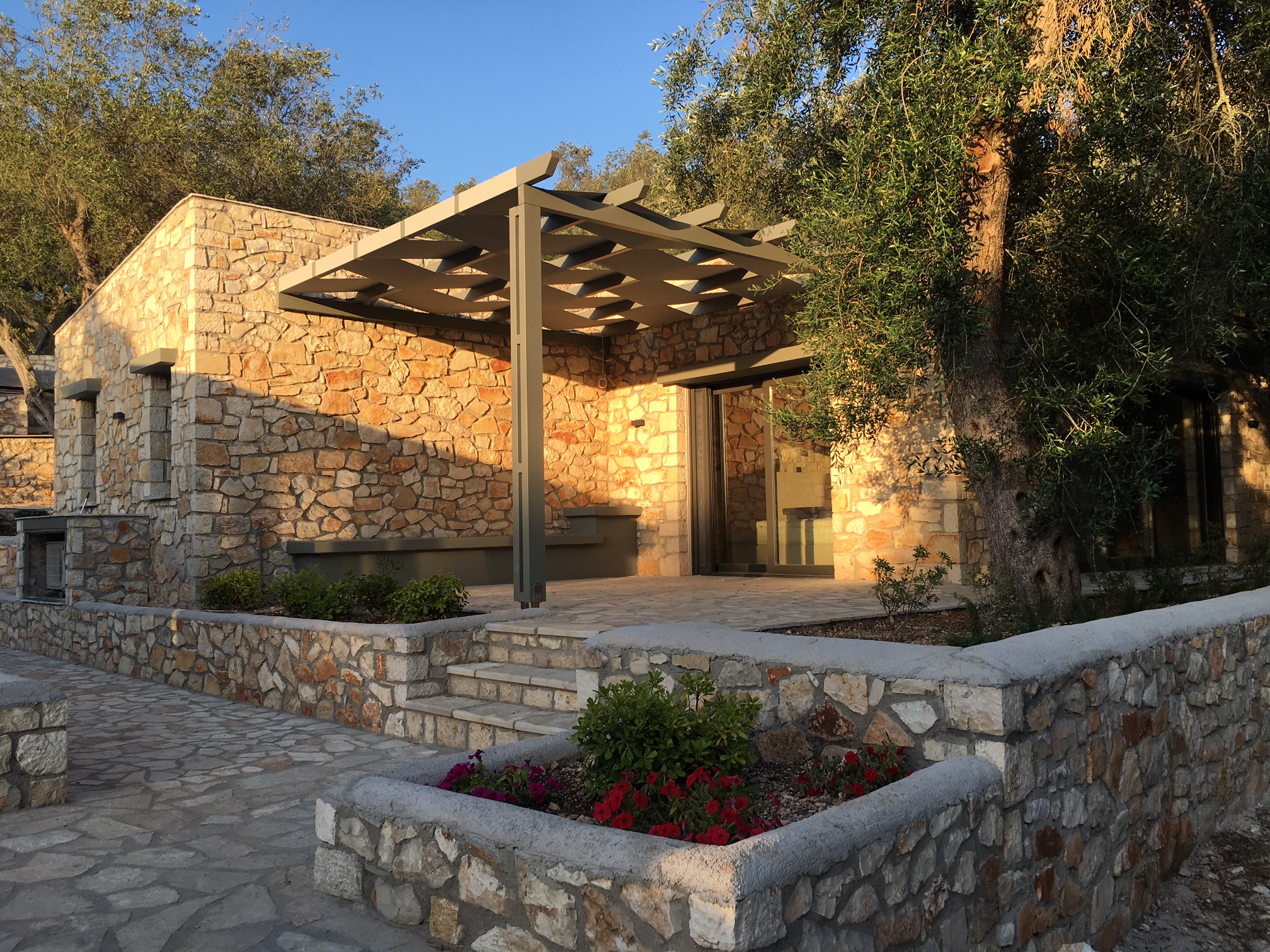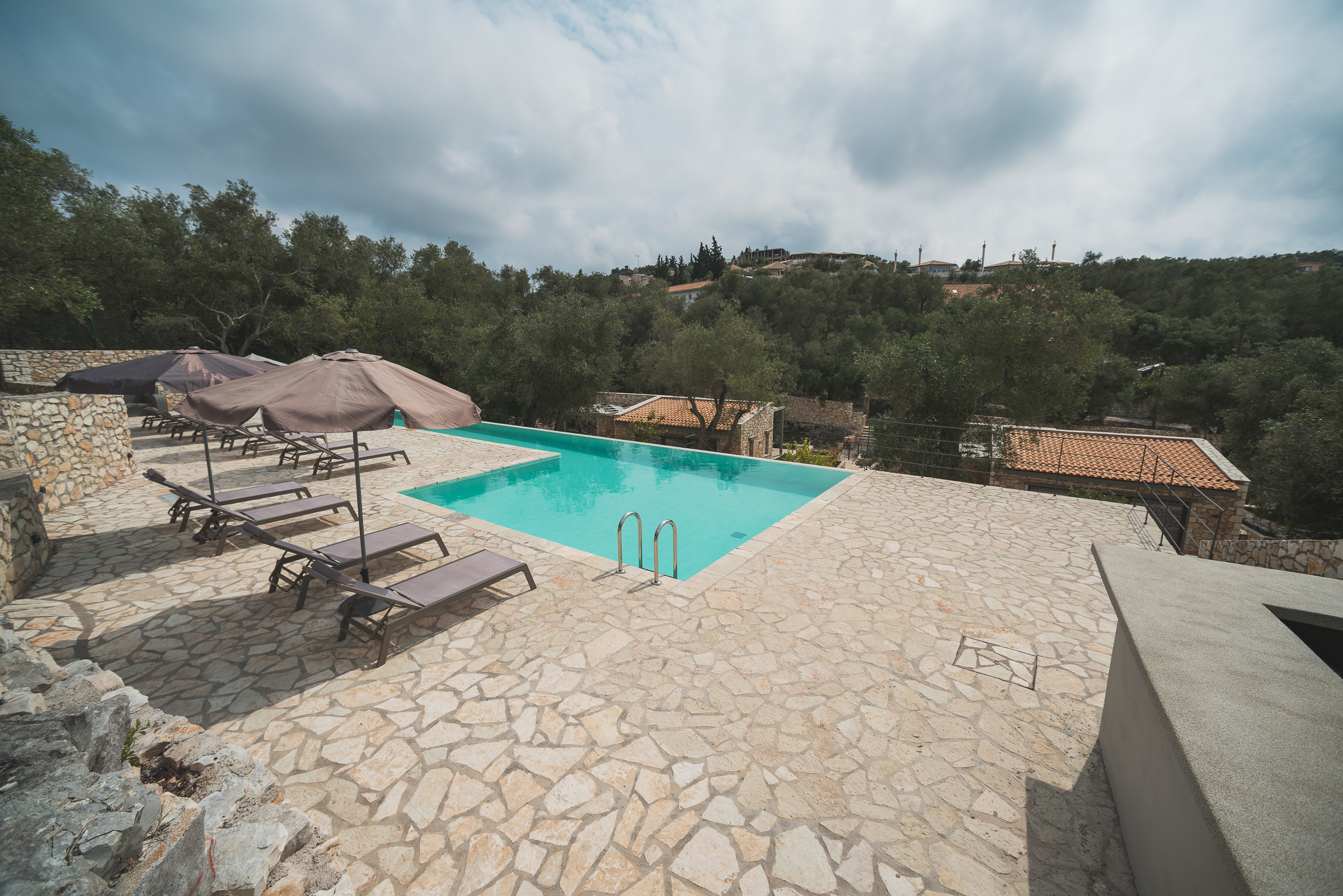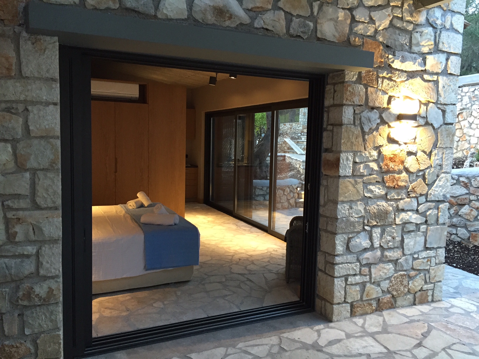 Paxoi Resort consists of 3 buildings housing 6 independent self-catering Suites. Each suite offers a separate bedroom, kitchenette, bathroom with shower, a flat-screen TV with satellite channels, Wi-Fi, air conditioning and ceiling fans. The interior is cleverly constructed with stone walls and floors throughout making the suites cool and inviting. Floor to ceiling sliding windows open up onto the private patio area.