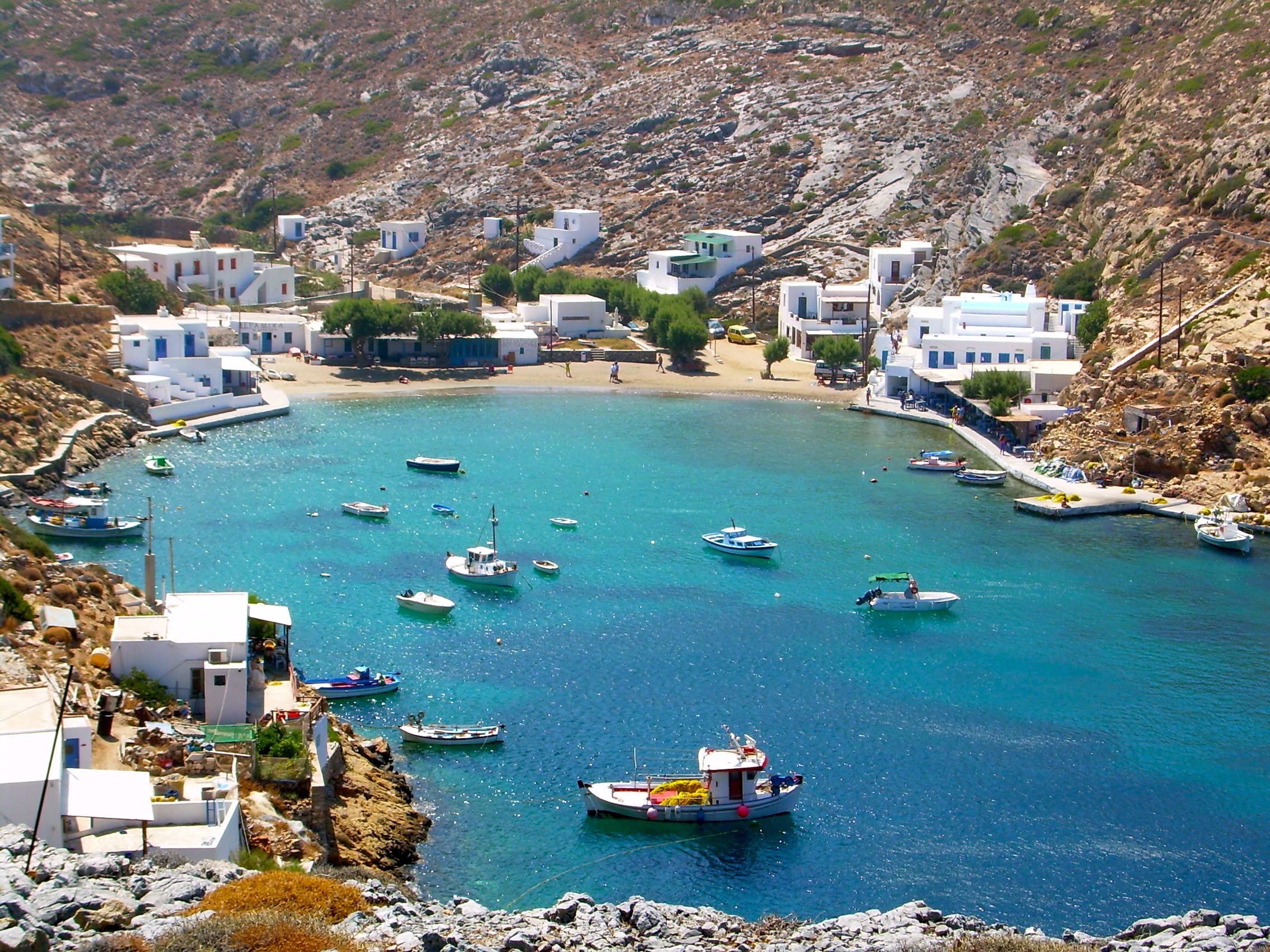 Sifnos – the island of Apollo is a mountainous island full of olive groves, almond trees, fragrant oleander and juniper. Old walking paths link the picturesque white-washed villages making it an ideal destination to explore on foot. Surprisingly green for the Cyclades, Sifnos is popular with Greeks as well as tourists – but much less crowded than some other islands. The most striking feature about Sifnos is the many churches – there’s one for each day of the year and most only open on their special day. Chrysopigi near Faros in the south of the island is among the most famous.