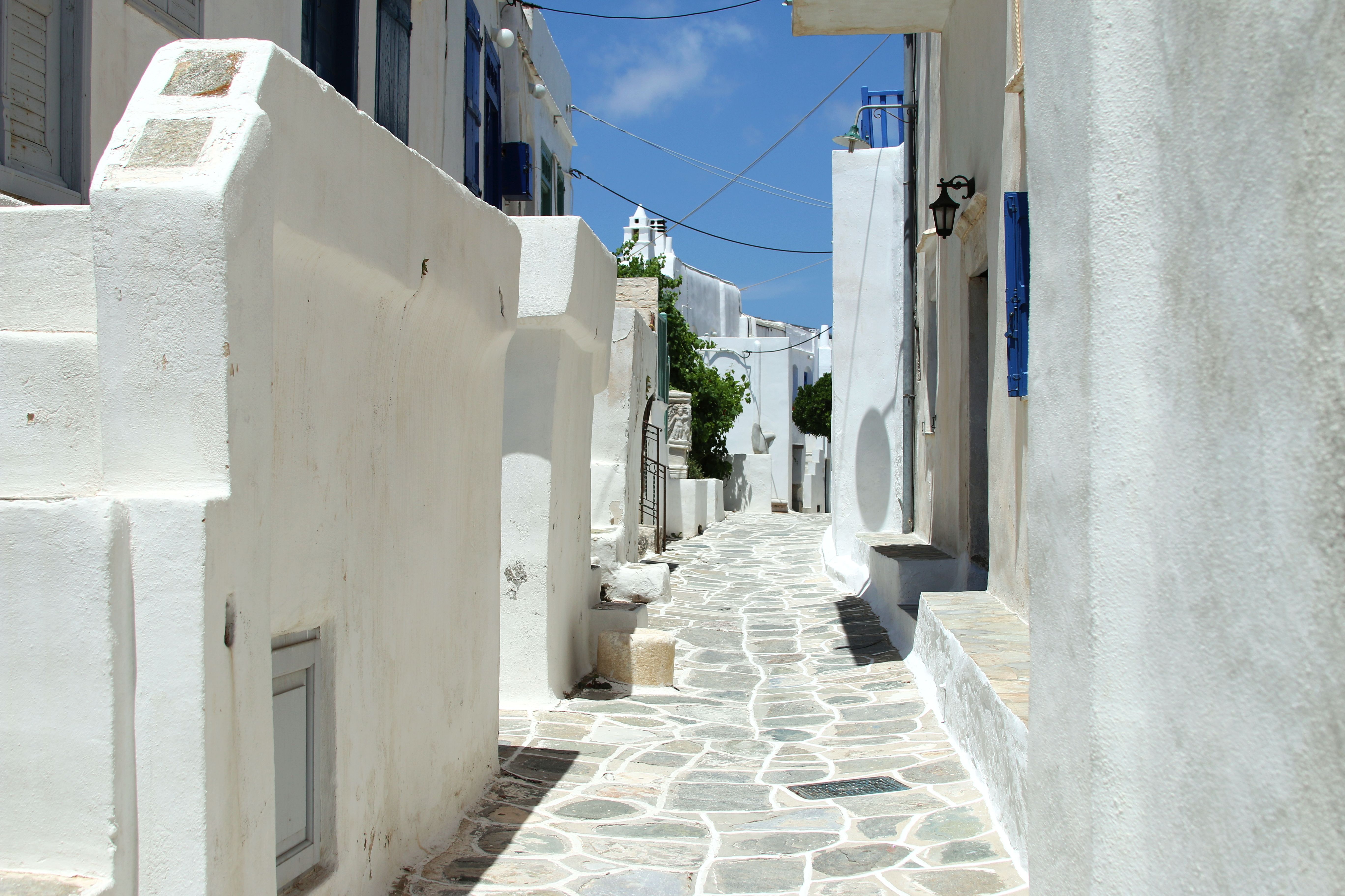 The island has a rich history and is home to several ancient ruins, including the Temple of Apollo, as well as monasteries that reflect its spiritual heritage. The island boasts over 350 churches and chapels, making it a notable destination for those interested in religious history. The island's culture is also reflected in its distinctive architecture, with simple whitewashed houses, churches with blue domes, and windmills perched on hilltops.
