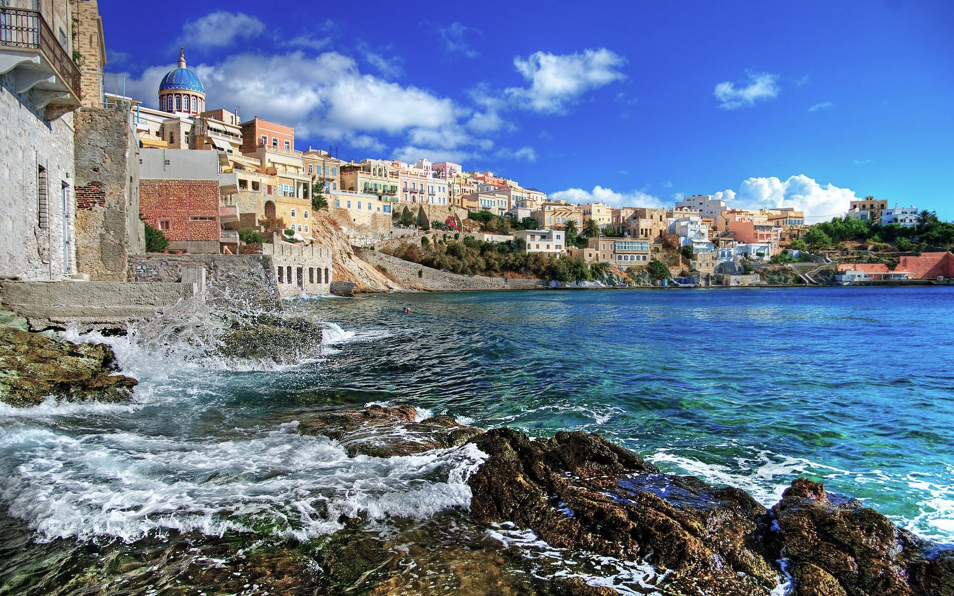 Syros boasts some of the Cyclades' most beautiful beaches, including Galissas, Kini, Azolimnos, Vari, Megas Gialos, and Foinikas, all surrounded by charming settlements that offer accommodations and various services.