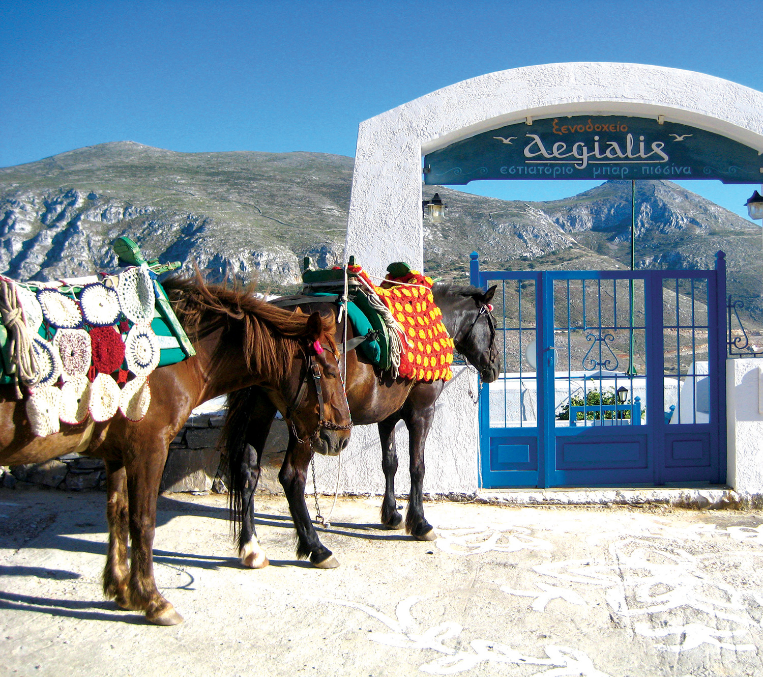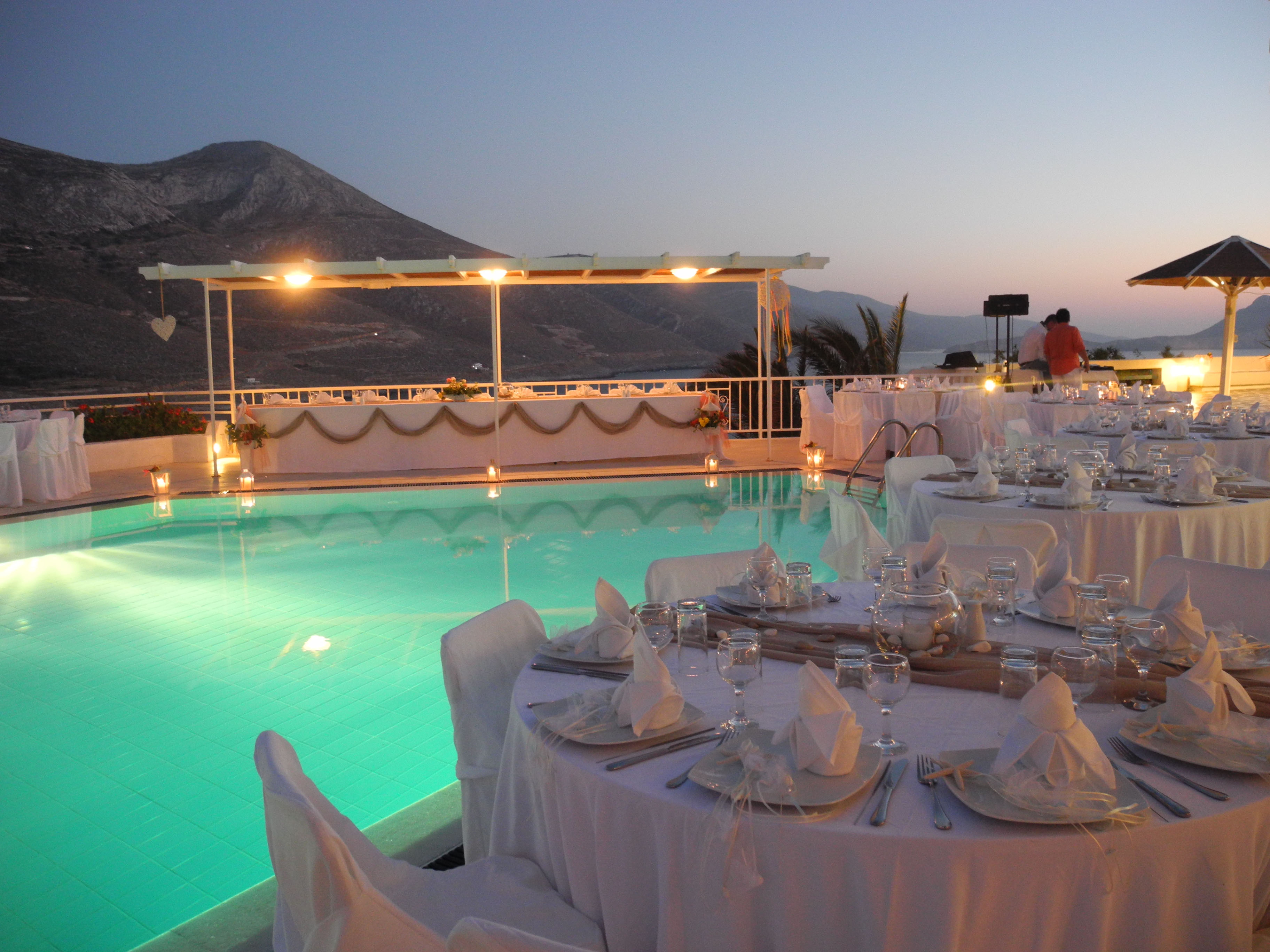 Dining options at the hotel include a daily homemade breakfast with freshly made jams, croissants, and pastries. The Ambrosia Restaurant specializes in Amorgian cuisine, showcasing locally produced organic ingredients and Greek wines, all while boasting a large terrace that overlooks the beautiful gulf of Aegiali and the Aegean Sea. For lighter fare, the Corte Wet Café offers snacks, while Nick’s Pizza ignites cravings with its spaghetti, salads, and pizzas.