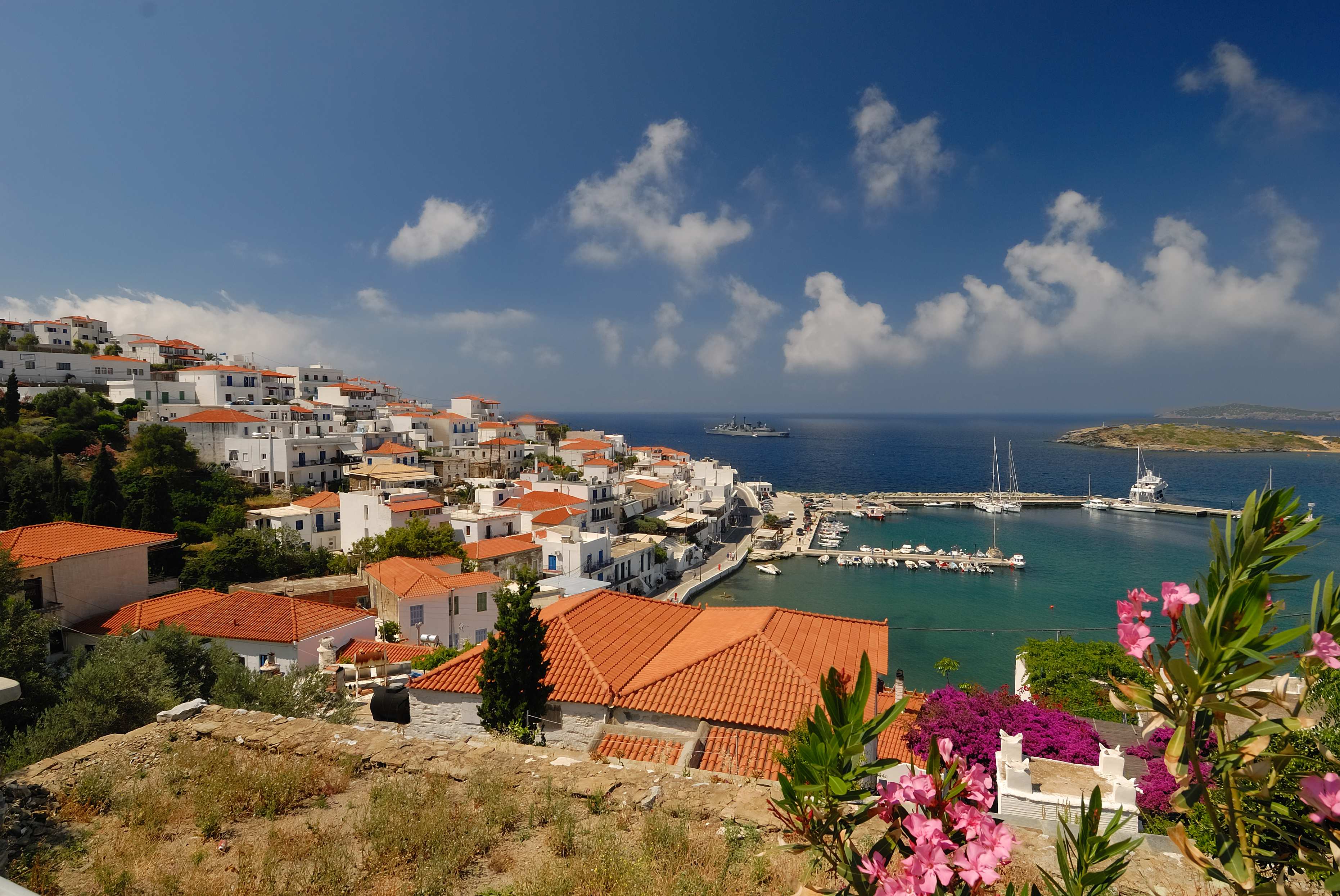 Just 90 minutes from the Greek mainland by fast ferry, Andros is a true gem among the Cycladic islands. Unlike its more famous neighbours, Andros blends rich naval heritage with lush landscapes, rugged coastlines, and pristine beaches. It offers a unique mix of natural beauty, culture, and tradition — perfect for travellers seeking authenticity and tranquillity.