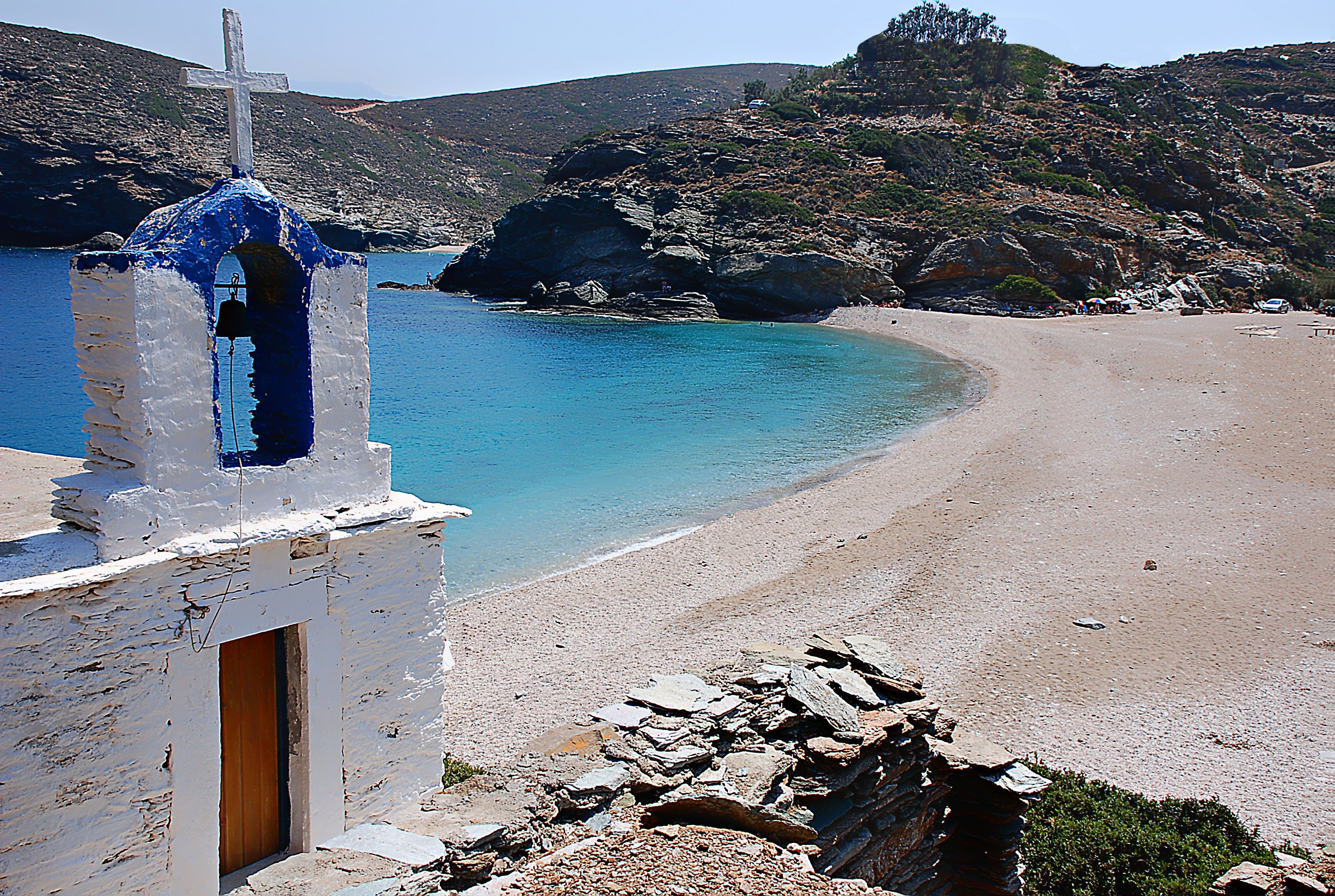 Andros is a paradise for walkers and nature lovers. Explore rolling hills, fertile valleys, and over 70 traditional villages. Discover secluded monasteries, scenic hiking trails, and a coastline filled with sandy crescent bays and hidden coves — all framed by the crystal-clear turquoise waters of the Aegean Sea.