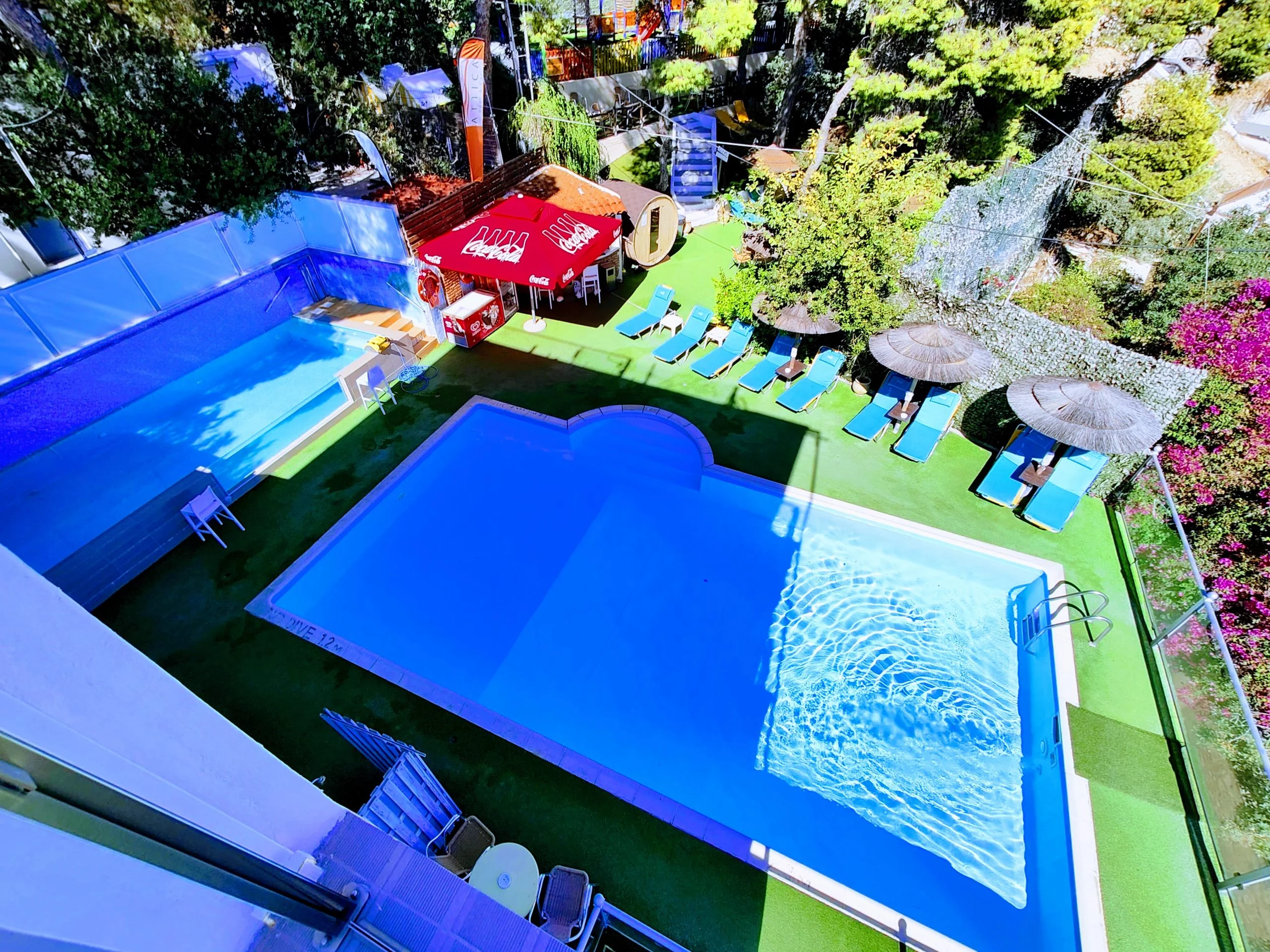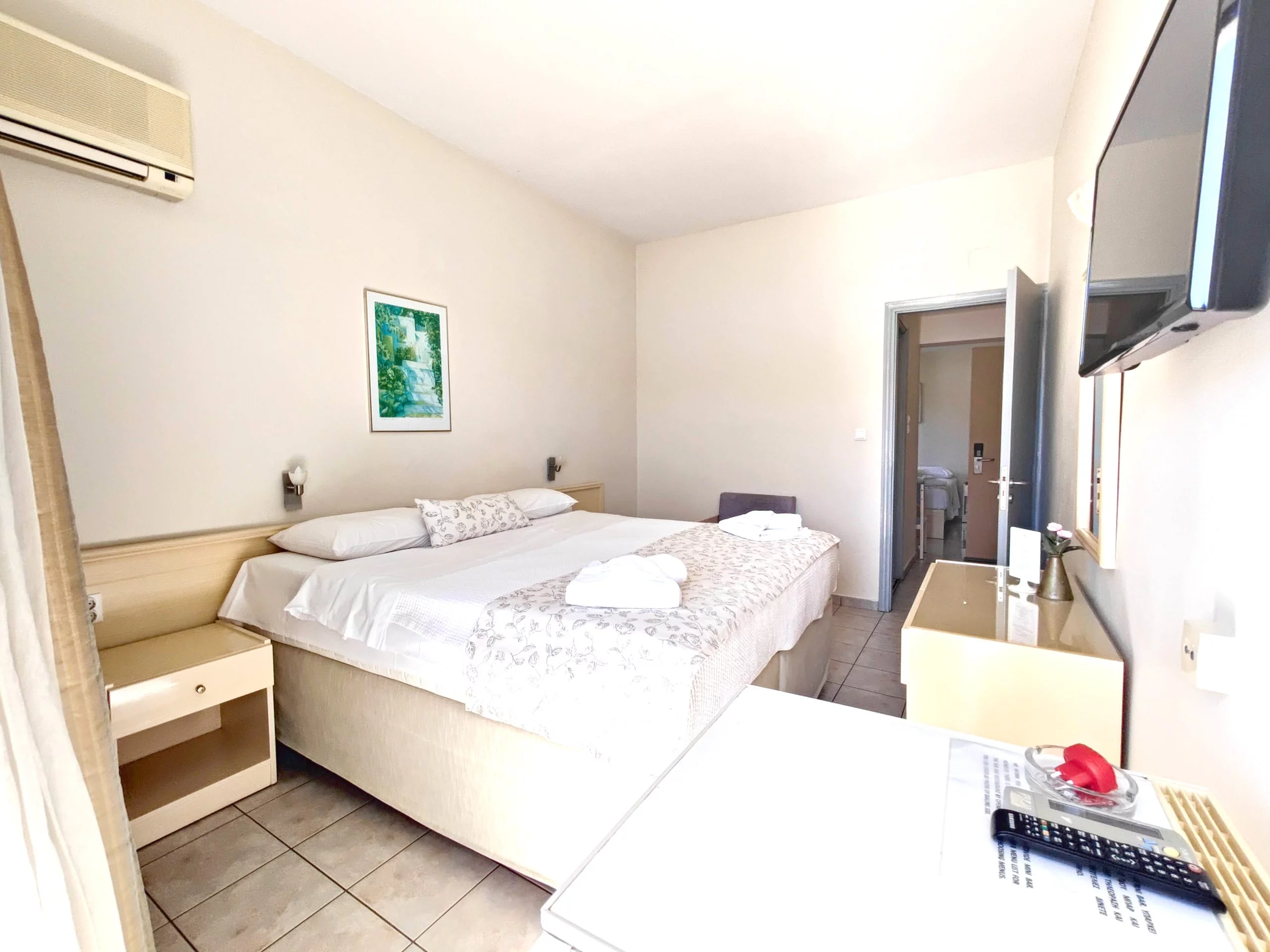 Hosting comfortable and well-equipped rooms with breathtaking sea views, the hotel provides a range of accommodation options, including standard double and twin rooms, superior rooms on the upper floors, and luxurious executive rooms with Jacuzzi baths. All rooms feature modern amenities such as air conditioning, a safety deposit box, a fridge, COCOMAT mattresses for restful sleep, and a balcony with either a forest or sea view.
