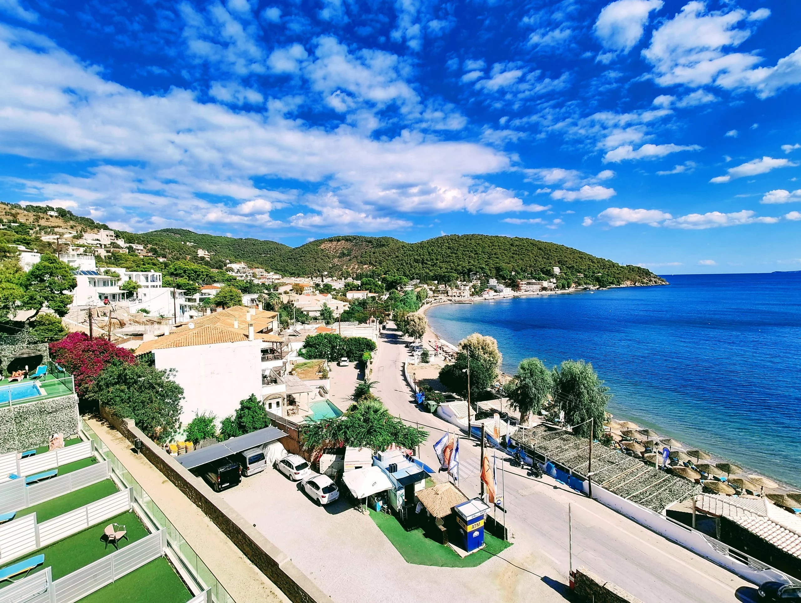 Every weekend, the hotel provides entertainment with a live Greek band and traditional dancing, hosting a taste of local culture. For convenience, restaurants, cafes, and a gym are located just 100 meters away, and the bus to Poros Port stops at the hotel's entrance. The nearby beach offers a beach bar and a range of water sports, making the New Aegli Hotel an ideal base to explore both the island of Poros and the mainland.