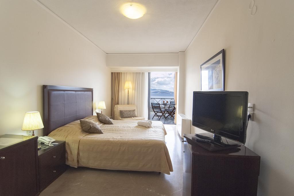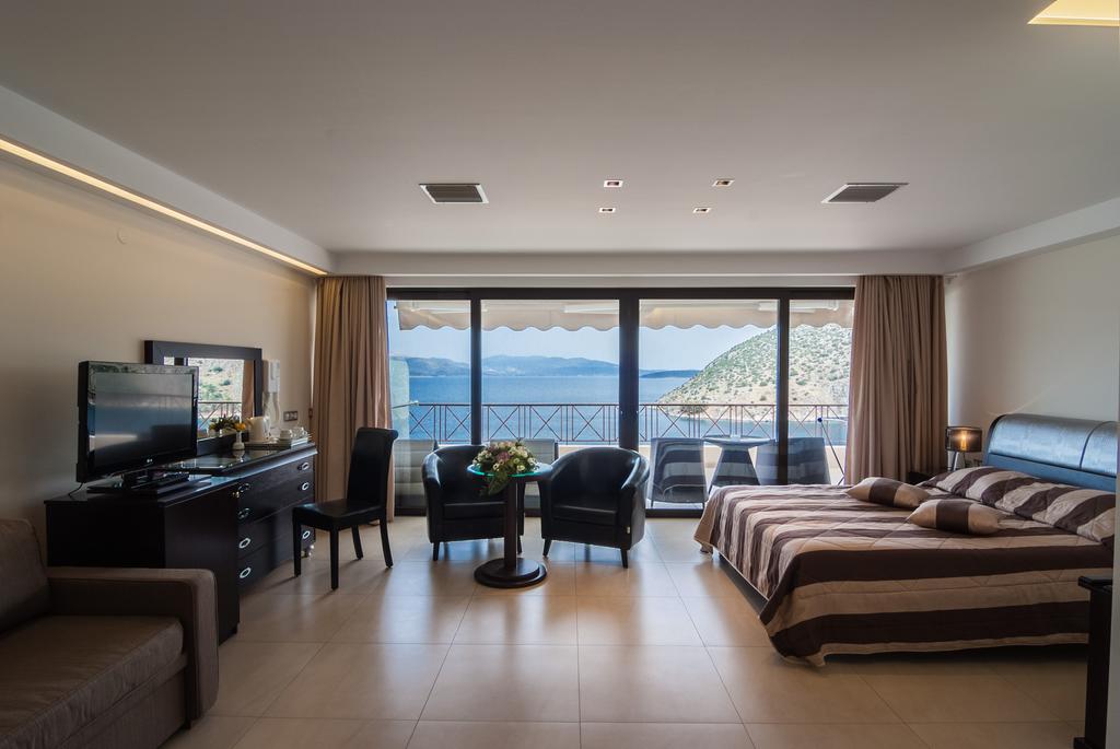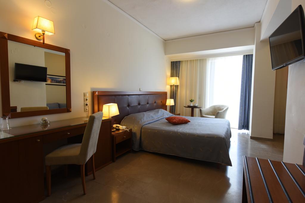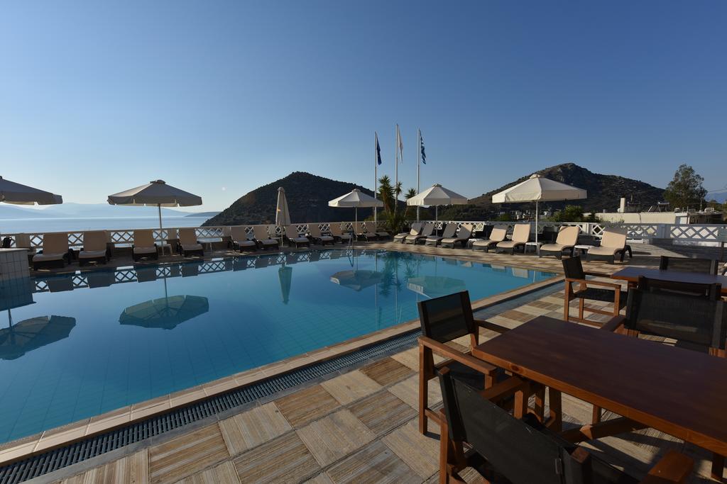 Breakfast is served each morning in the hotel restaurant which is also available for evening dining while allowing guests to admire the views over the bay. Meals are buffet style with Greek specialities also offered. The restaurant also offers an extensive international wine list. After dinner, cocktails are available from the poolside bar.