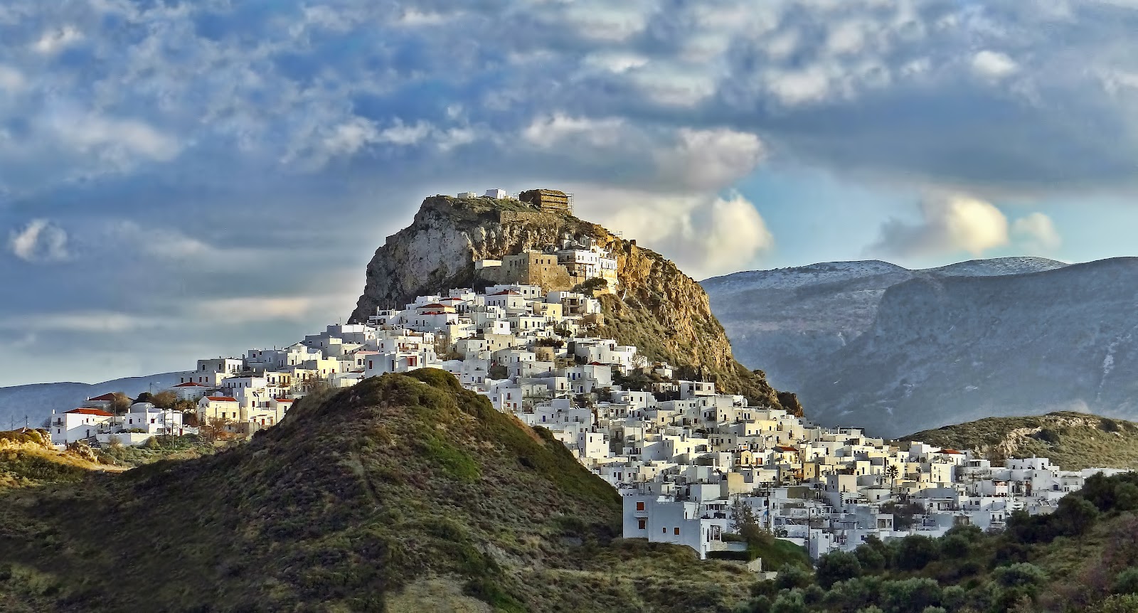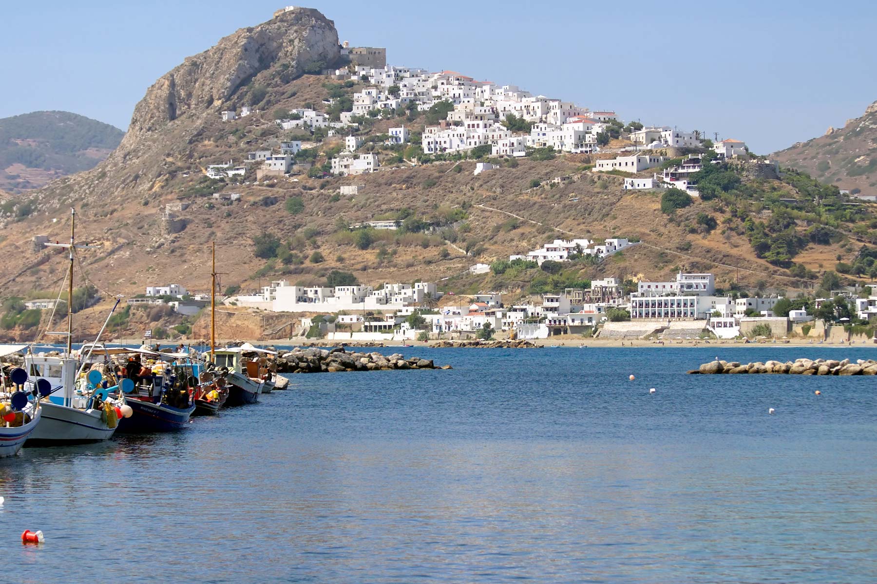 Most of the 3000 or so permenant inhabitants live in or around Chora and are engaged mainly in either farming or fishing. The island has 2 distinct regions – the green and fertile north and the more barren, rocky south.