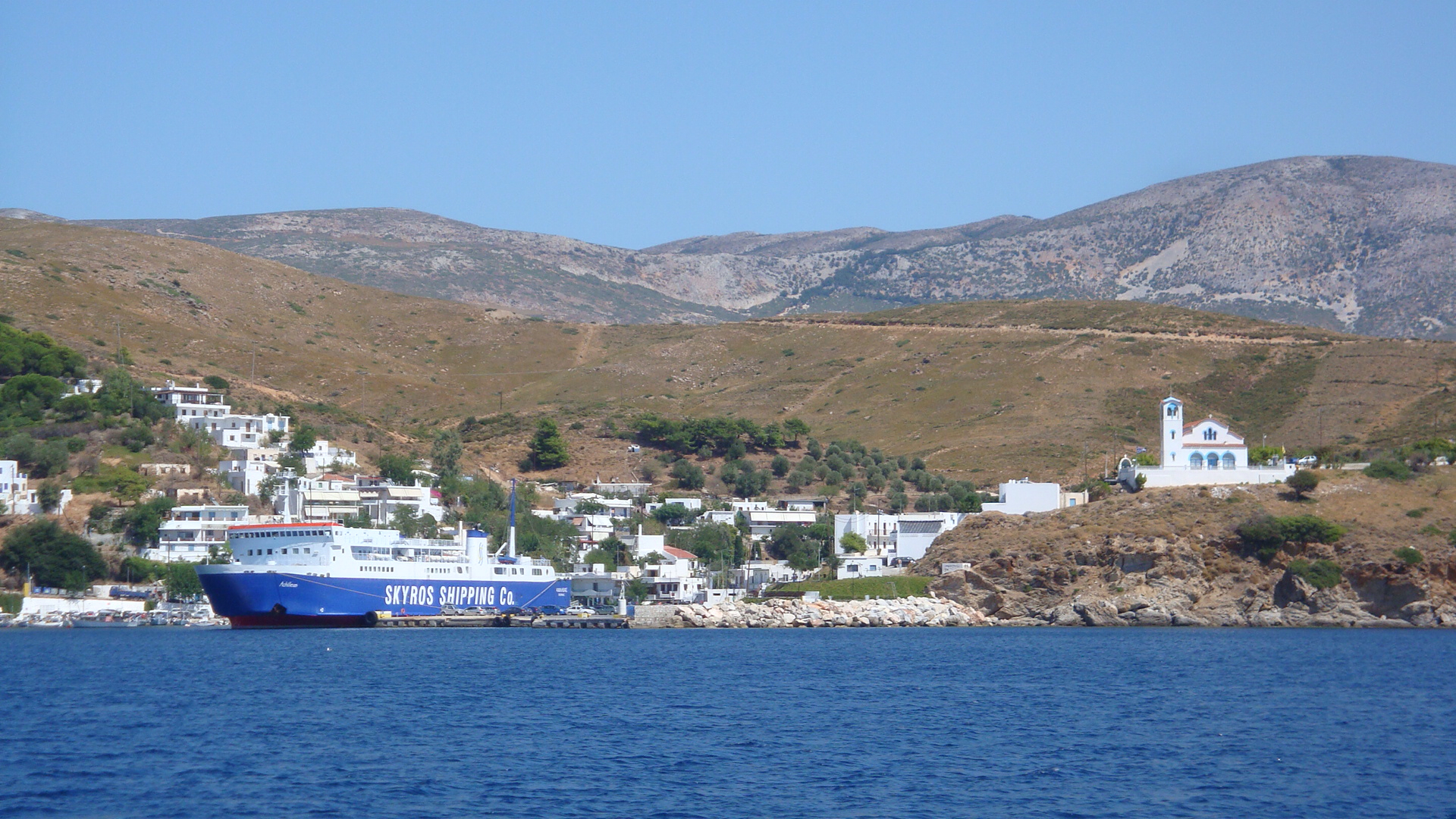 Access to Skyros is normally via the internal flights from Athens which operate 3-4 times per week, or sometimes via Thessaloniki (2-3 flights per week) which would require an overnight stop in Athens at least one way. There is a ferry from Kymi on Evia to Linaria on Syros, with very occasional connections to Skopelos or Alonissos.