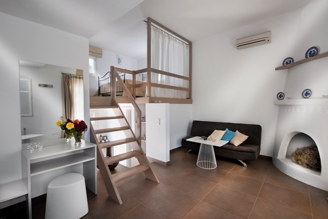 The Nefeli Hotel offers standard, superior, and executive rooms. Most offer views over Chora or the hotel pool area. Superior rooms have one balcony and executive rooms have two. Studios and apartments for up to 4 people are also available. Some rooms have private roof terraces with built in seating areas offering stunning views over Chora up to the castle. All rooms offer kingsize beds, shower or bathroom (some with Jacuzzi bath), TV, telephone, safety deposit box, air-conditioning, and some rooms also offer fireplaces. Some rooms are suitable for up to 4 guests.