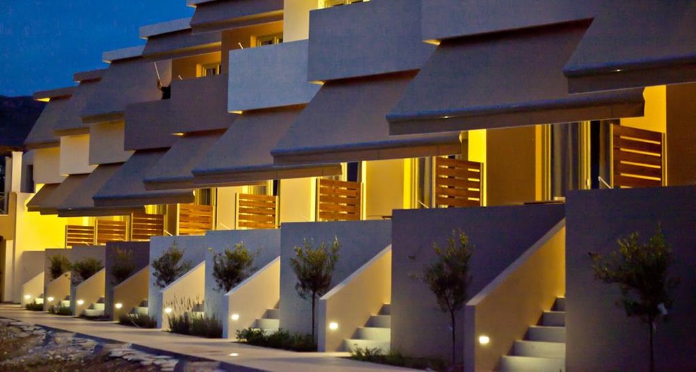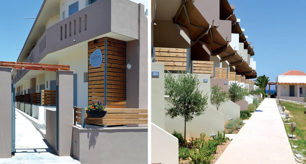 The hotel is set within an expansive open space of 3,500 m², blessed with unobstructed sea views. The two-storey building, embodying the essence of 70s architecture, has been fully renovated to create 22 modern, comfortable studios that evoke the feeling of a private home. Each studio has been thoughtfully designed to offer simplicity and elegance, providing an inviting atmosphere for relaxation.