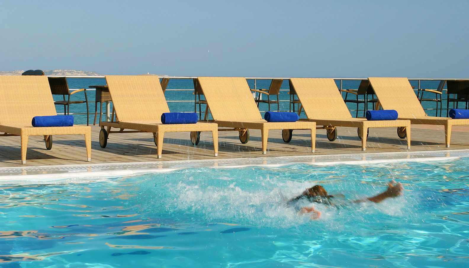 For those who prefer swimming in tranquil pool waters, the hotel offers three outdoor freshwater pools: two for adults and one for children. All pools feature breathtaking views of the Aegean Sea and are conveniently located near pool bars for refreshing breaks. The central pool is the largest and is situated close to the Sea Velvet Bar and Thalassa Restaurant. The second adult pool and the children's pool are located in the recently added Erytha Exclusive building, adjacent to the Nefeli Bar.