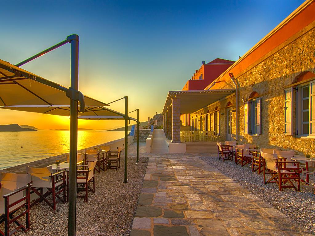 Housed in an imposing historical building that was once used for the storage of the natural sponges this area of the Dodecanese is famous for, the Aretanassa Hotel is now a delightful boutique style hotel. Just 19 rooms all have wonderful sea views and the staff have one singular mission – to ensure that all guests have their expectations of Halki 100% fulfilled.