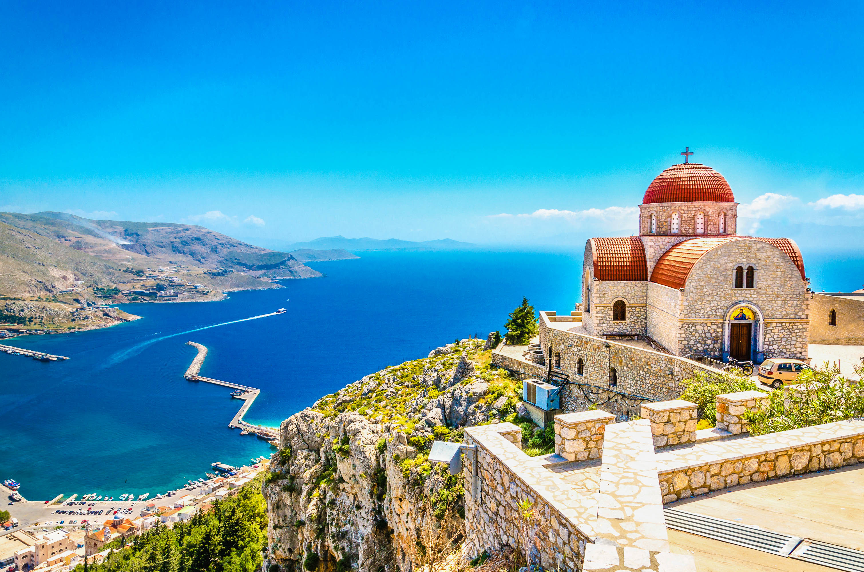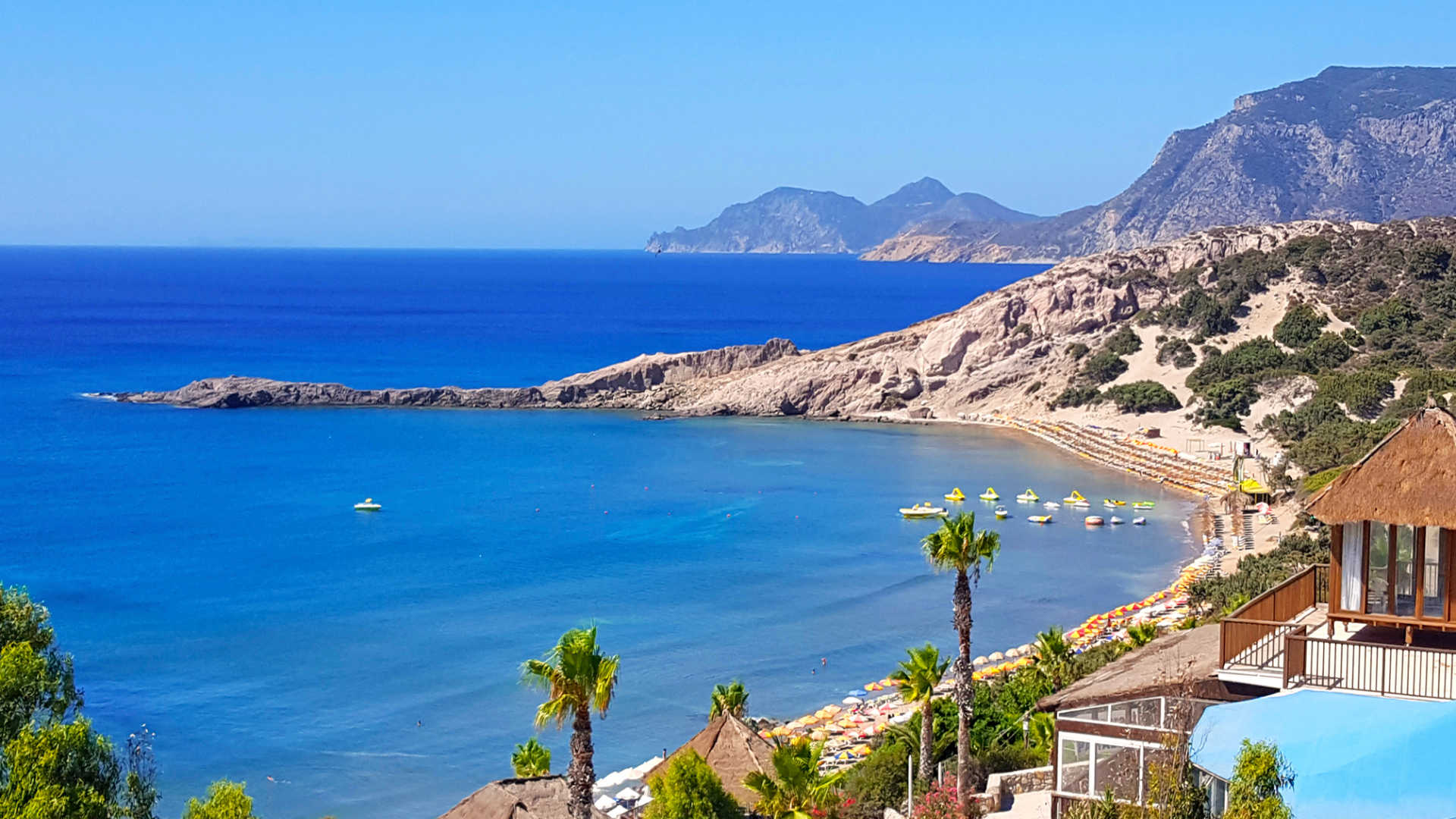 This harbor town is dominated by the 15th-century Neratzia Castle. With a coastline that unravels for over 290 kilometres, Kos has more than its fair share of beaches. They come in all shapes and sizes, from golden swathes backed by beach bars, to hidden bays and little-known coves. The island’s good looks don’t end with its shores, either. Inland, whitewashed villages spill down the hillsides and wild flowers blanket the fields. Then there’s Mount Dikeos, whose slopes are peppered with pine forests and castles.