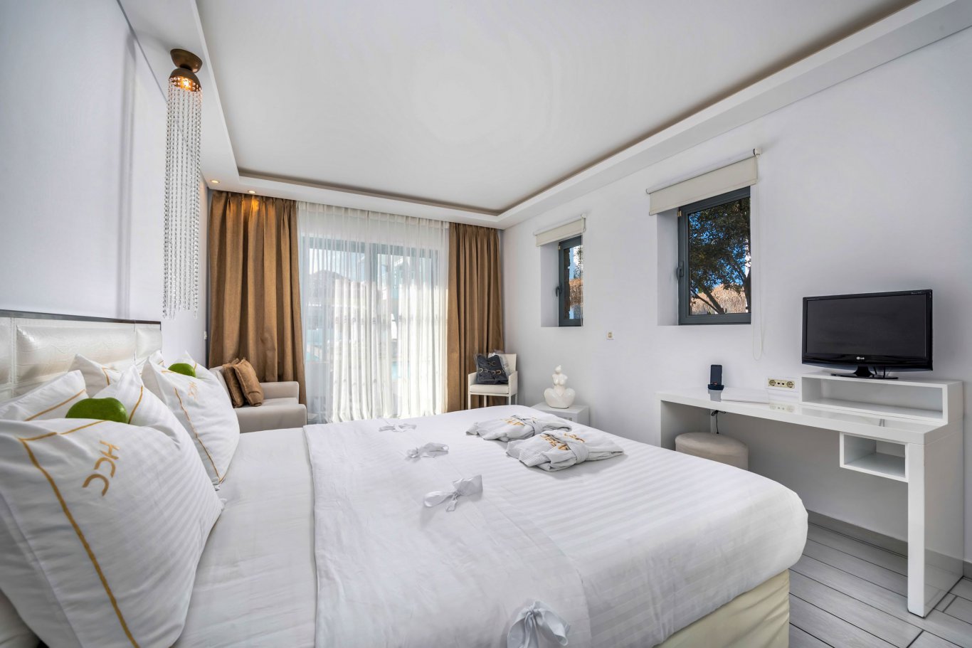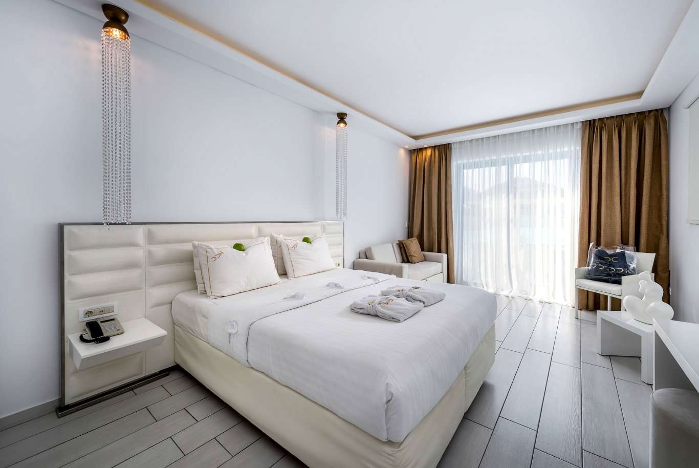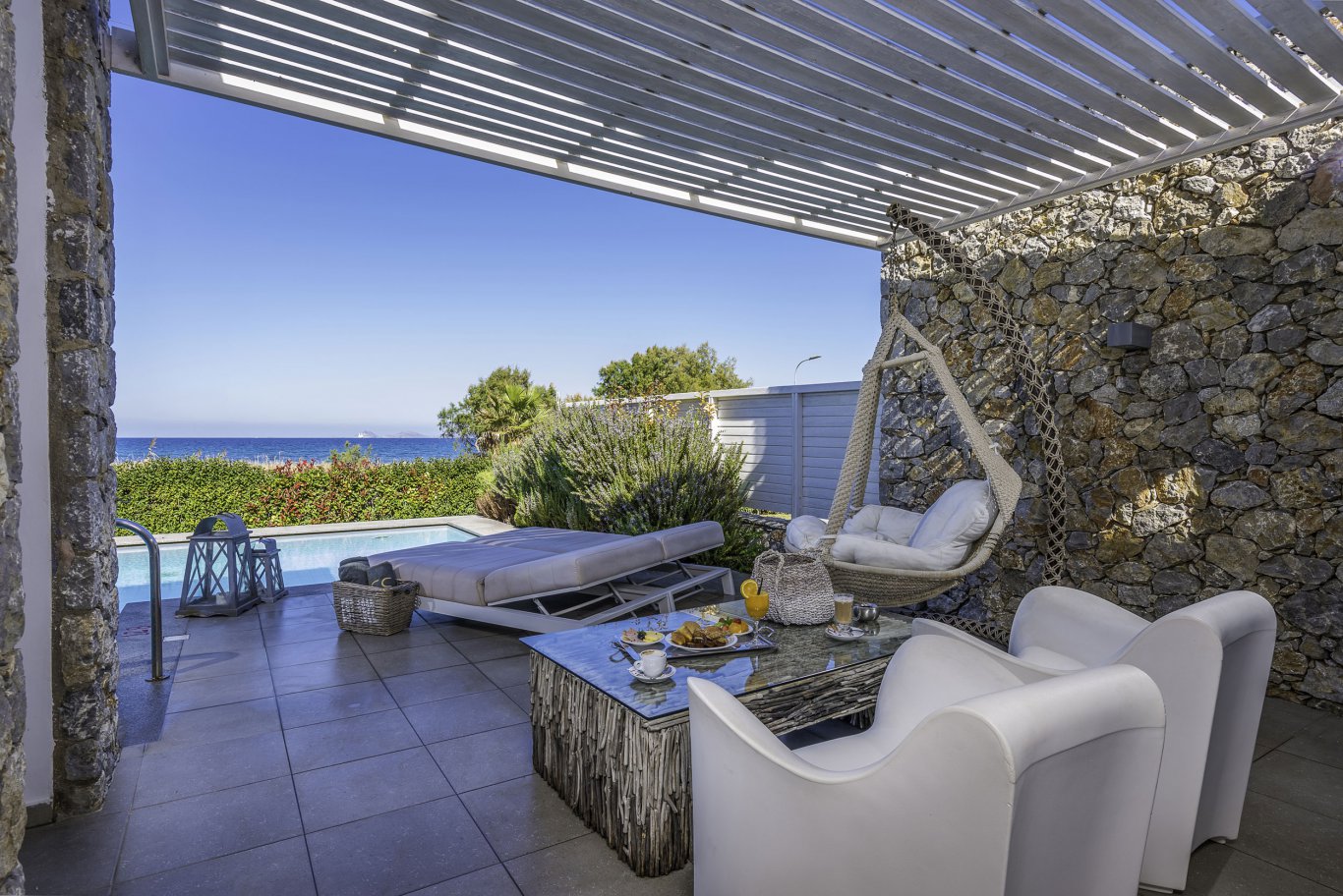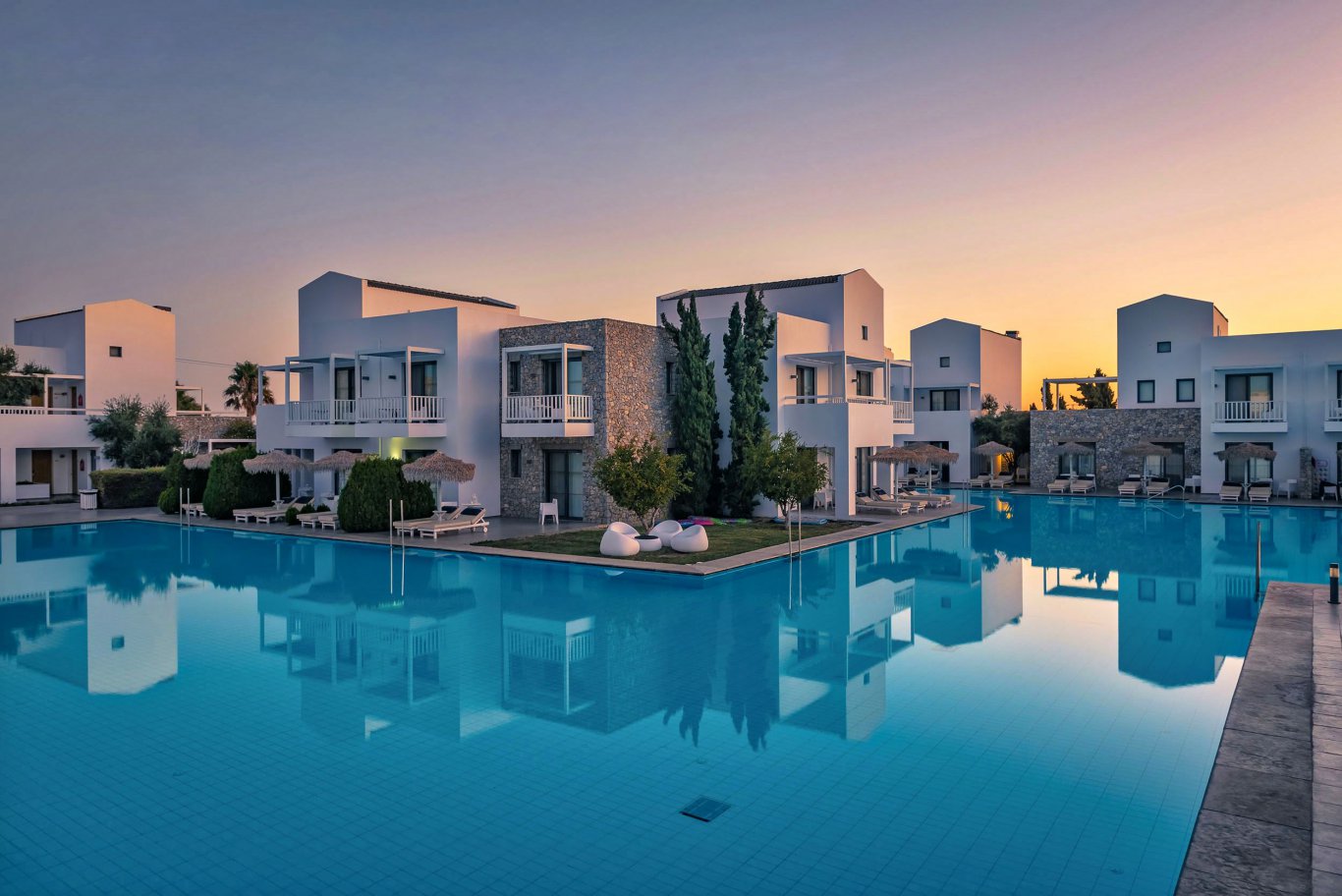 The Diamond Deluxe Hotel is a five-star, adults-only retreat located in Lambi on the island of Kos, delivering an experience defined by luxury, tranquility, and refined design. Positioned just across from a white-sand beach, the hotel offers direct access to the Aegean Sea, where guests can relax on four-poster daybeds under the sun. With its architectural elegance and impeccable interiors, the hotel is a standout choice for those seeking sophistication and serenity in a Mediterranean setting.