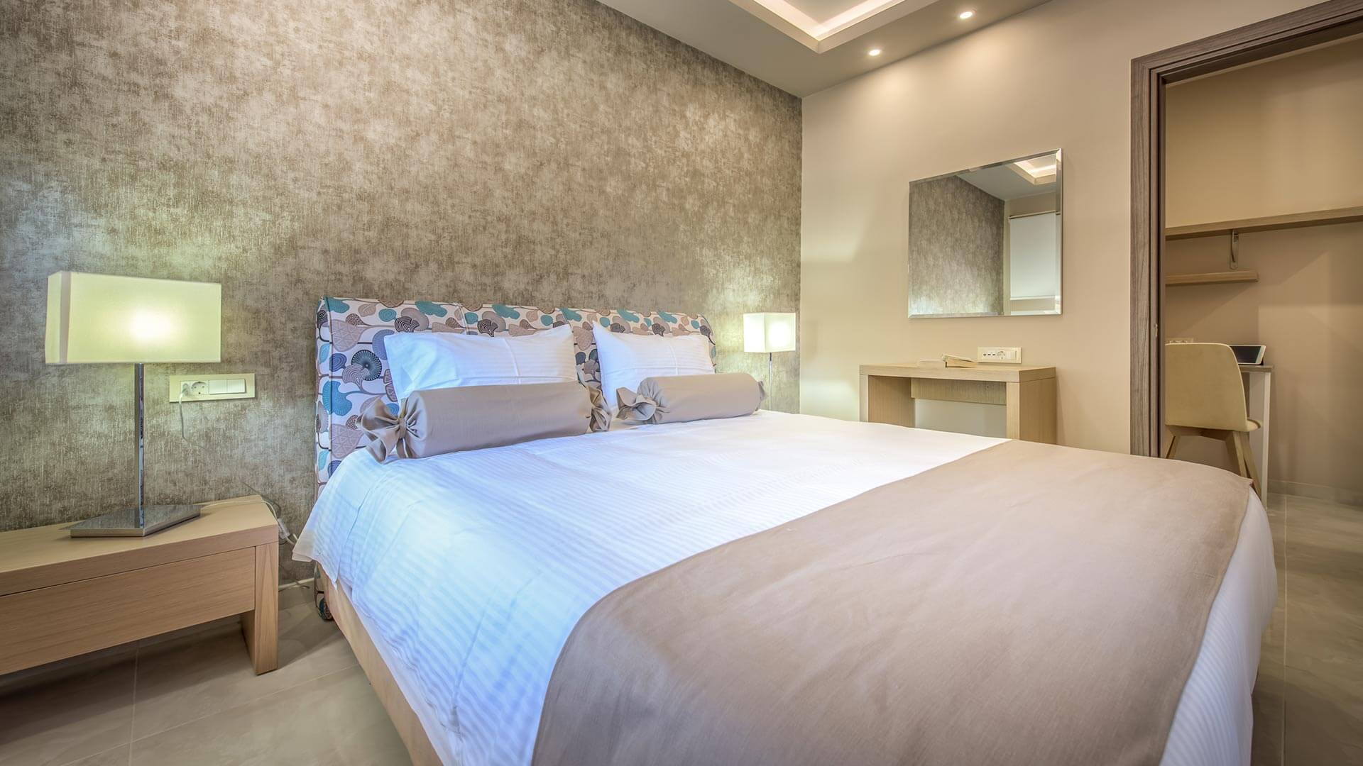 At the pinnacle of comfort and style are the Royal Suites. These spacious 51m² suites offer a separate bedroom, living and dining areas, a luxurious bathroom with massage shower, and a balcony overlooking the sea, pool, or garden. Designed for total indulgence, they accommodate up to three guests and provide an unforgettable stay in a refined atmosphere.