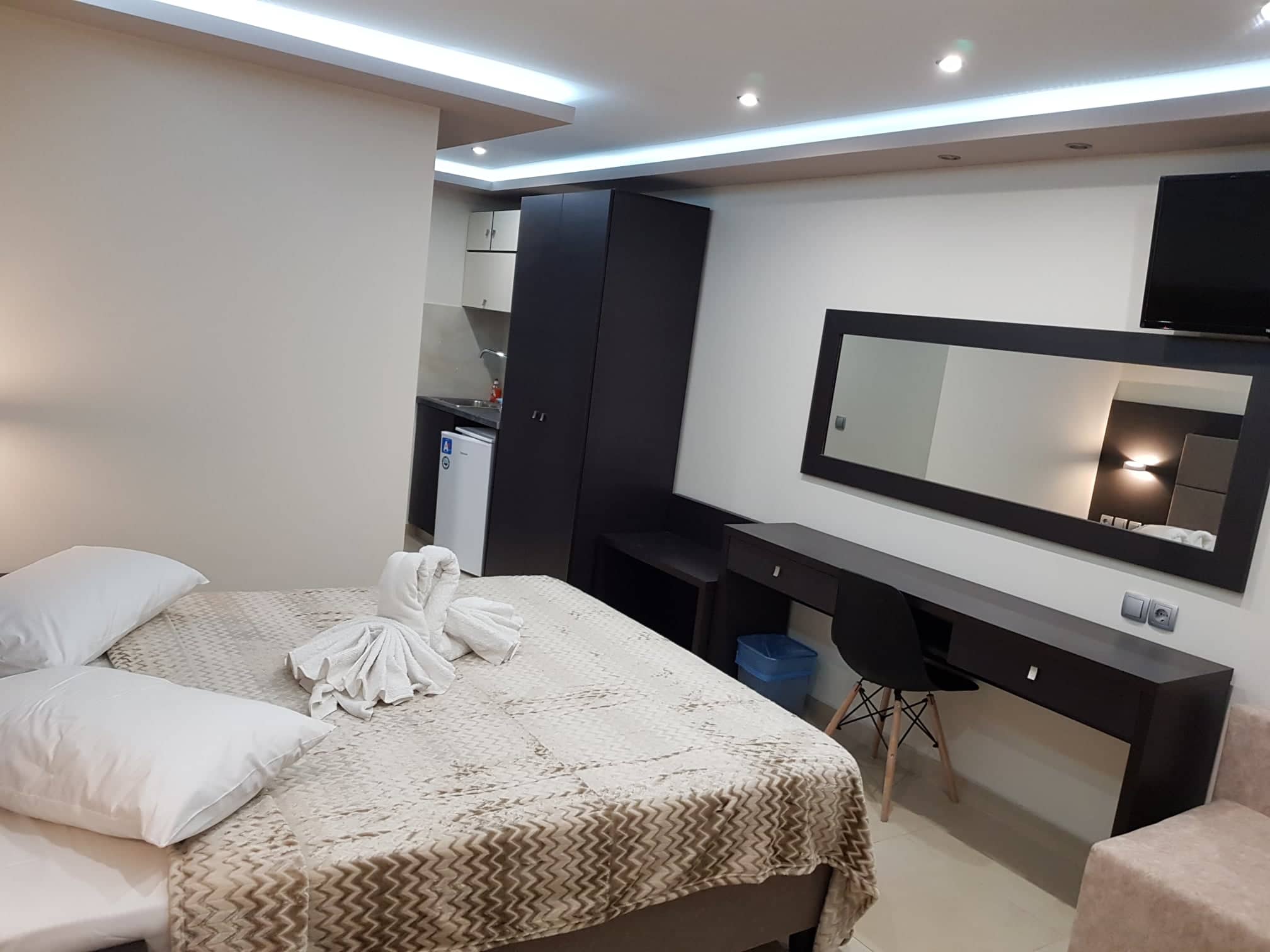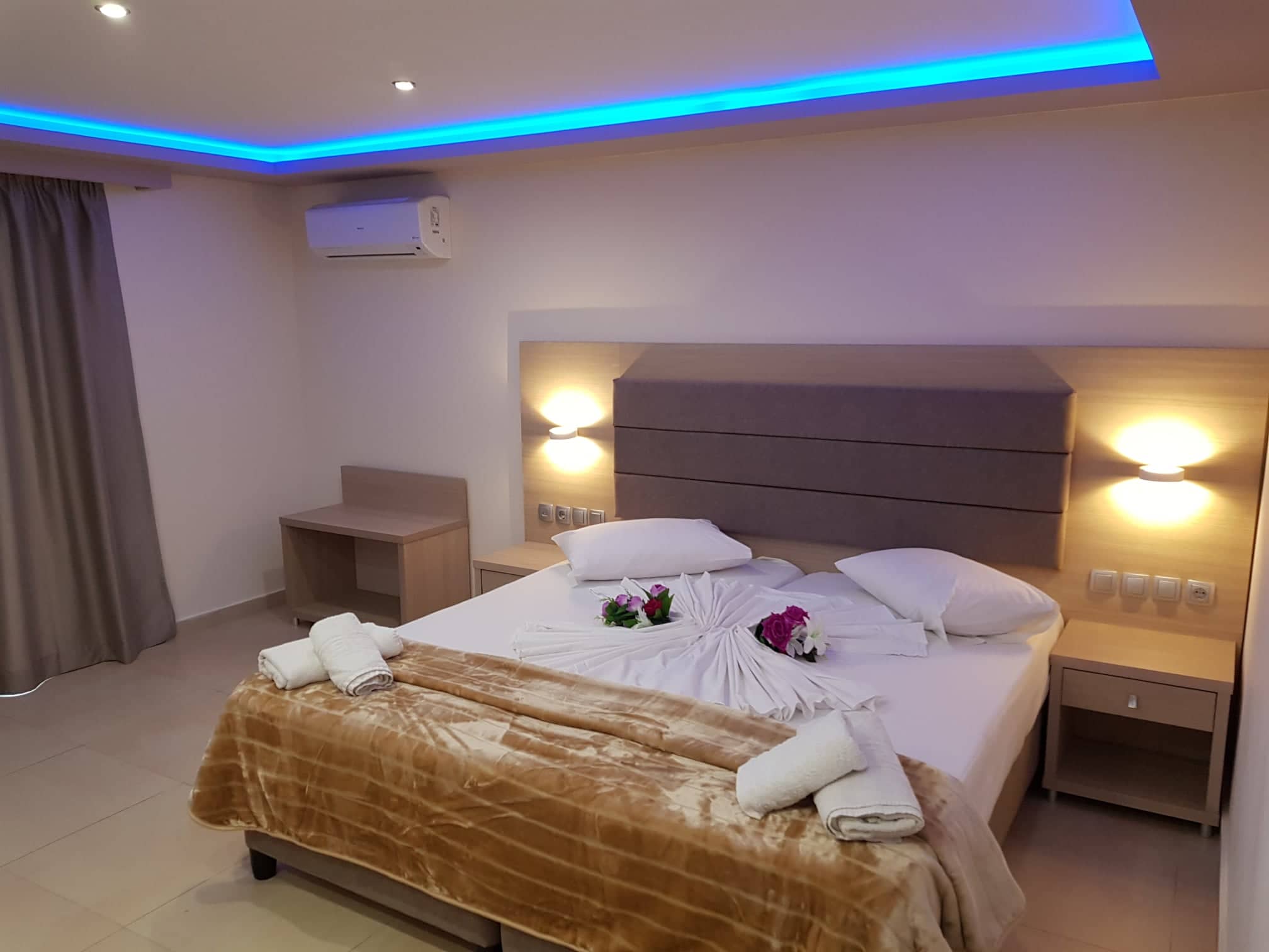The hotel’s restaurant serves a varied menu of Greek and international dishes, from light snacks and breakfasts to satisfying lunches and dinners. Meals are prepared with fresh ingredients and served in a casual, welcoming setting. Special prices and a relaxed atmosphere make the restaurant an appealing option at any time of day.