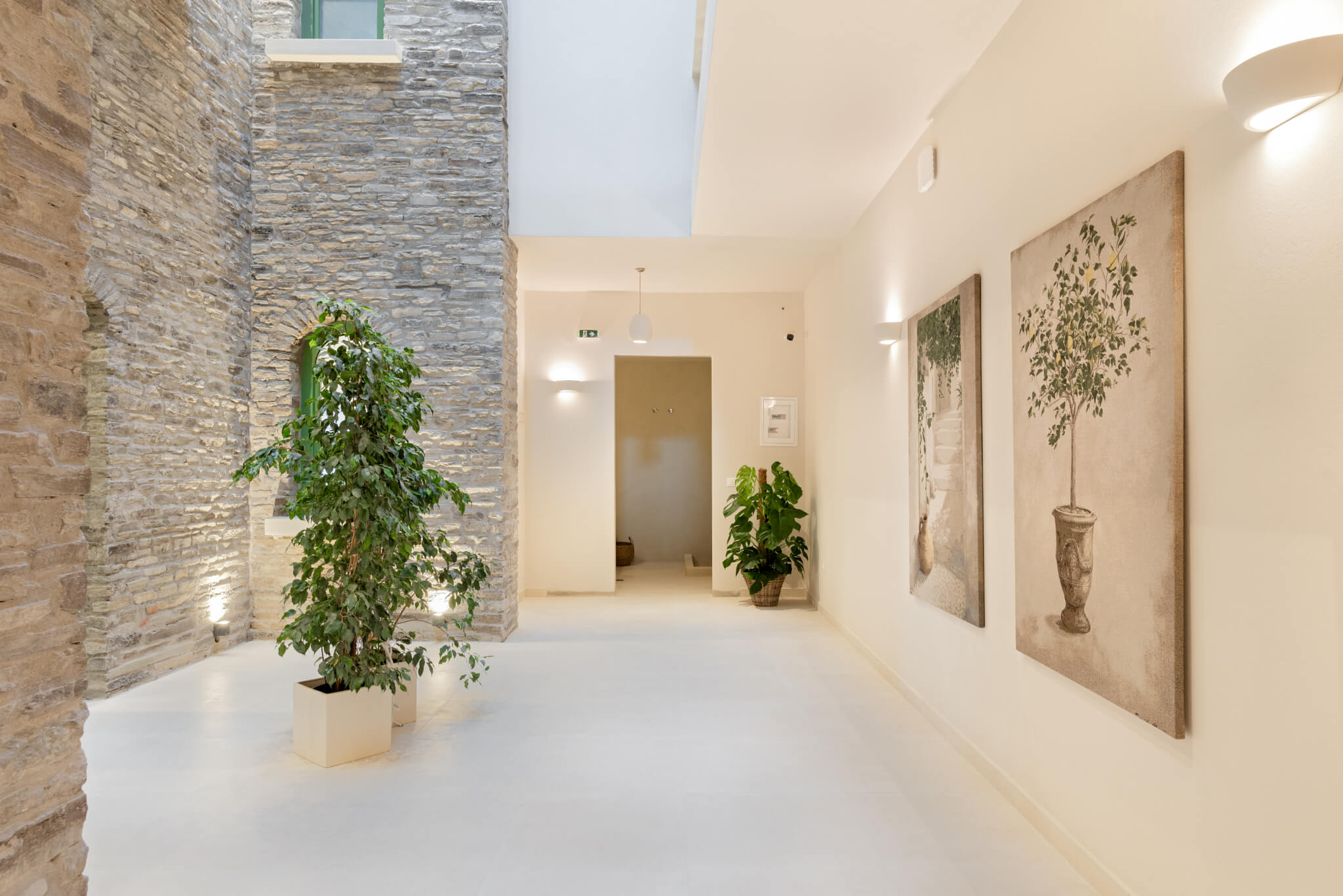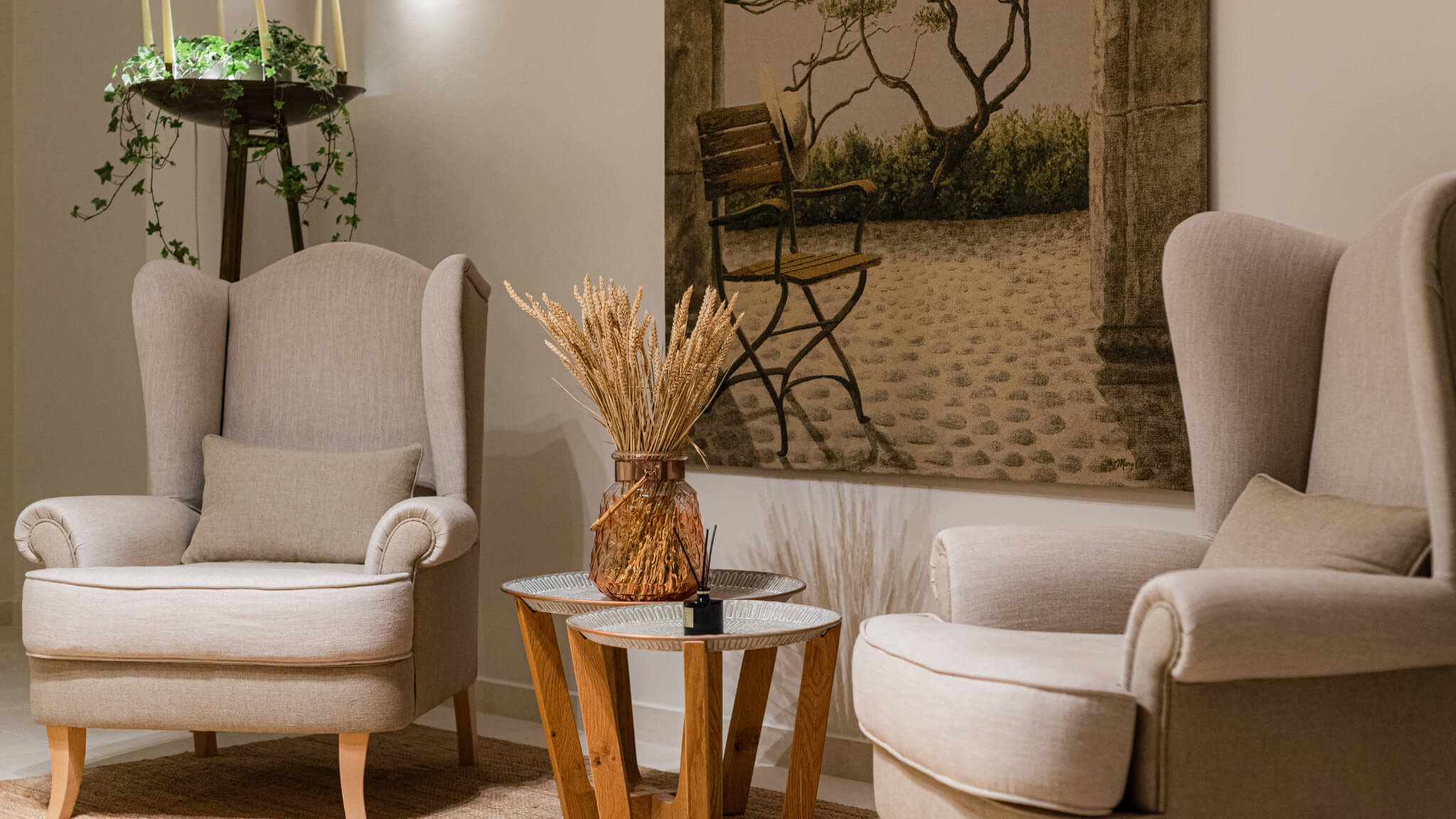 Designed to offer a calm, home-like atmosphere, the suites combine simplicity and elegance in a setting crafted for relaxation. Every space reflects thoughtful detail—from the stone-built lobby with a glass ceiling to the surrounding gardens filled with blooming flowers. The result is an environment that feels both grounded in nature and elevated in comfort.