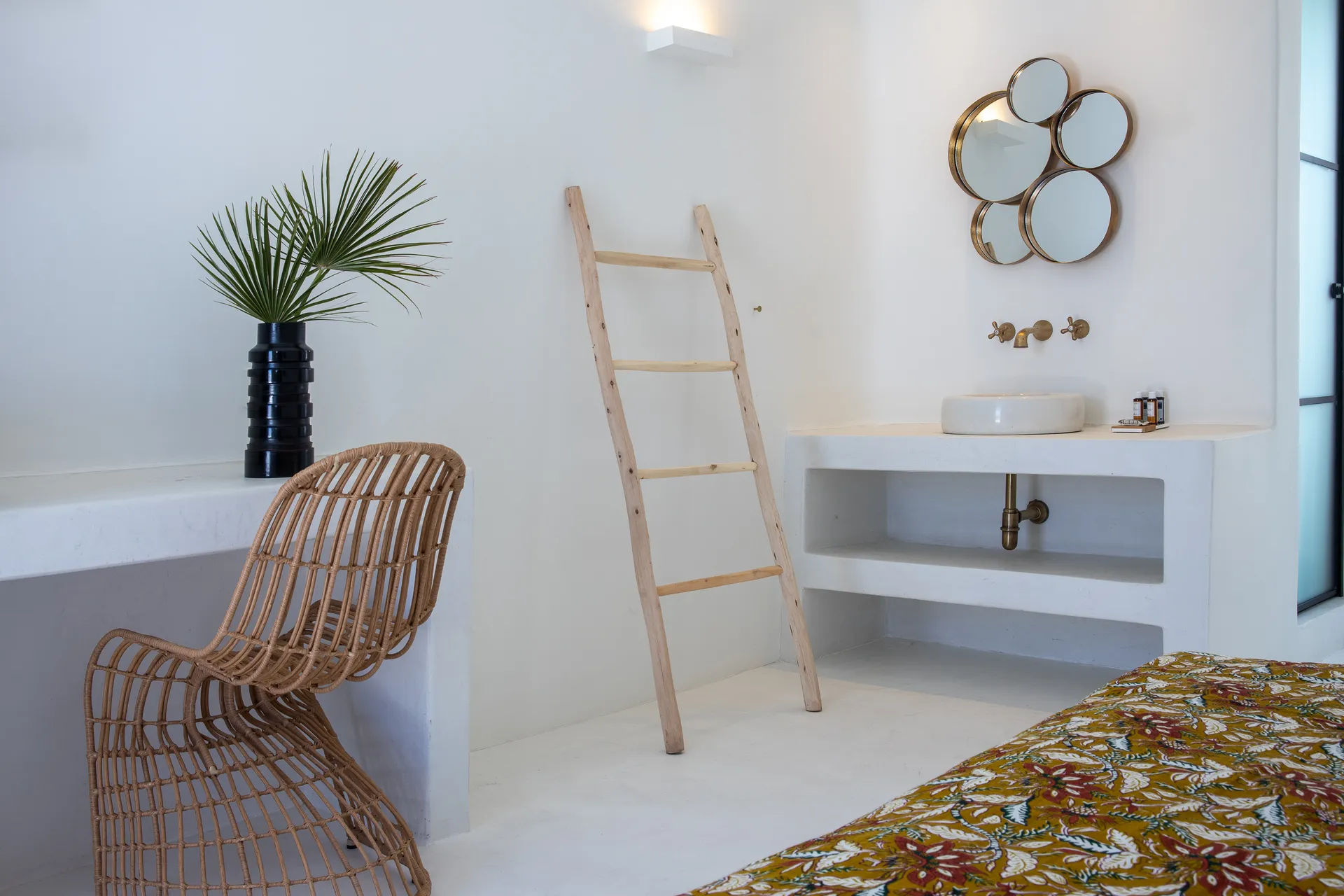 In the rural setting, the owners have attempted to bring a total breath of fresh air in hospitality, to show a more intimate side to Mykonos and to promote a new life philosophy. Guests here will experience an alternative peaceful way of being which respects the principles of simplicity, authenticity and balance. Mykonos is famous for the traditional Cycladic architecture, for the simplicity of forms and the clarity of shapes. It is here that Le Corbusier inspired by the austere beauty of the buildings and the landscape conceived the phrase “Less is More”. Mykonos is an island with turquoise sea water and golden sand beaches, where all elements are in balance: air, fire, water and earth. A place where guests can immerse themselves in healing Nature, discover the inner self and recharge their energy.