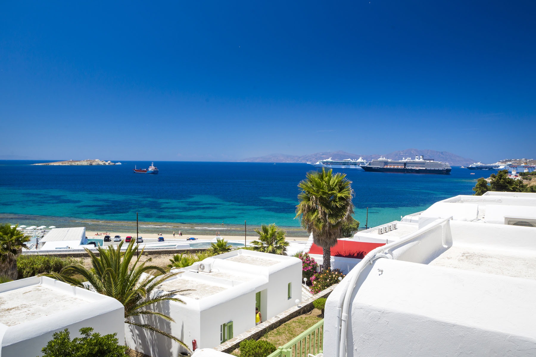 Located directly above Megali Ammos Beach and just a 10 minute stroll into Mykonos Town, the family run Mykonos Beach Hotel really does make a great choice for a holiday on Mykonos.