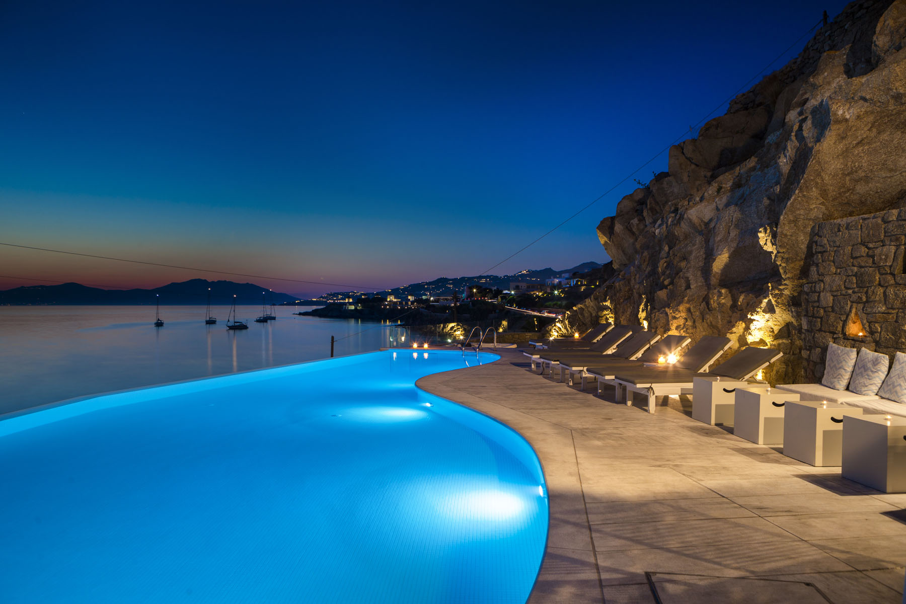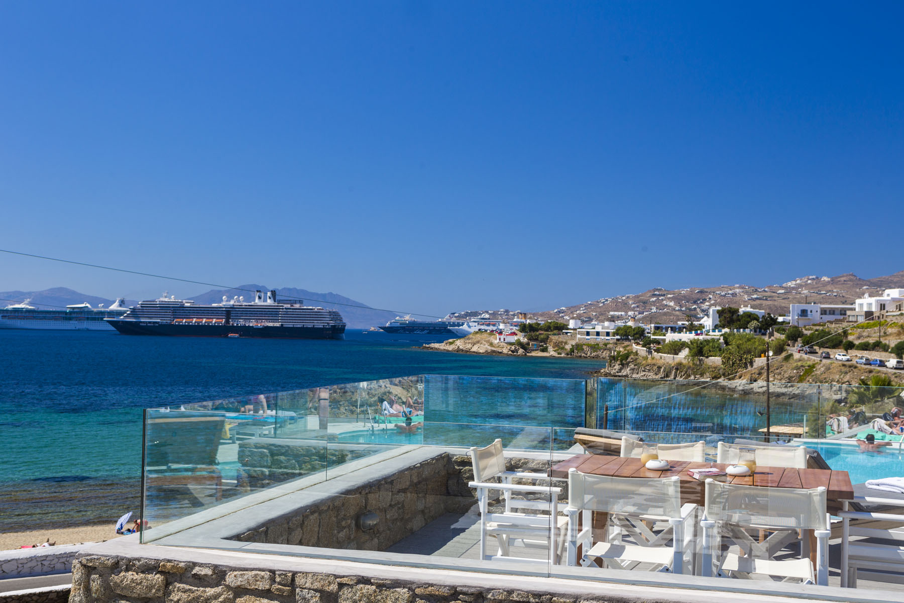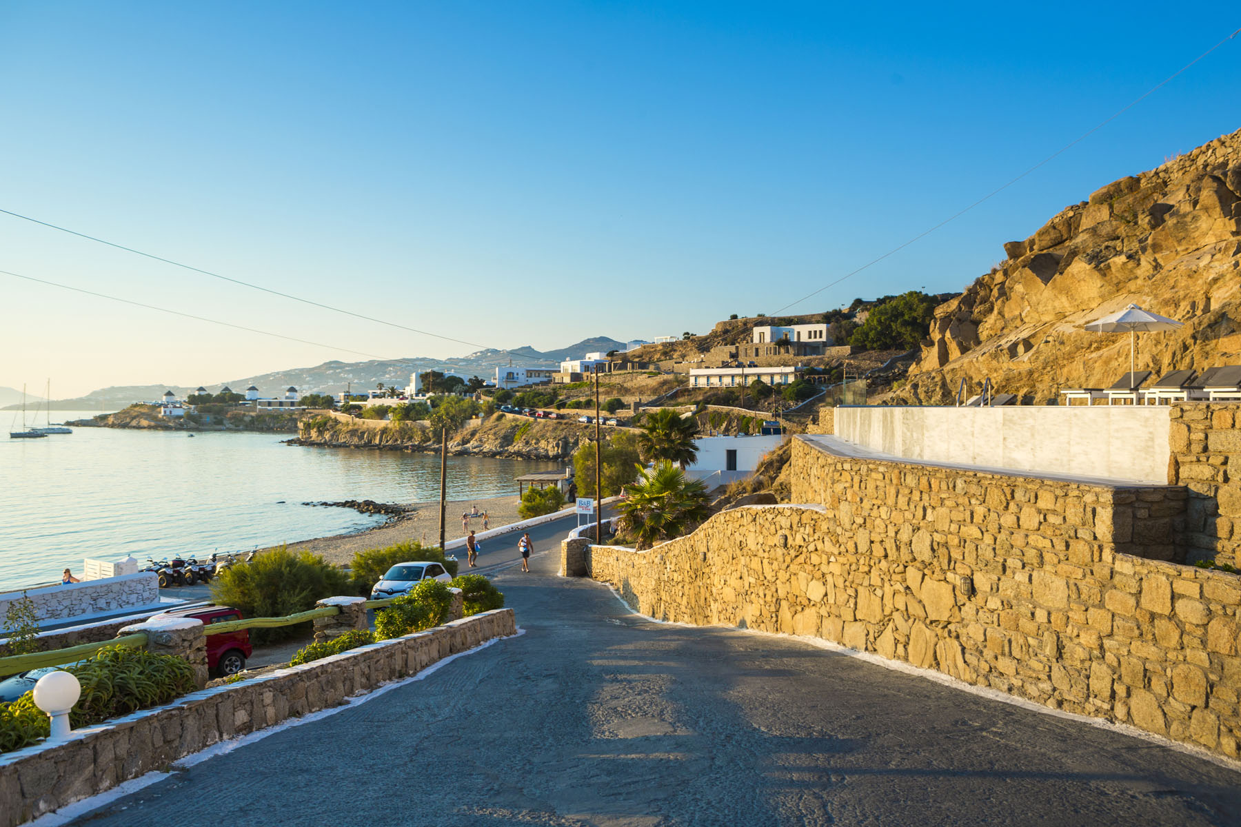 The location so close to Mykonos Town means guests here have the best of both worlds – a sandy beach right on the doorstep and the bright lights of Mykonos Town with its cobbled alleyways and a myriad of shops, bars, tavernas and restaurants within easy striking distance.