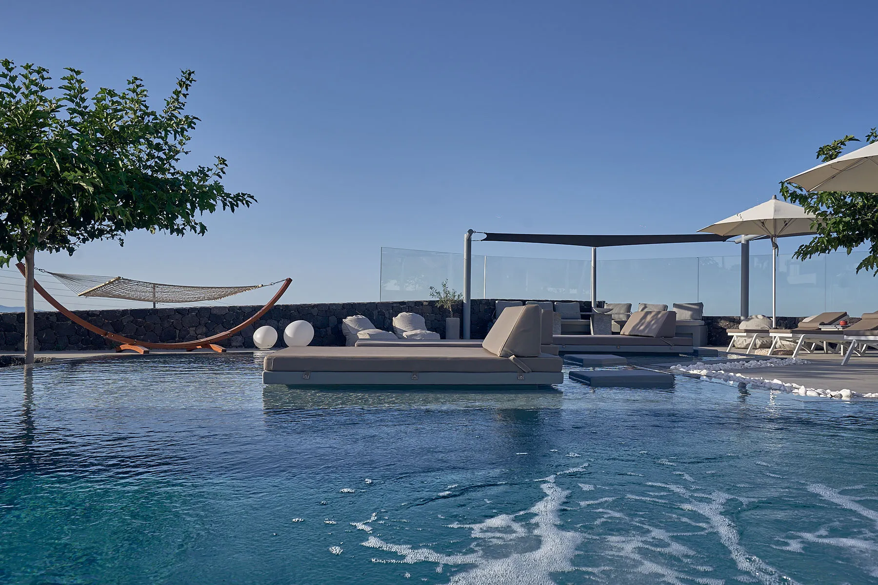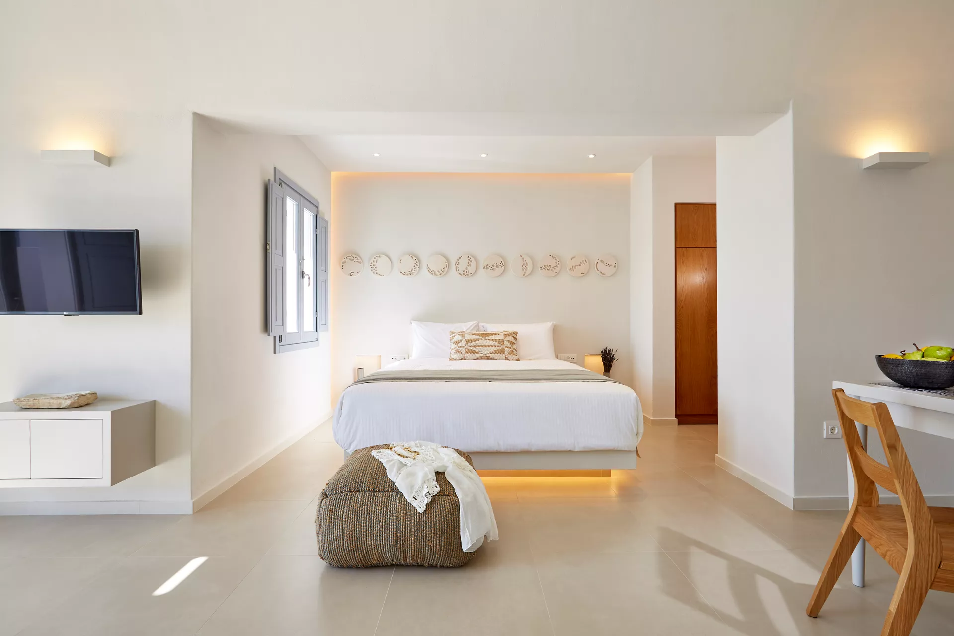 These characteristics blend with the mystifying appeal of the medieval Pyrgos and the unobstructed view to the sea for a stay full of style and charm. Here, the nostalgic elegance of this unique island combines with modern amenities and the island-chic lifestyle of the Cyclades, ready to care to every need and to upgrade any holiday into an unforgettable, romantic affair.