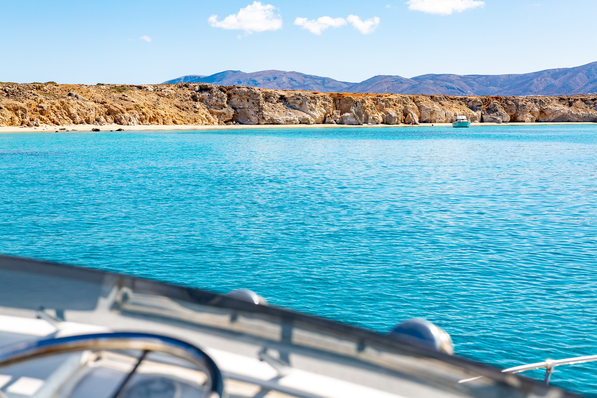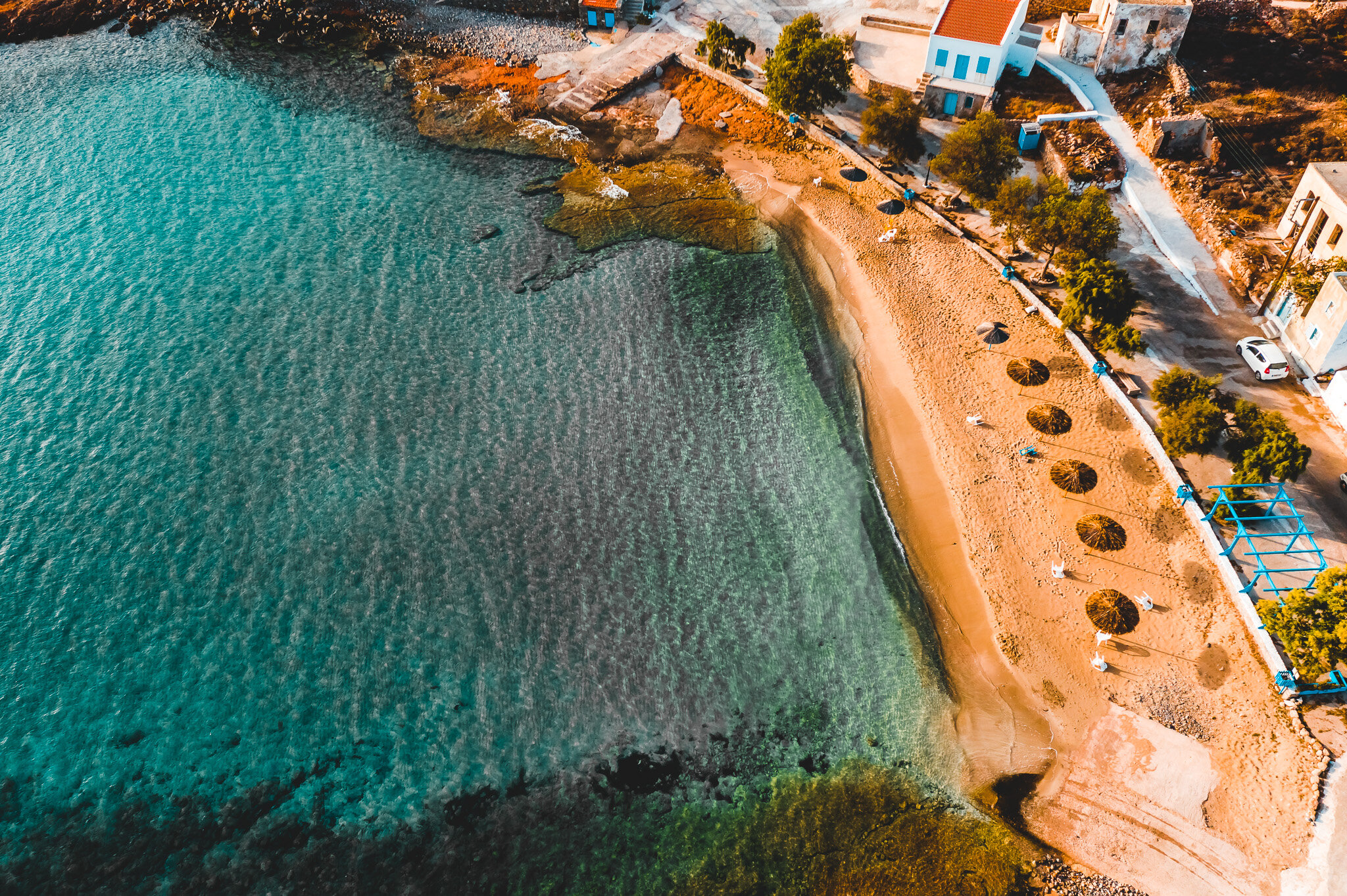 Beaches here are glorious – some have tavernas or cantinas for the essential cold drinks during the day. Others have no facilities so remember to take anything that may be required. Many are on the north coast of the island, so when the wind is blowing which is common during the summer months, there may be undercurrents or crashing waves. On the nearby islet of Armathia, the beach at Marmara is one of the best across Greece. Daily excursions operate from the port.