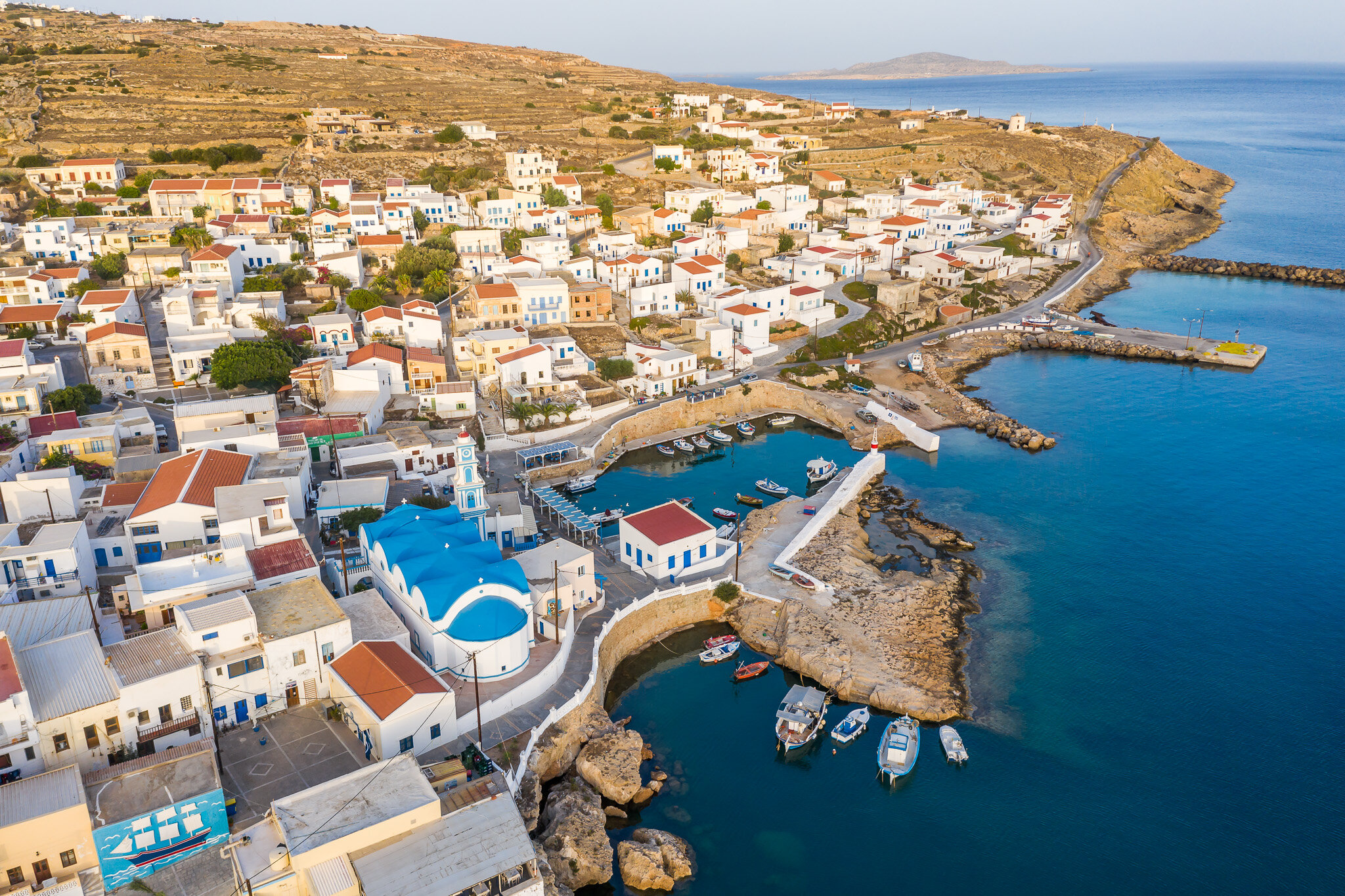 The island’s capital, pronounced Free, is officially written as Fri or Fry. Nestled on Bouka’s Bay along the north coast, Fri serves as Kasos’ main harbour and was founded in 1840 by settlers from Agia Marina. Take a leisurely stroll along Fri’s port, dotted with fishing boats, cafes, and a picturesque lighthouse. Admire the colourful houses lining the town, reflecting the island’s laid-back charm.
