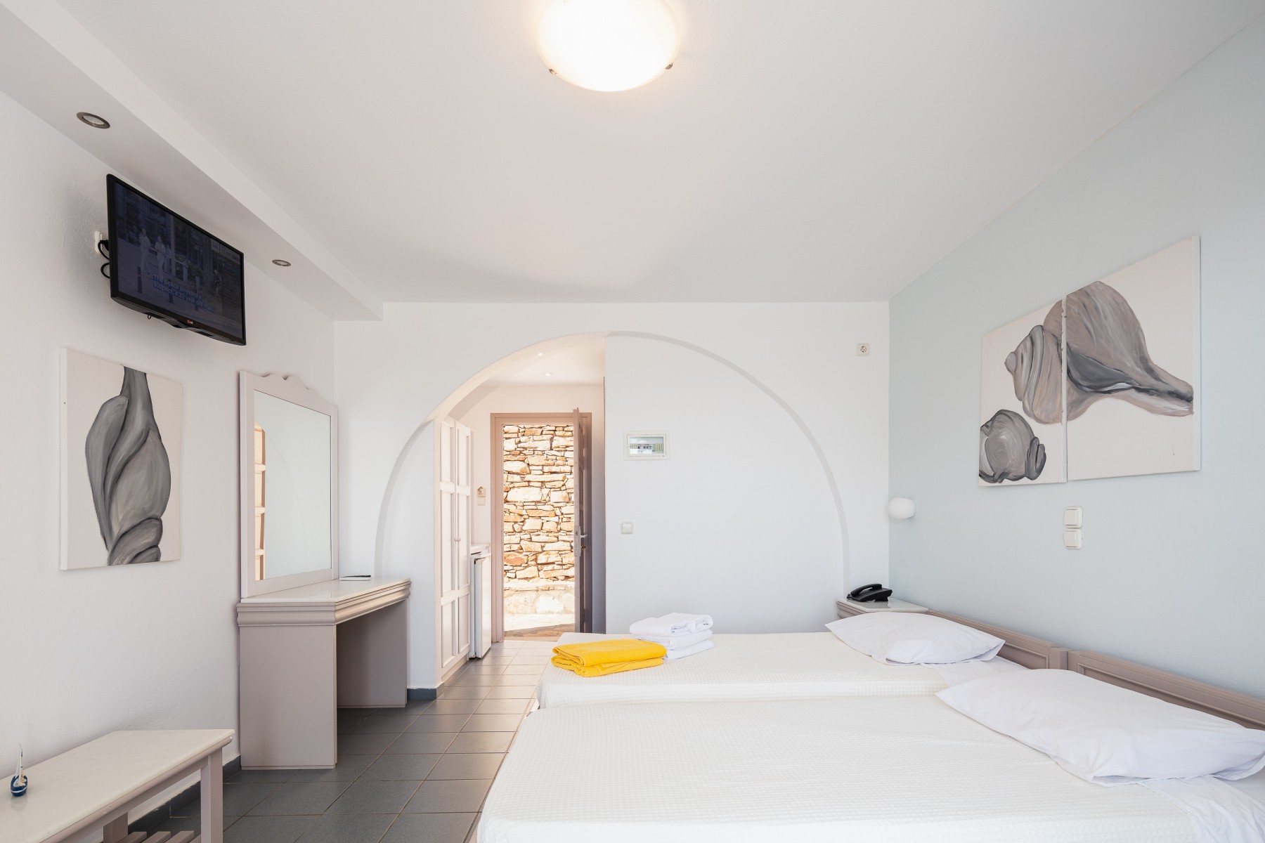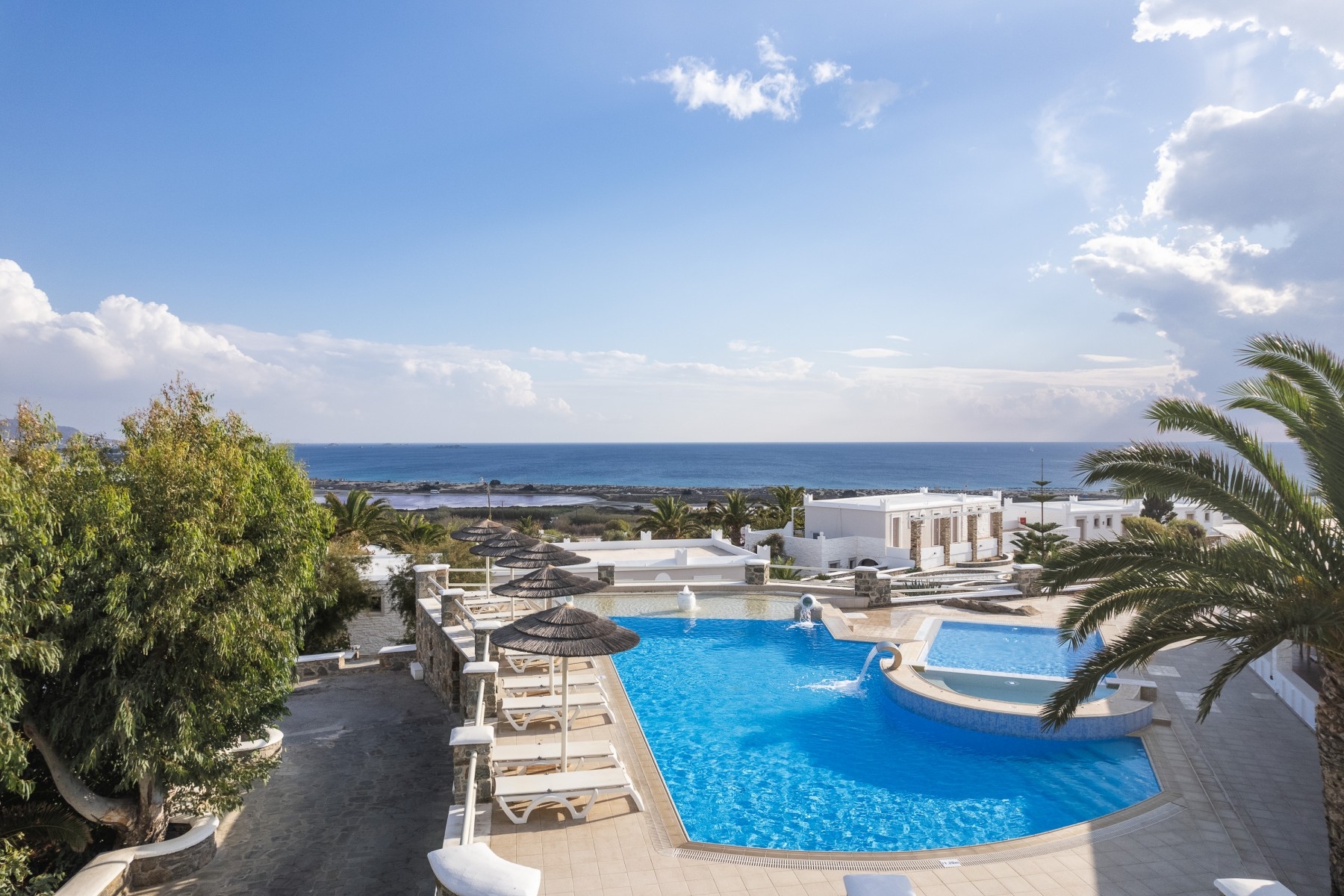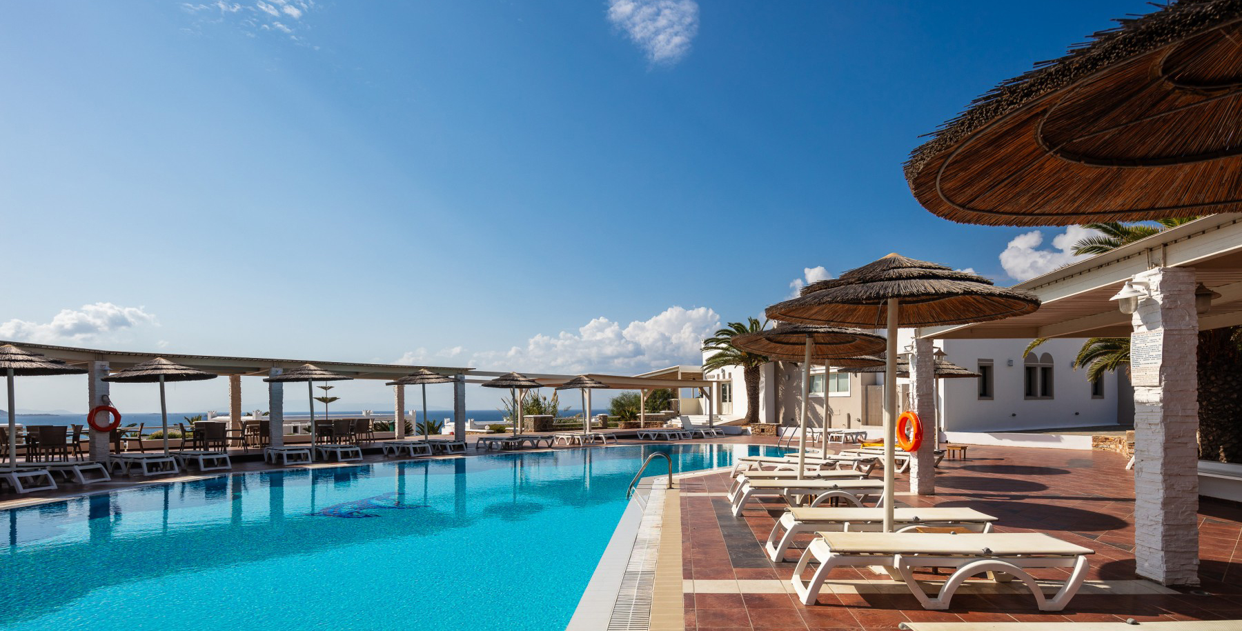 The hotel's open-sided restaurant offers spectacular views of the Aegean Sea, perfect for dining in a scenic setting. The pristine white exteriors, simple yet comfortable Greek-style rooms, and vibrant bougainvillea add to the beauty of the surroundings. With its tranquil atmosphere and exceptional sea views, Kavuras Village is an ideal destination for a relaxing Greek escape.