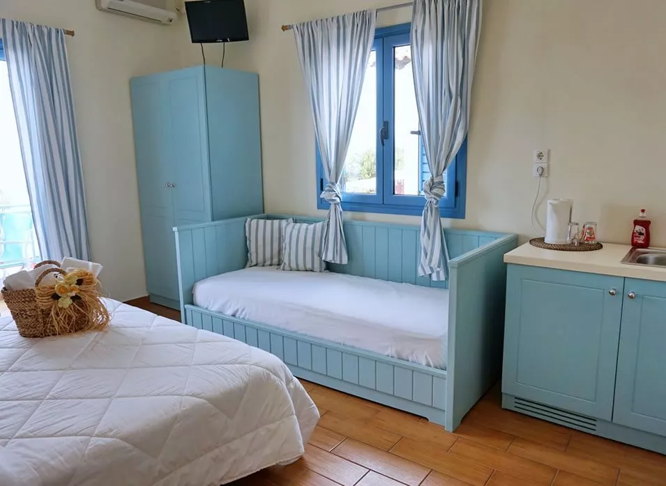 The Saronis Hotel is a family-run gem located just steps away from the main beach in the lively village of Skala on Agistri Island. Offering a comfortable and welcoming environment, this charming hotel provides stylish and modern rooms designed to meet all the needs of its guests. With free Wi-Fi available, it ensures both convenience and relaxation. The hotel offers double, twin, and triple rooms, all equipped with air conditioning, a refrigerator, coffee and tea-making facilities, and a flat-screen TV. Each room also boasts a private balcony or terrace with views of the garden, the sea, or the surrounding area.