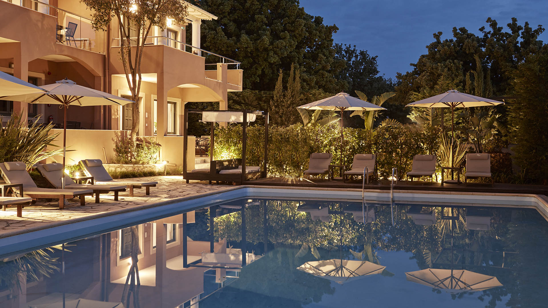 Amidst a beautiful landscaped garden that surrounds the hotel premises, the hotel pool area creates a feeling of a small paradise, whilst the less than 700 meters away, the sandy beach promises a memorable Ionian stay.
